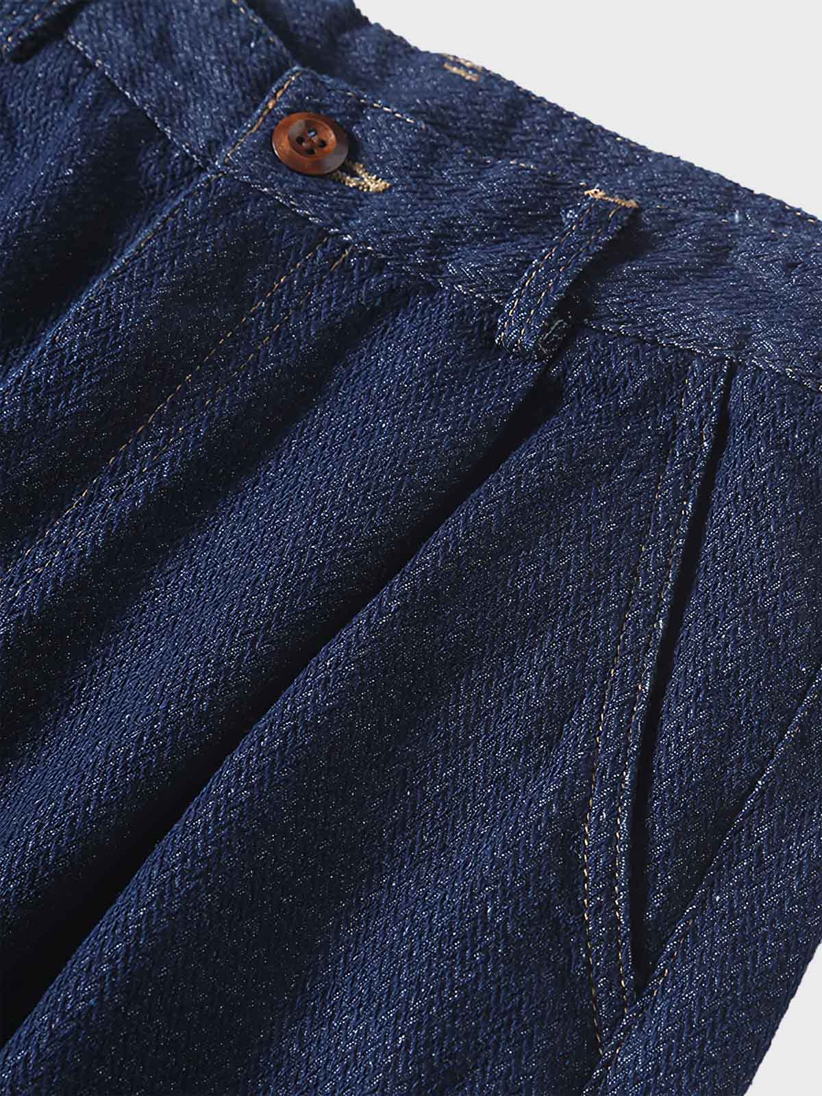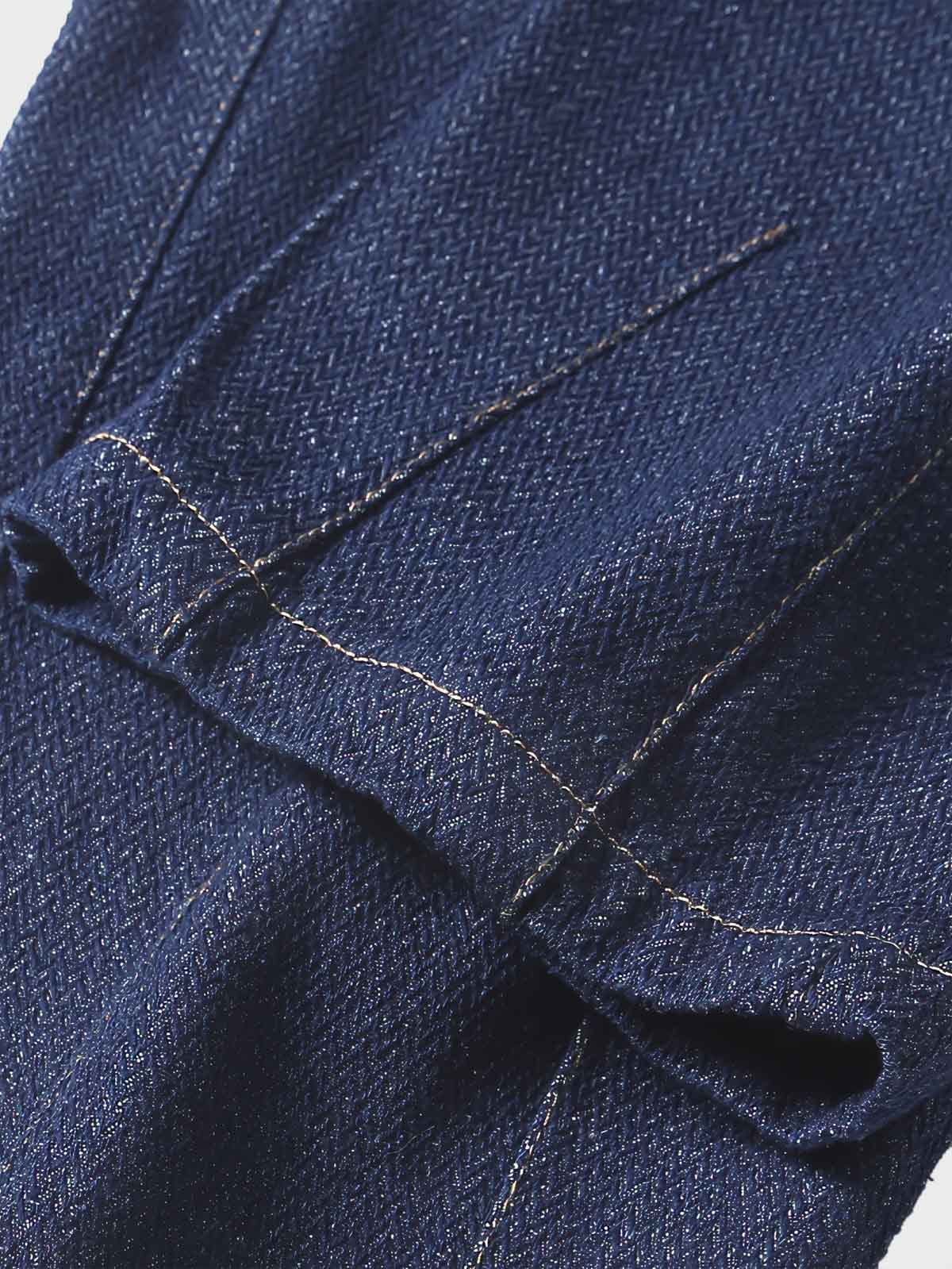 ユニークなヘリンボーン織りのデニムを使用しており、この生地は頑丈で耐久性があり、繊細なテクスチャーを持っています。自然なしわと適切なウォッシュ加工により、長時間着用してもその独特のスタイルを保ち続けます。