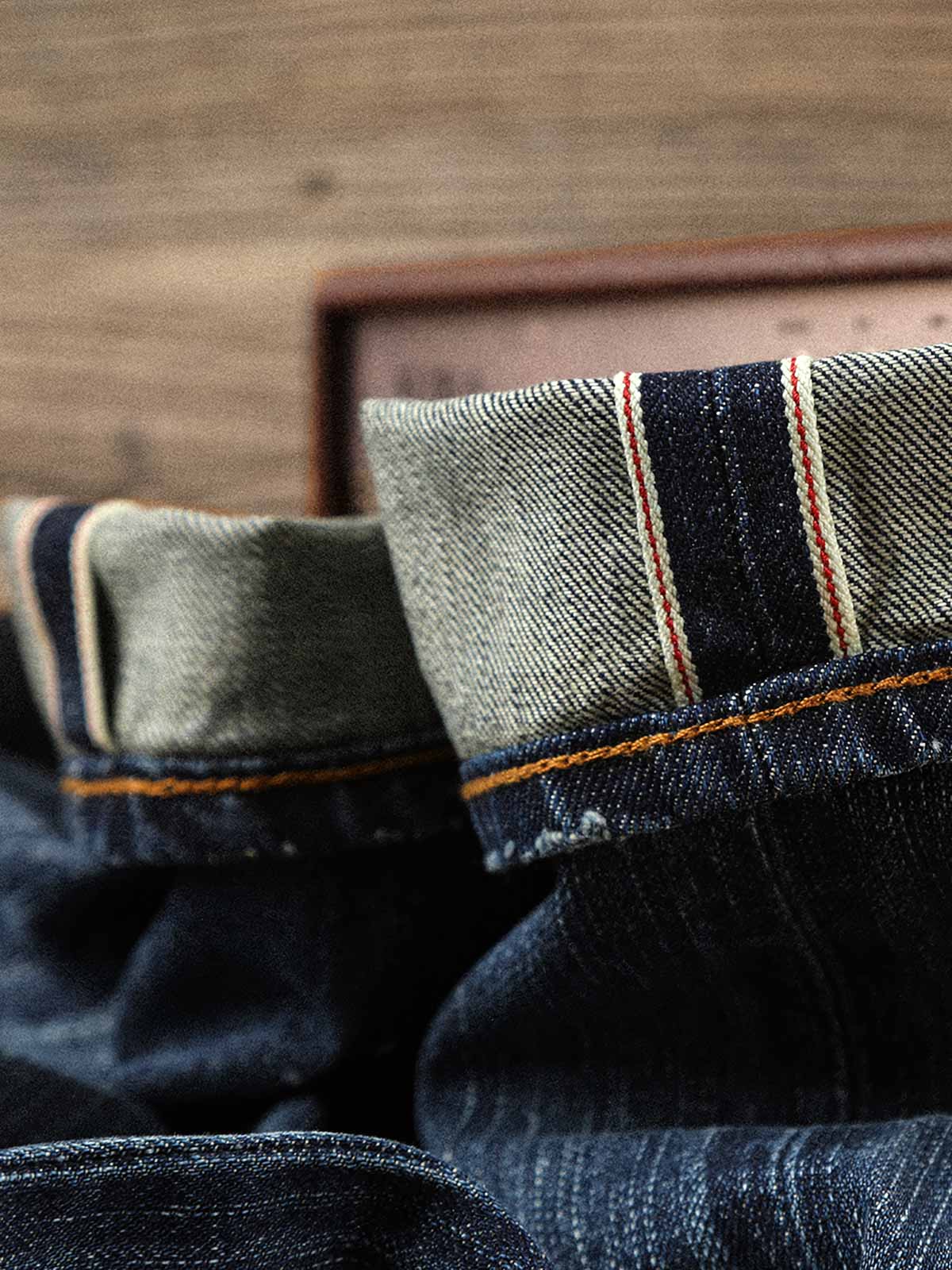 このクロップドパンツは、14OZのヘビーウェイトセルビッジデニムを使用し、スプラッシュインク技術を施すことでヴィンテージかつアーティスティックな雰囲気を表現しています。セルビッジデニムはそのセルビッジから名付けられ、高品質なデニムの象徴とされています。伝統的なリングスパン糸染め技術とイタリア製の植物タンニンレザーラベルを採用し、耐久性と快適性を向上させるとともに、高級感と持続可能性を強調しています。