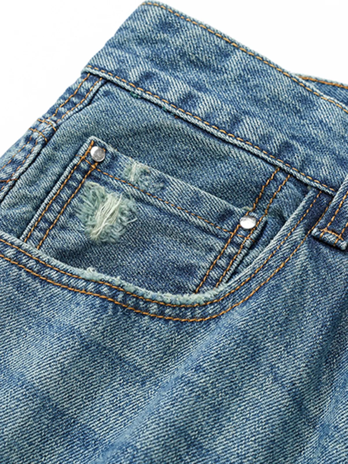 20世紀アメリカンワークウェア文化からヒントを得たデザイン。通気性と柔らかさに優れるコットン感デニム素材を採用。伝統的なデニムの堅牢性と軽快な着心地を実現。ウエストは整然としたステッチと上質な金属ボタンで仕上げ、レトロな魅力と実用性を表現。ダメージ加工がパンツ全体に若々しいアクセントを加えます。シンプルなバックポケットには赤の刺繍ロゴをあしらい、洗練されたディテールを実現。通勤からカジュアルなお出かけまで、幅広いシーンで活躍します。