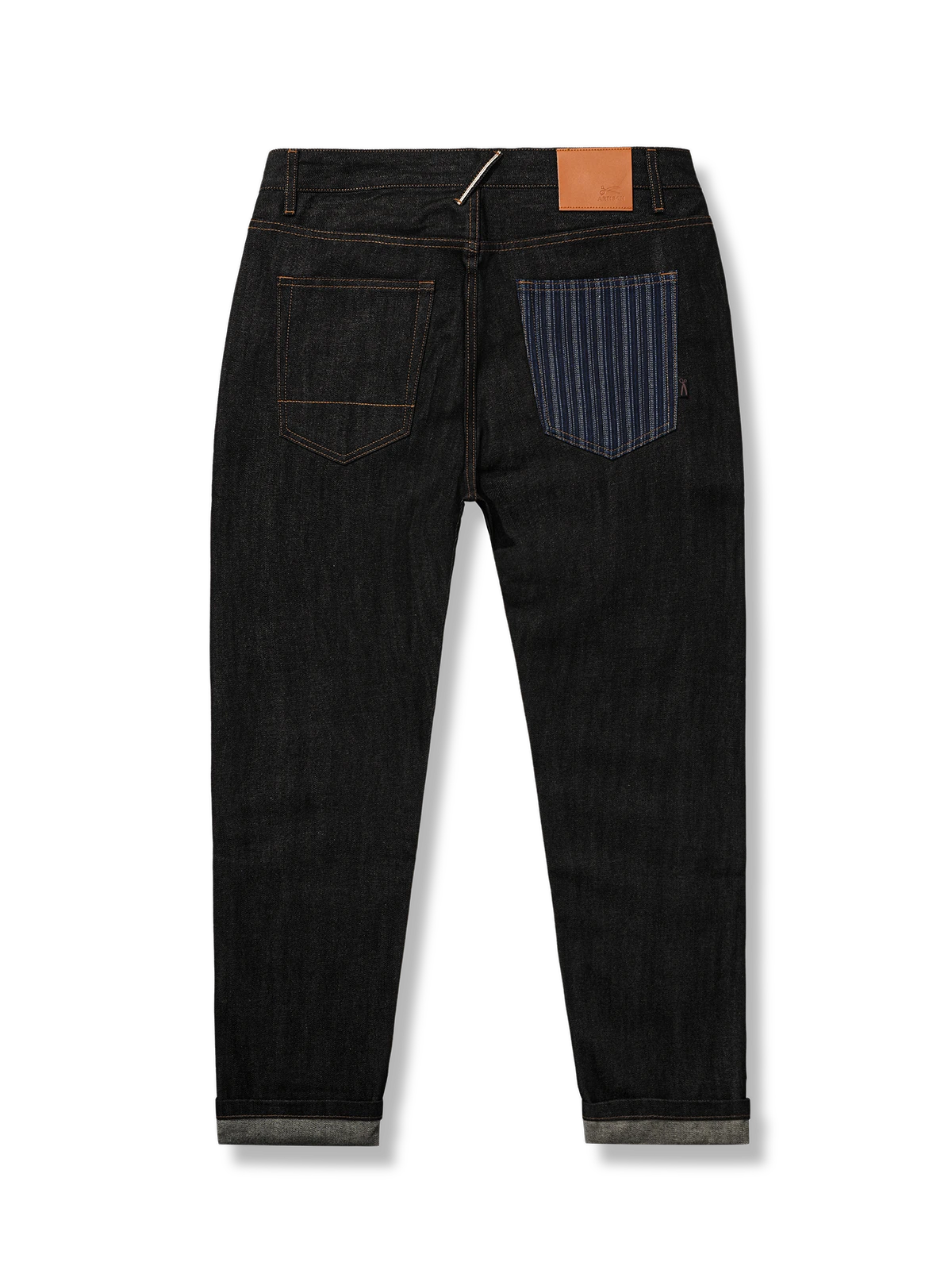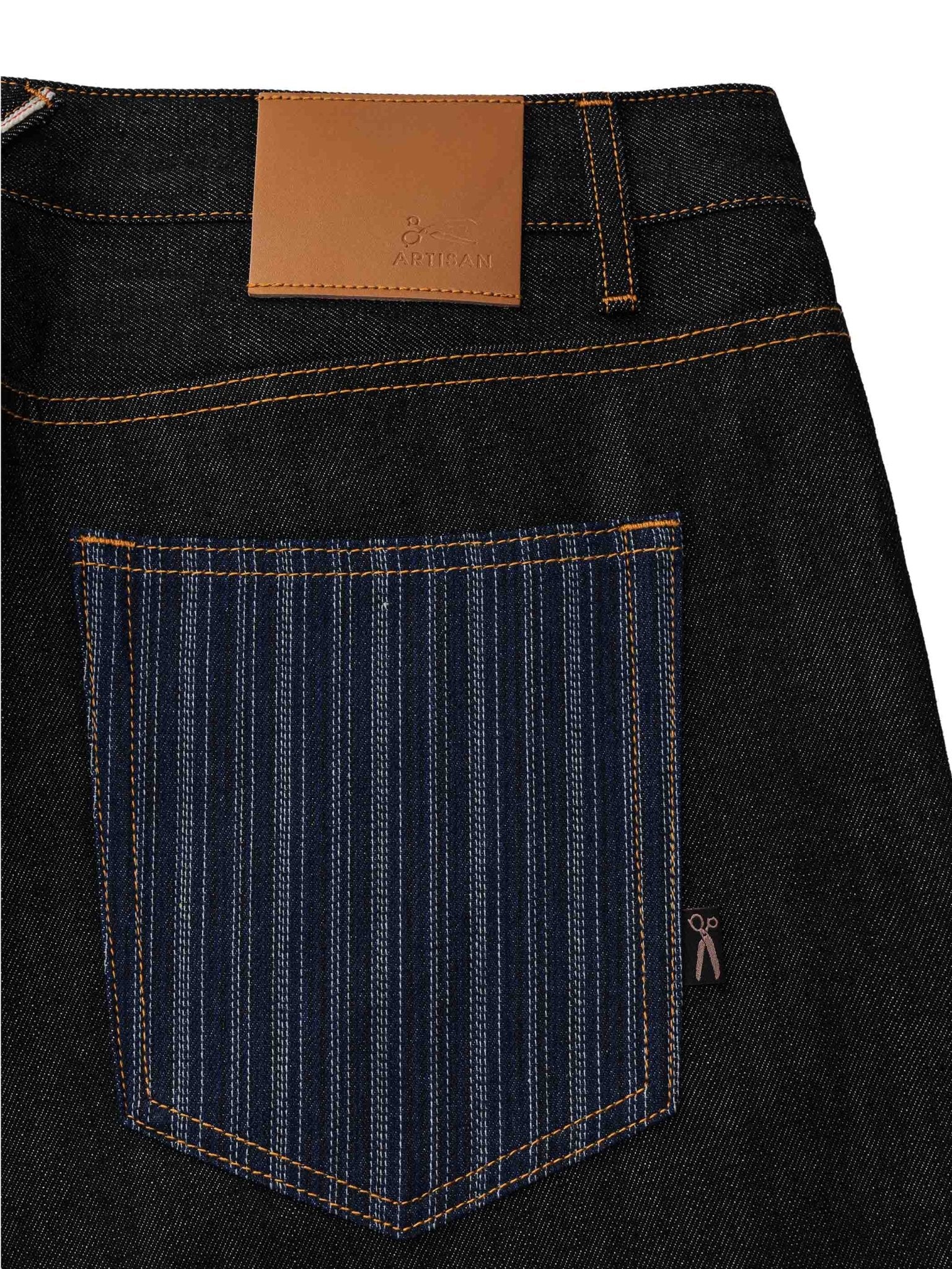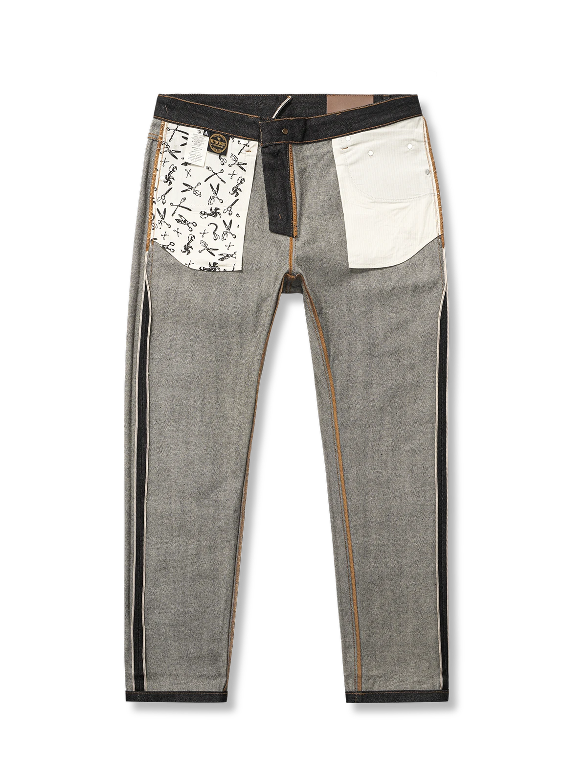 13.3ozのデニムにウォッシュを施した馴染みやすい仕上がり、ネップ感のある生地は穿き込むほどに変化が楽しめ。ダブル赤耳を付けることによりねじれにくくなり、縫い目の強度が増します。裾はロールアップ時にもしっかりと存在感を出してくれます。