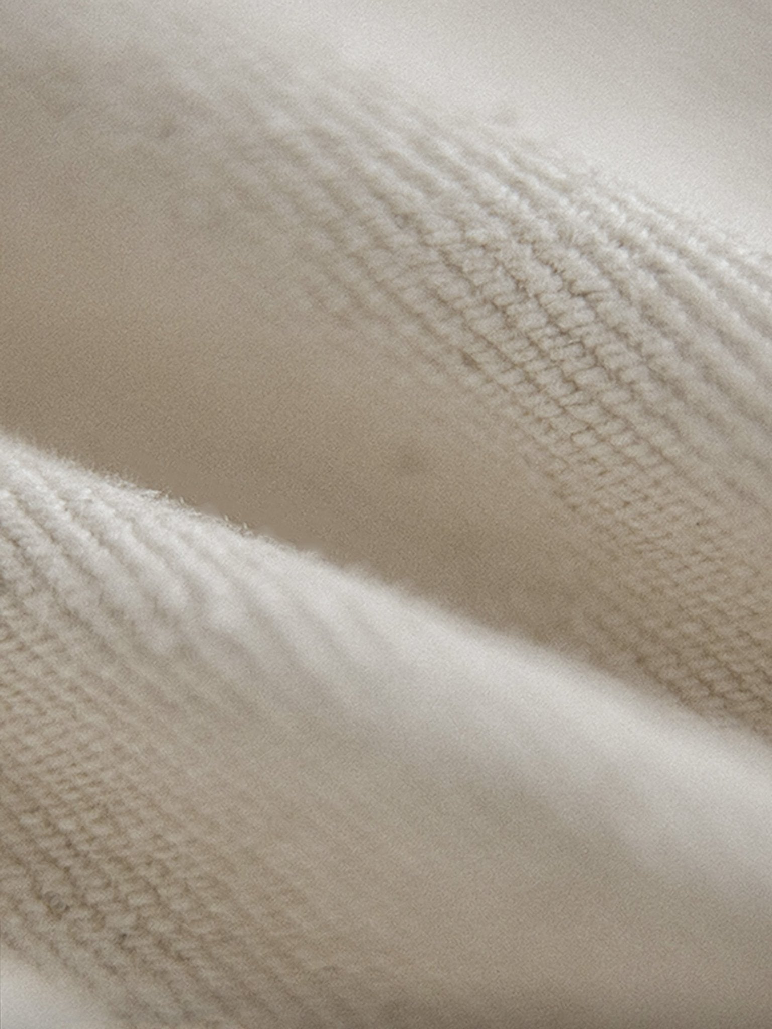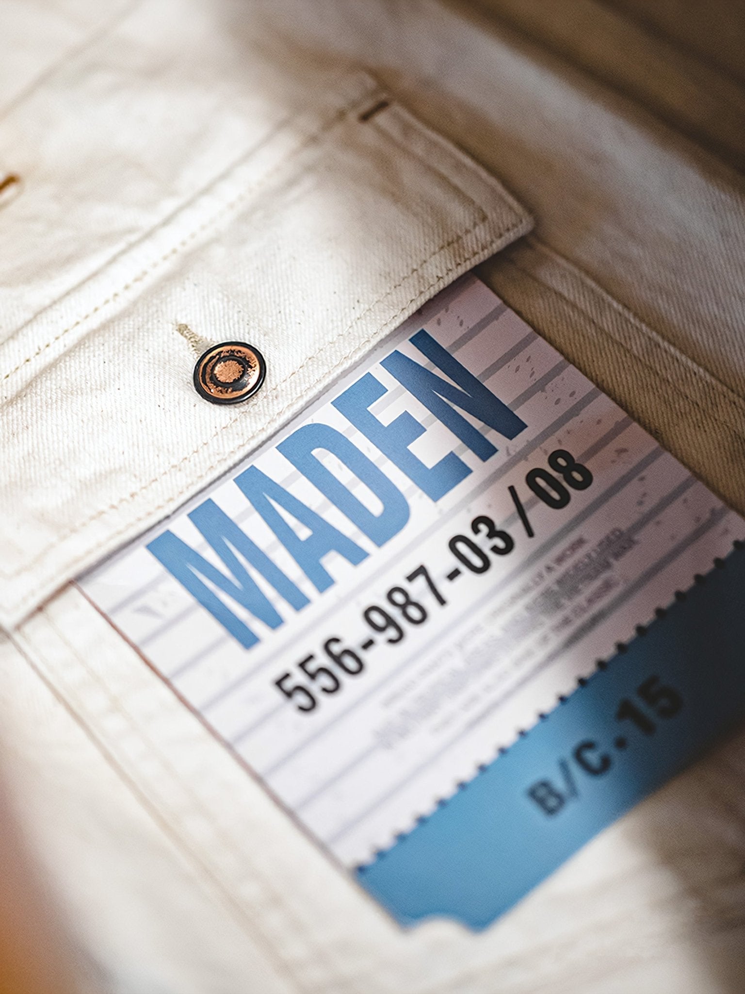 このアイテムは、縦糸と横糸に通常より太いムラのある糸を使用し、古い型の力織機やシャトル織機で織り上げたセルビッチデニムを特徴としています。厚みのある11.2ozのナチュラル綿帆デニムは、独特の凹凸感を持っています。