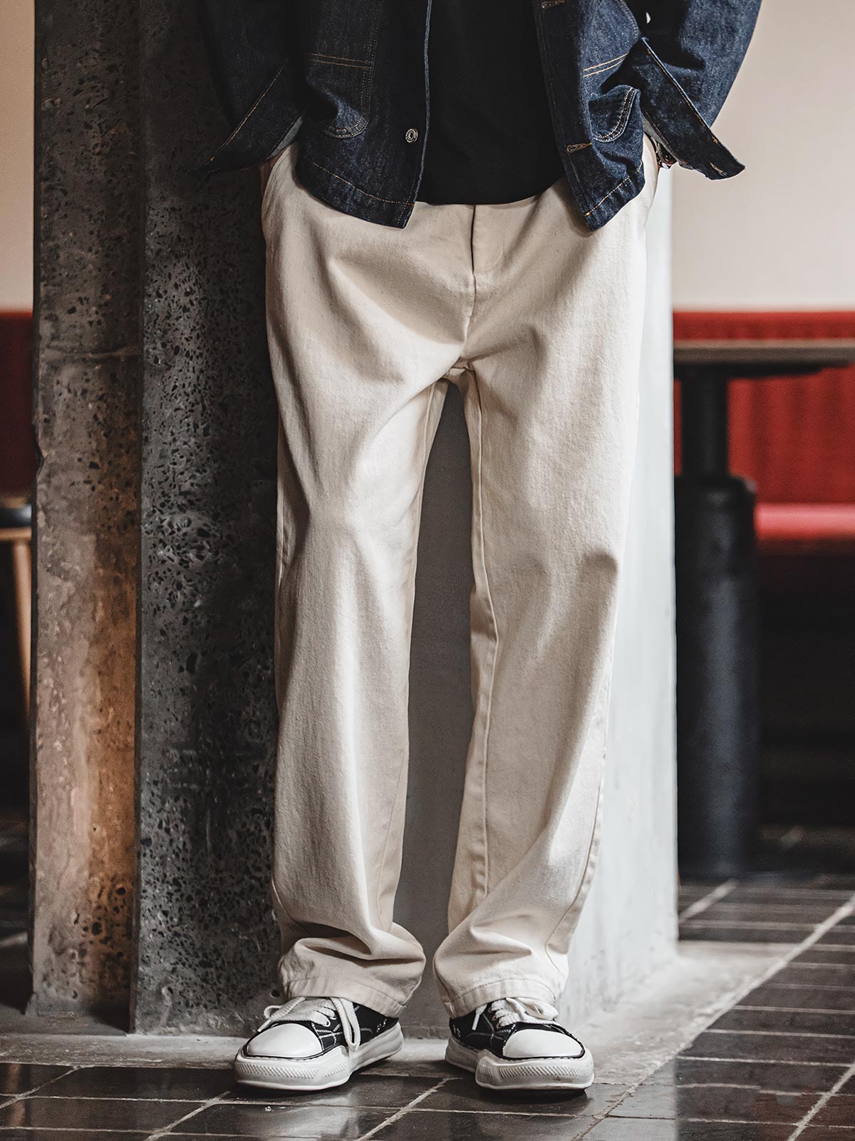 このデニムパンツは、シンプルなコットンTシャツやゆったりしたシャツとの組み合わせをお勧めします。靴には、キャンバスシューズやレトロなレザーブーツを選ぶと、レトロでリラックスした生活態度がさらに強調されます。