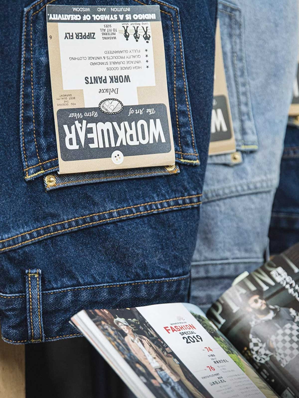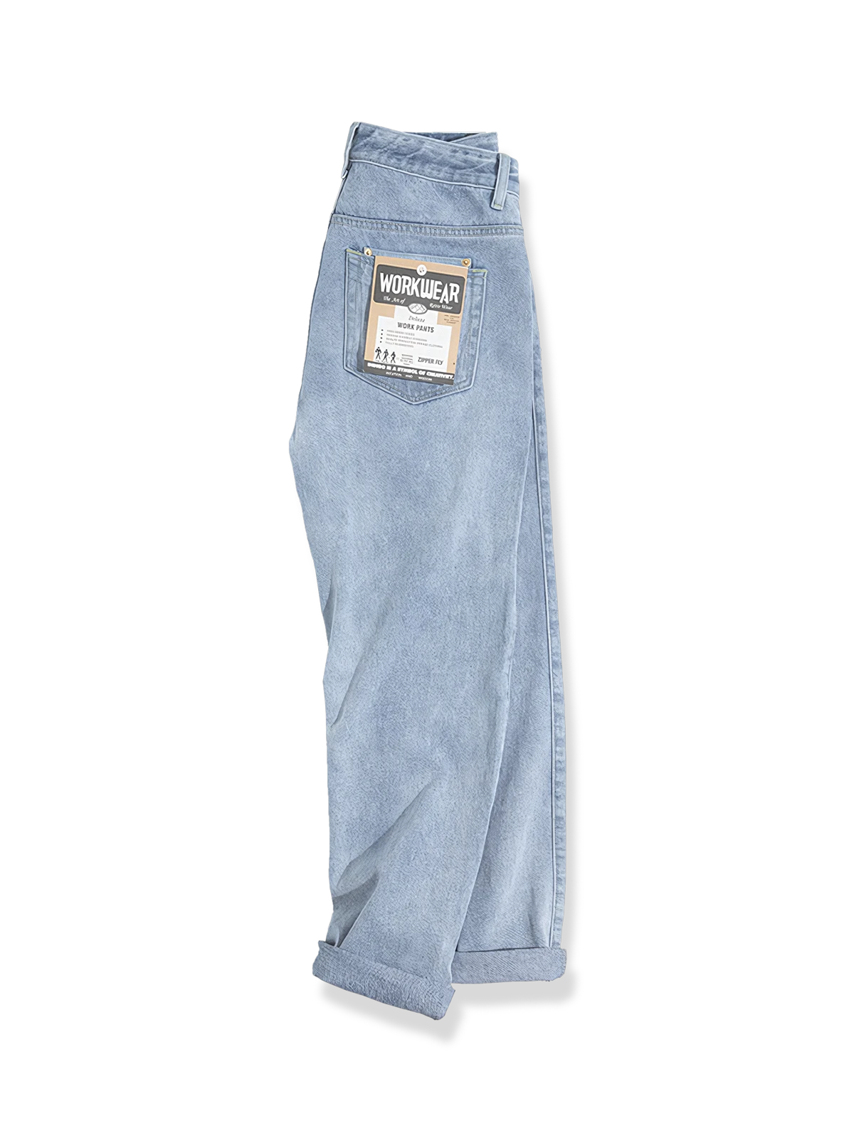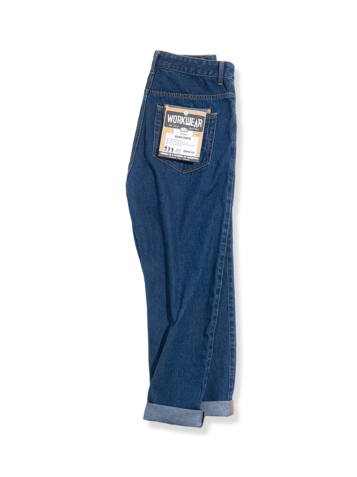 このデニムパンツは、アメリカの労働者文化からインスピレーションを受けたクラシックなワークウェアスタイルを体現しています。頑丈な生地と実用的なデザインは、1950年代のアメリカを象徴するもので、その当時の労働者たちが着用していた耐久性に優れたワークパンツに敬意を表しています。