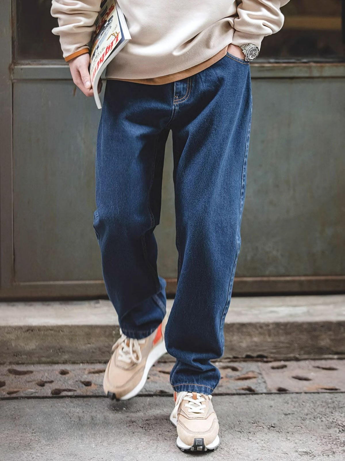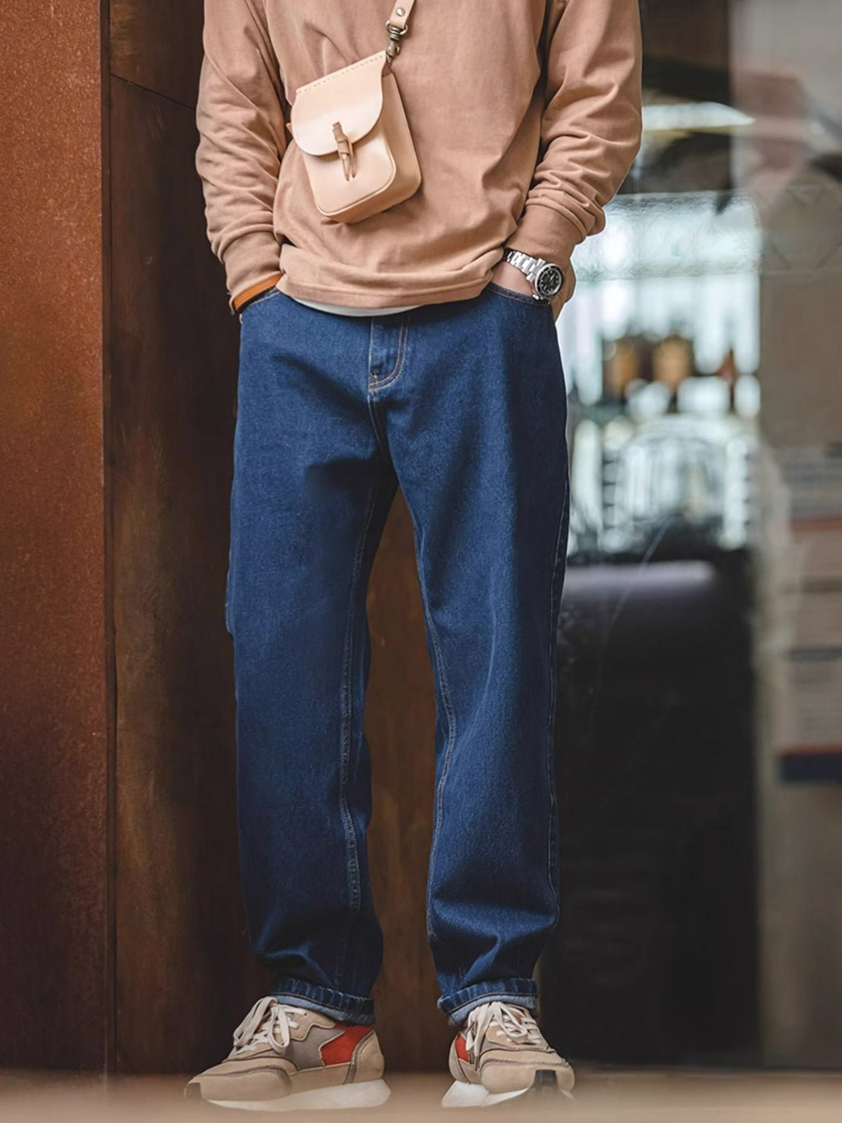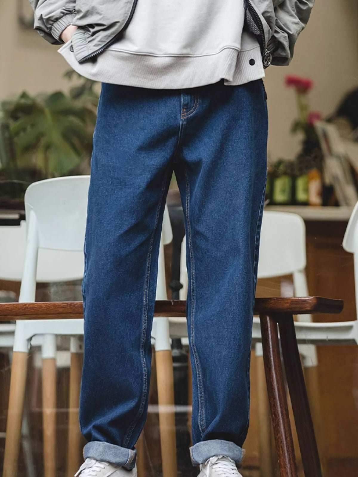 このデニムパンツは、アメリカの労働者文化からインスピレーションを受けたクラシックなワークウェアスタイルを体現しています。頑丈な生地と実用的なデザインは、1950年代のアメリカを象徴するもので、その当時の労働者たちが着用していた耐久性に優れたワークパンツに敬意を表しています。
