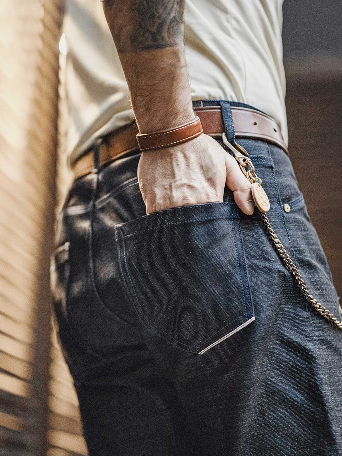 このデニムは、13オンスのリジッドデニム素材を使用しており、最初はやや硬めですが、履き込むことで徐々に柔らかくなり、色落ちも魅力的になります。湖塩ブルーを基調としたペッパーソルトデザインは、交織のスラブ糸による立体感が特徴で、ヴィンテージ感を一層引き立てます。五金パーツにはレトロなデザインを採用し、レザーパッチにはエイジングを楽しめる植物タンニンなめしレザーを使用しています。実用性とコレクション性を兼ね備えたこのデニムは、ミリタリー風やヴィンテージスタイルのコーディネートに最適です。