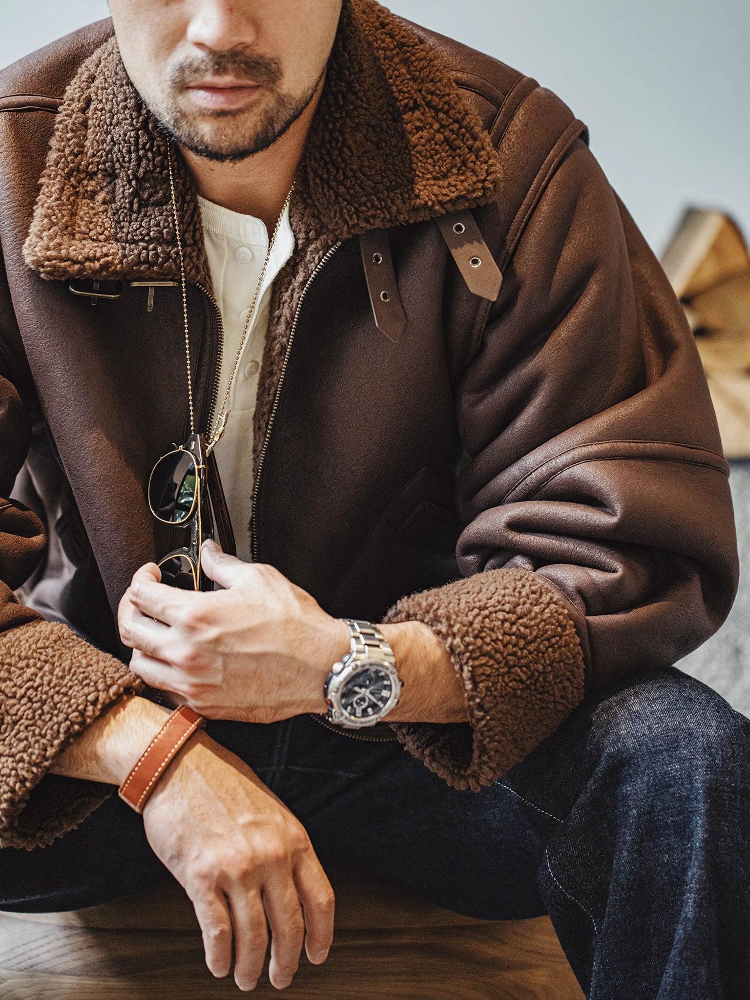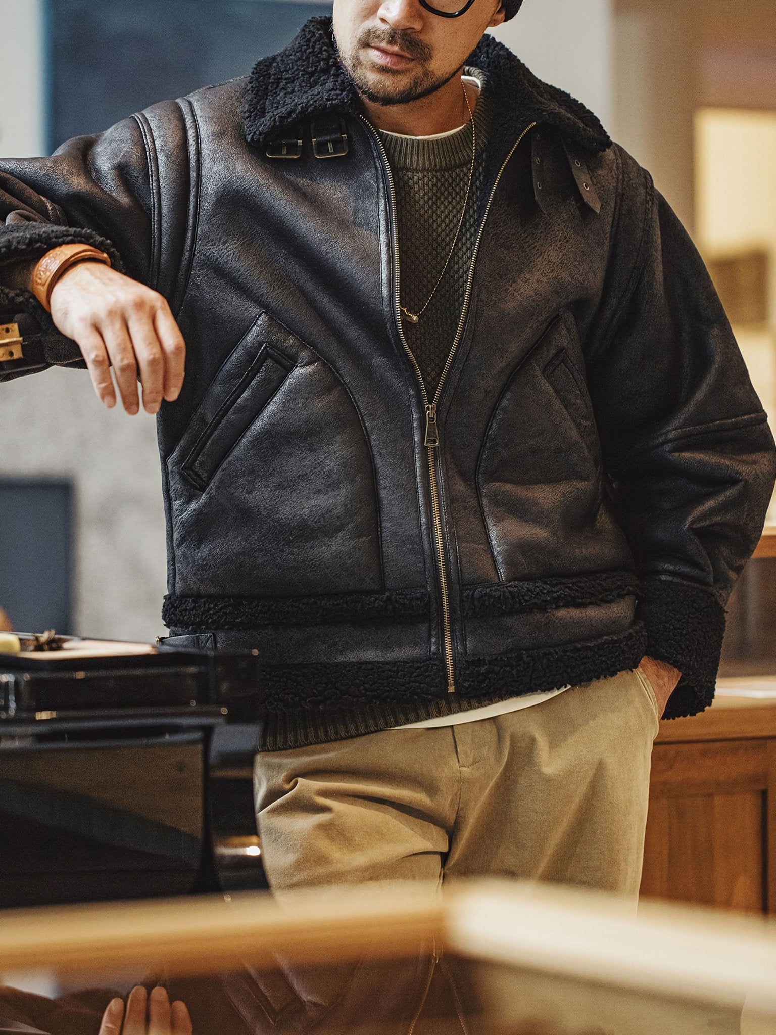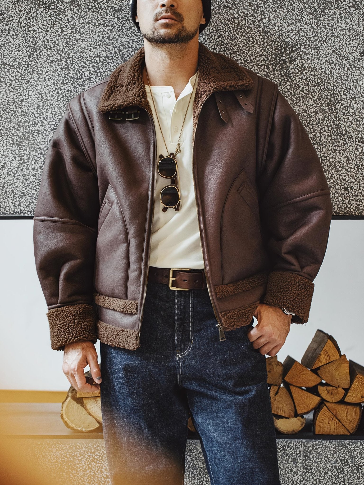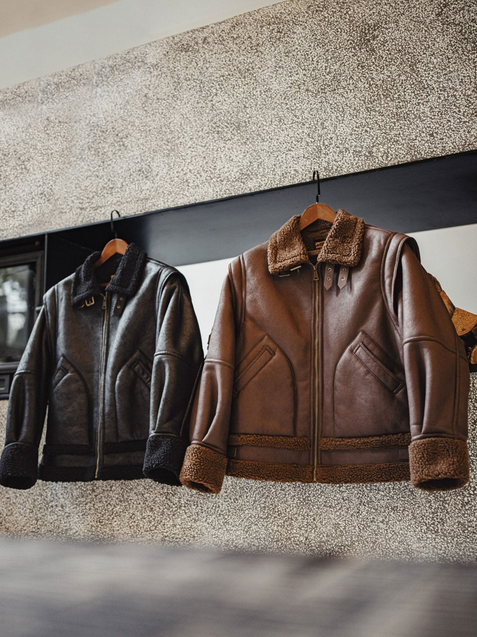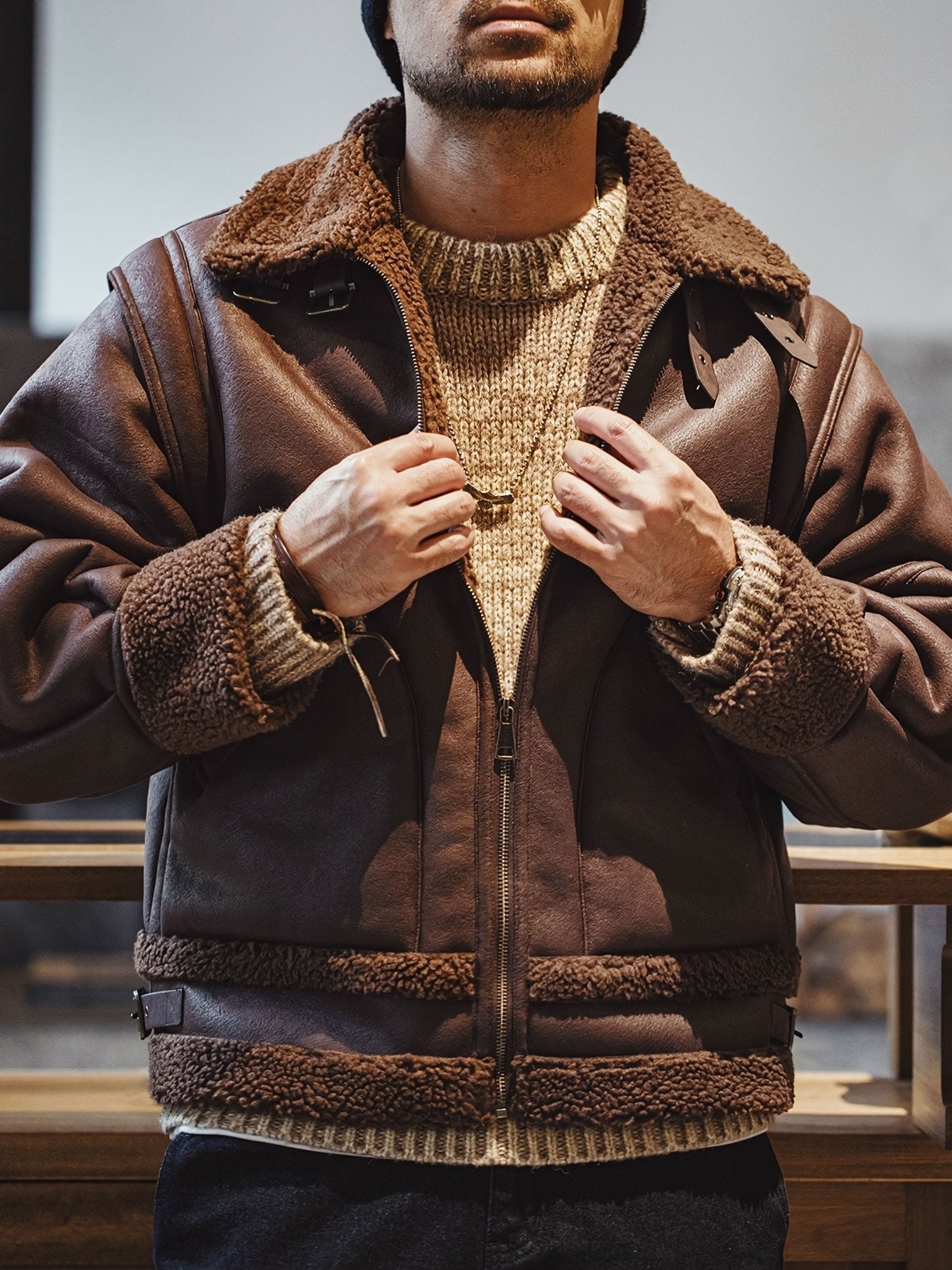 このジャケットはクラシックなオリジナルB3ジャケットをインスピレーションにし、ゴールド箔押しのスウェード素材を取り入れ、高貴で優雅な外観を演出しています。レトロな襟デザインは、ジャケットに時尚性とエレガンスをもたらし、襟元の防風ボタンは追加の保護を提供し、さまざまな気候条件に適応します。