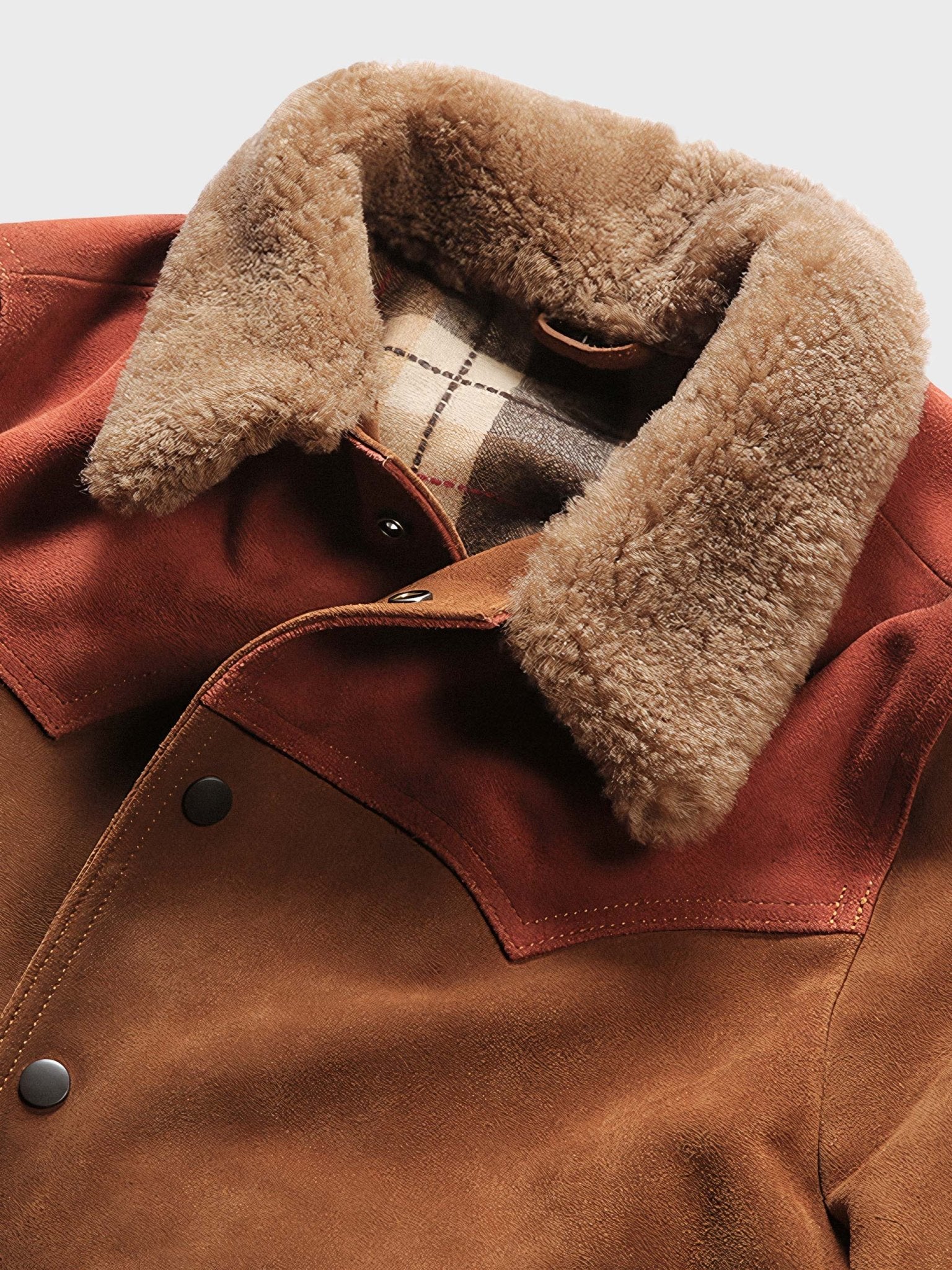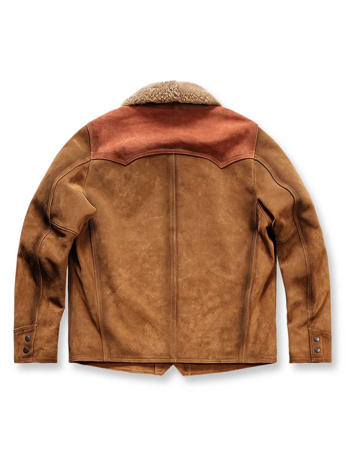 このパッチワーク風リバーススウェードレザージャケットは、デザイン性豊かなクラシックなアウターウェアです。