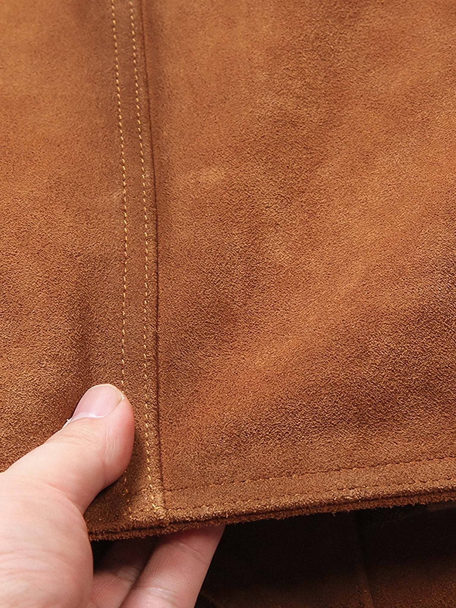 1.1ミリメートルの厚さの牛革を使用し、手作業でオイルと摩擦によるカラーデザインが施され、ジャケットに濃厚なレトロな風合いを与えています。