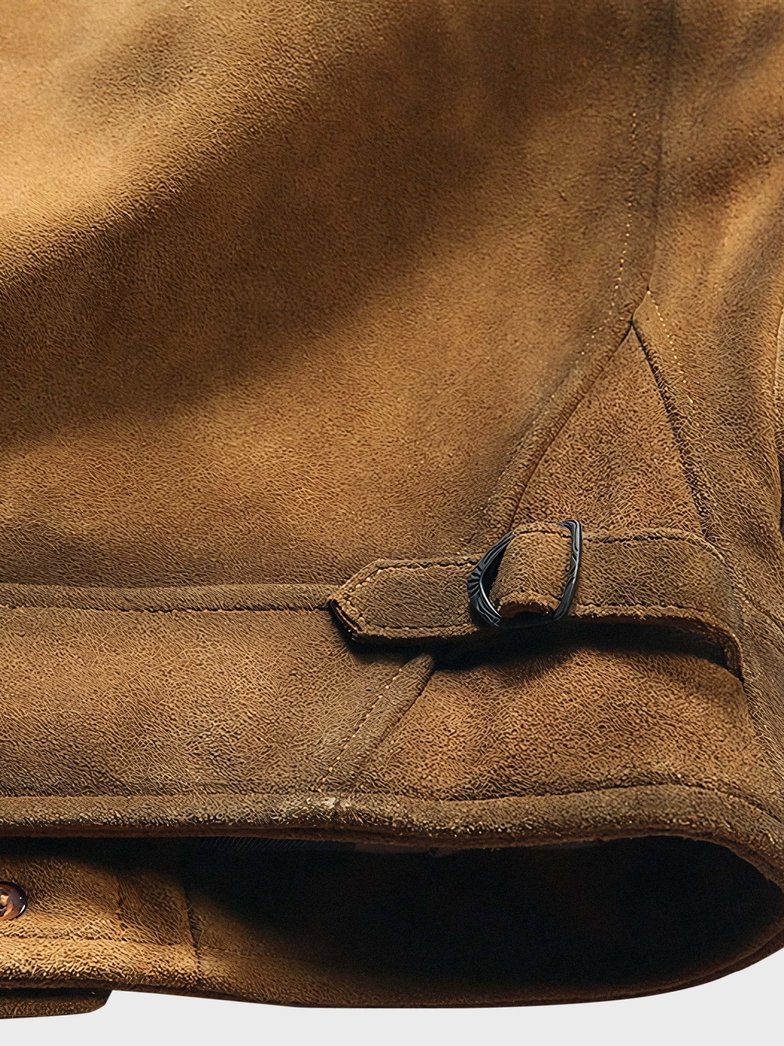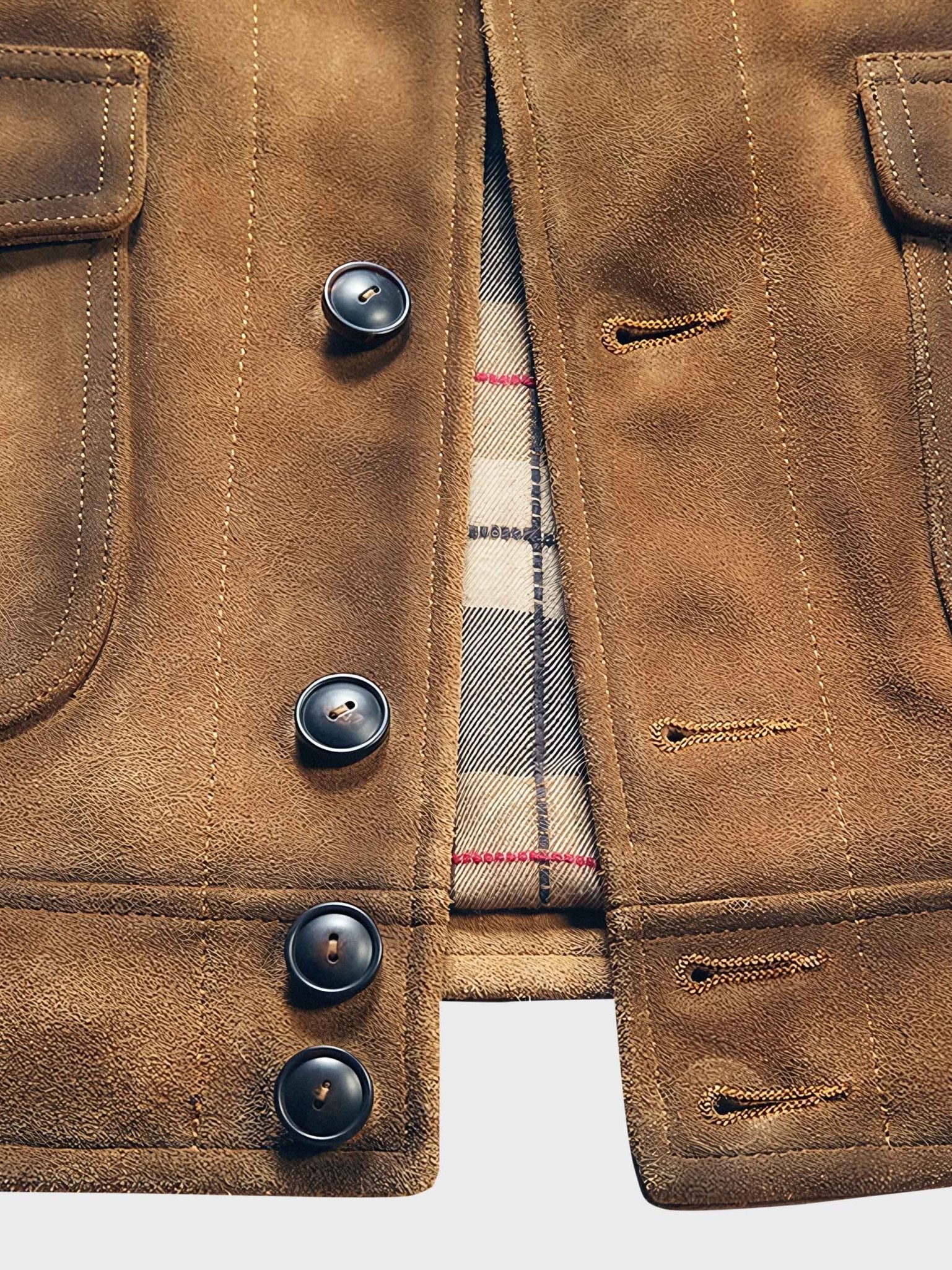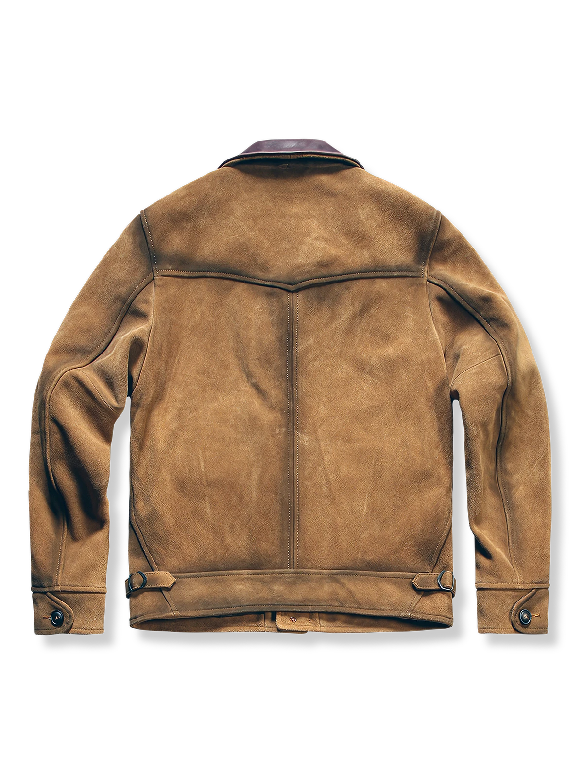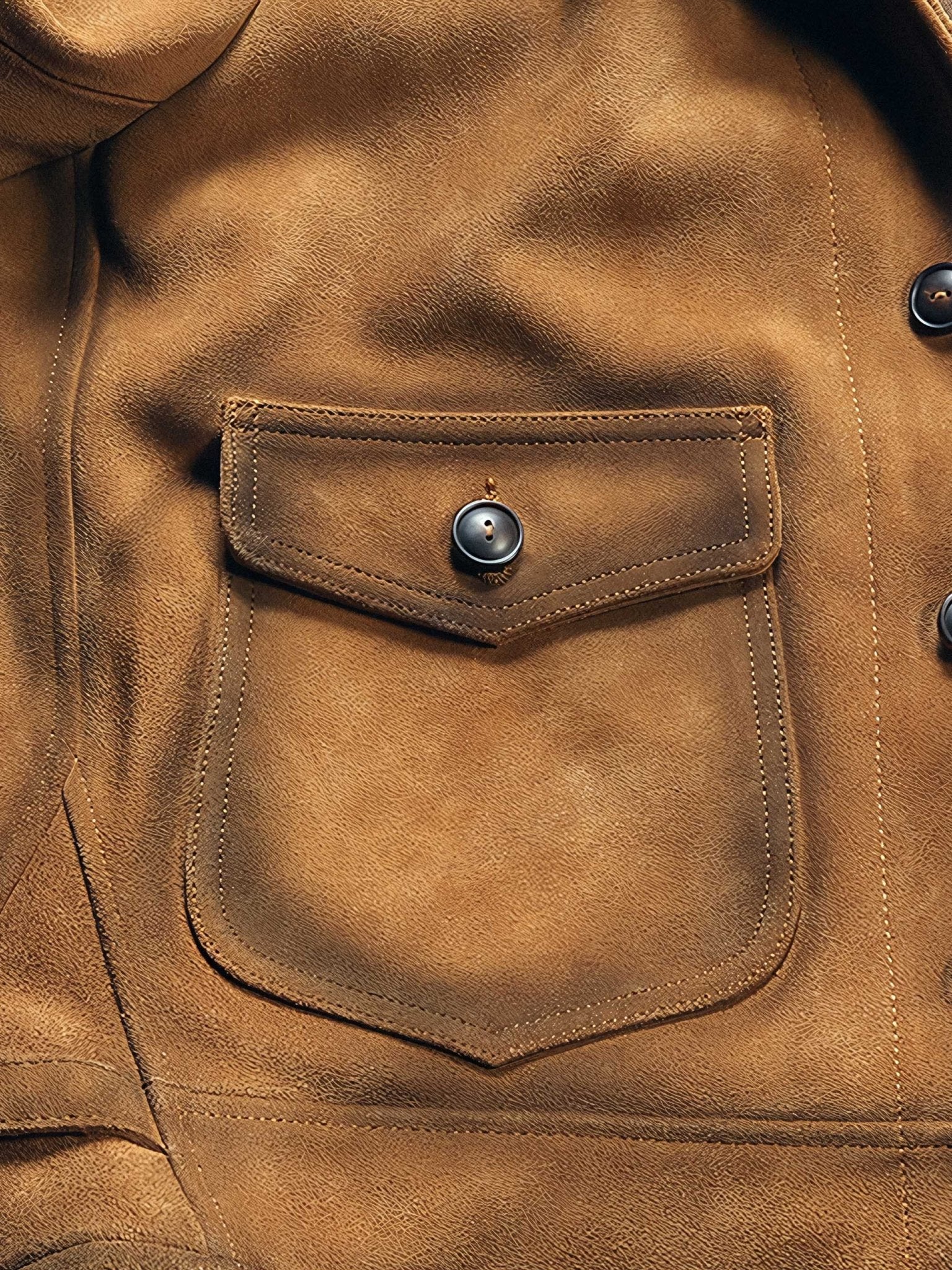 アンティーク風のスエードレザージャケット、映画でジョニー・デップが着ているのと同じものです。色合いはヴィンテージ感を出すために古びた雰囲気を持っており、RRLのスタイルを再現しました。