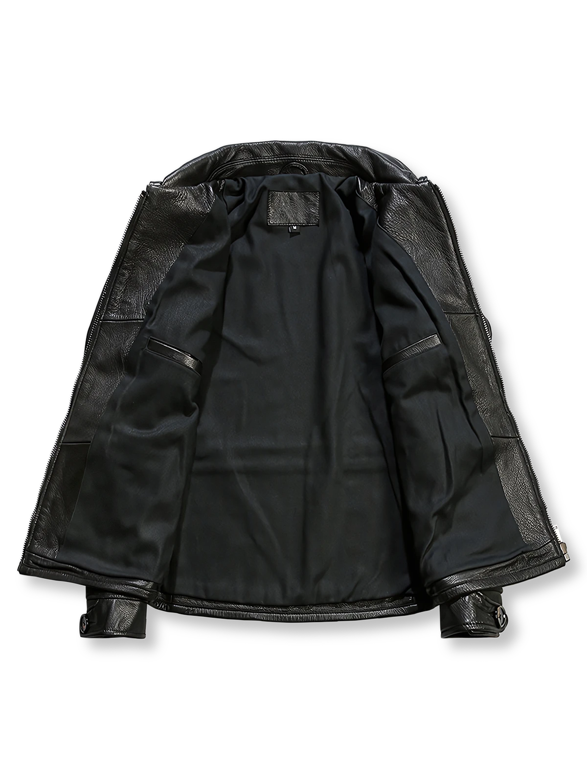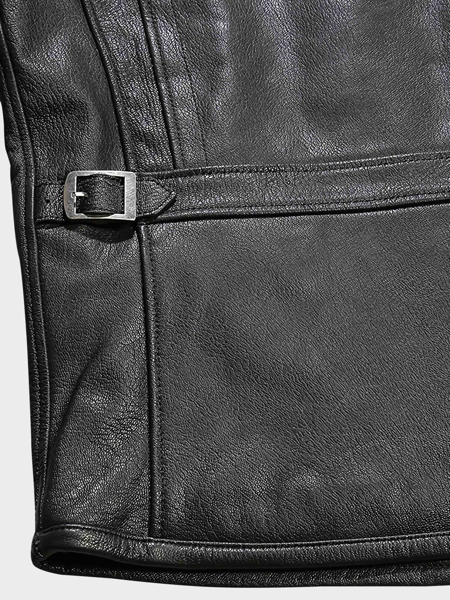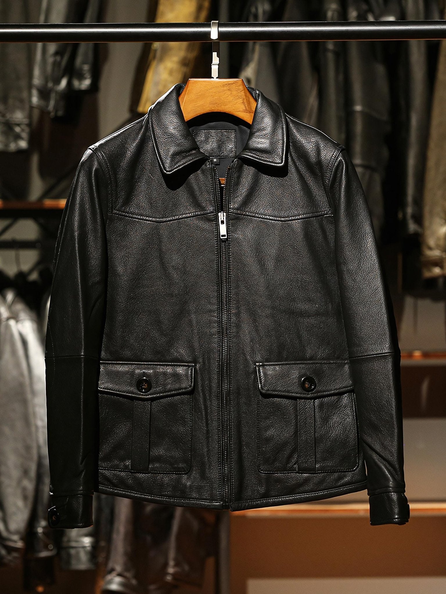 この山羊皮ジャケットは、シンプルでクラシックなデザインスタイルで際立っています。外観のデザインは簡潔で過剰な装飾はなく、純粋なレザーの質感を引き立てます。また、デザイナーは巧妙に2つのポケットを組み込み、外観が実用的でありながらもファッショナブルな要素を持っています。
