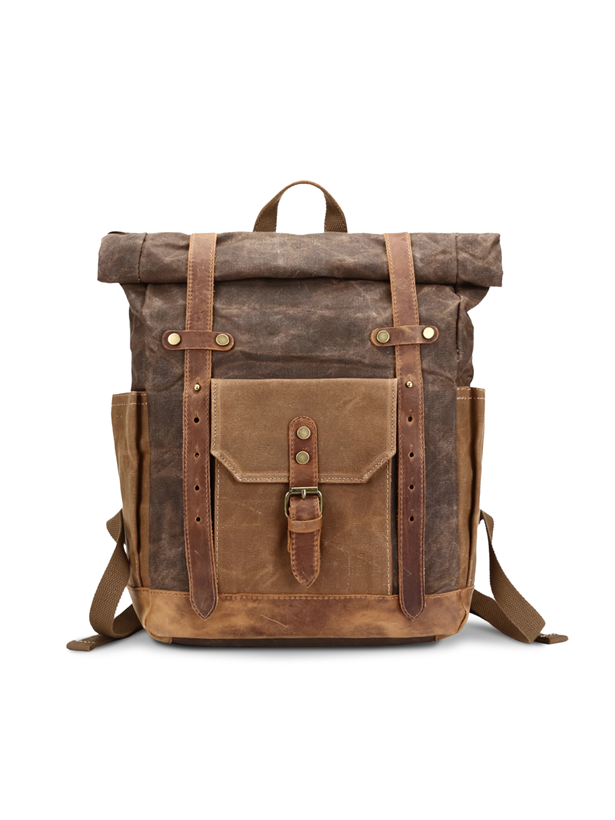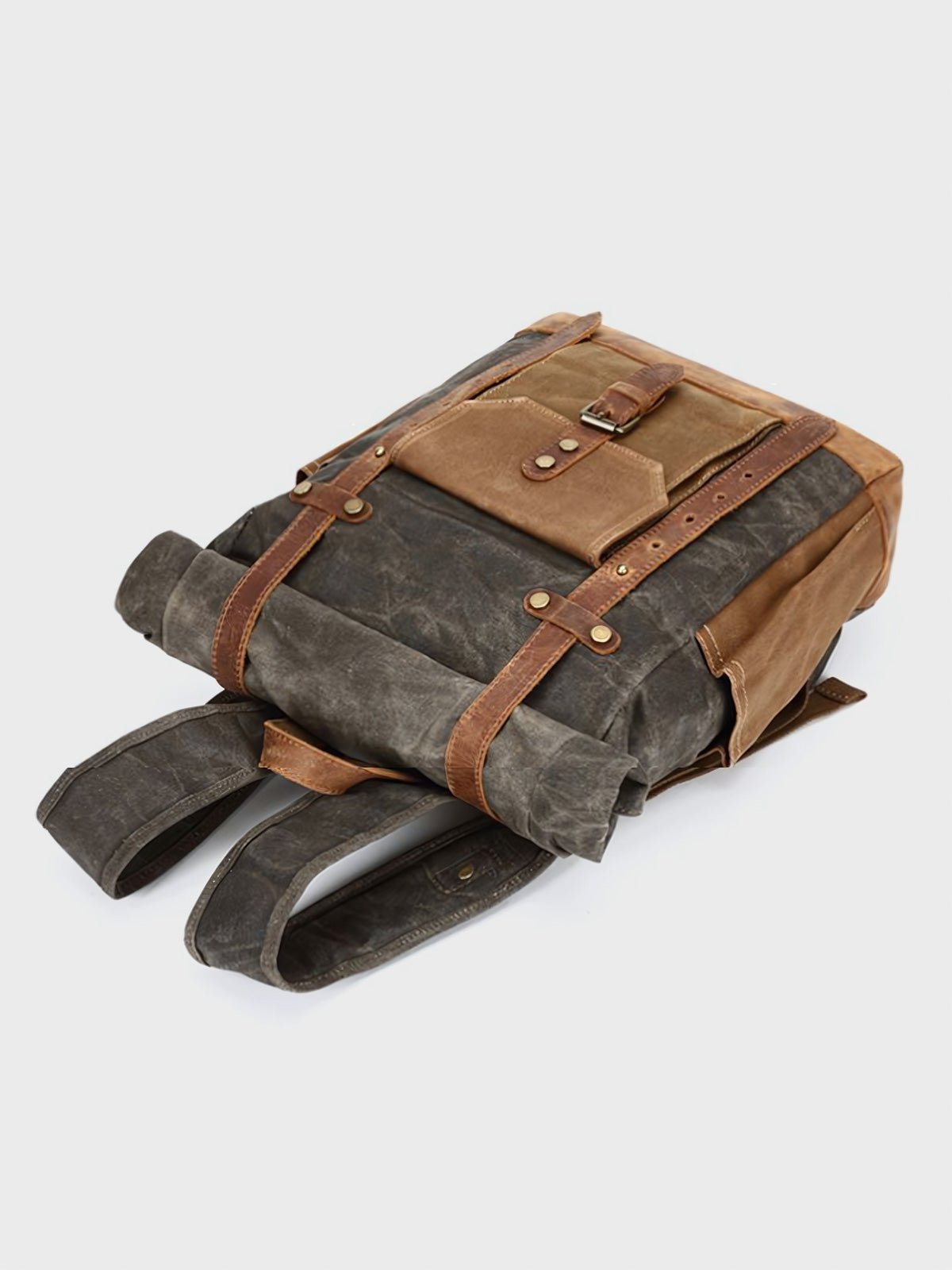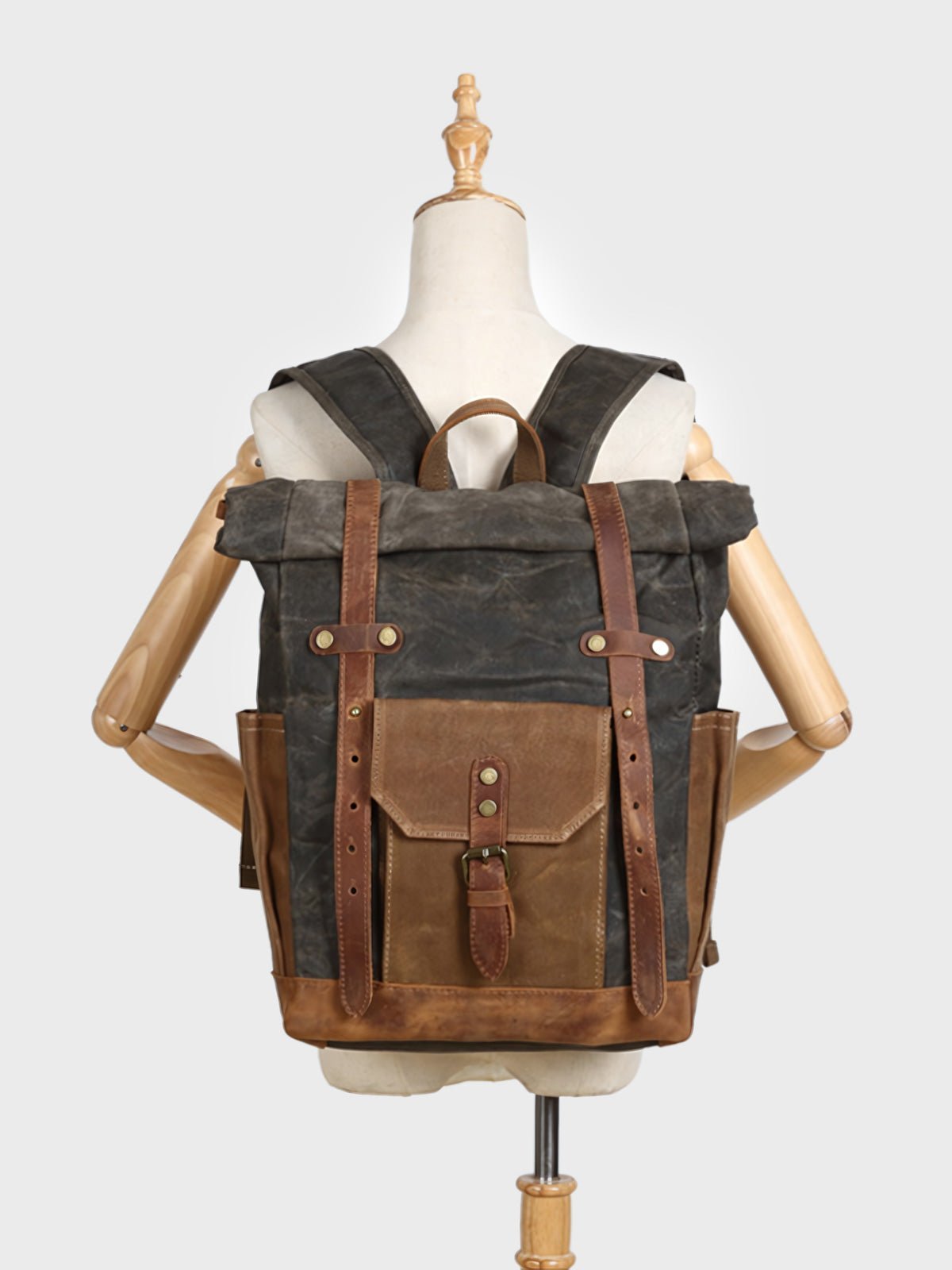 高品質のキャンバス生地に耐水性を持たせ、磨かれたレザーのアクセントが特徴です。緩衝材が施された内部ポケットや、外側に配された複数のポケットが利便性を高めています。このリュックはアウトドアアクティビティにも都市生活にも適しています。カジュアルなジーンズとTシャツに合わせたり、チノパンツとシャツできれいめカジュアルにマッチします。