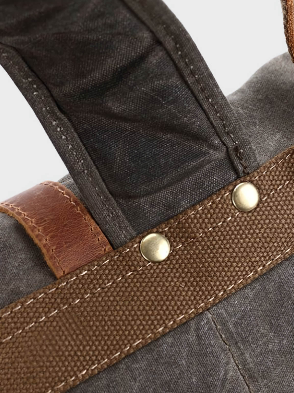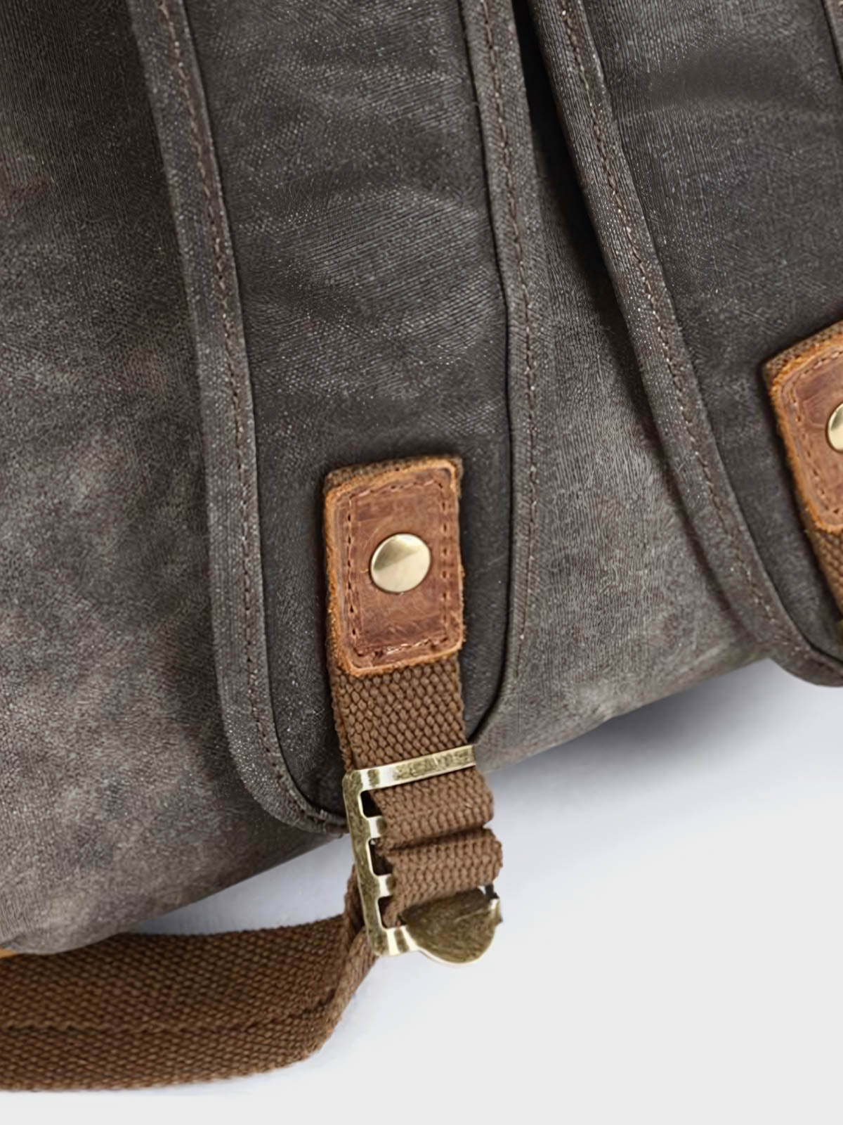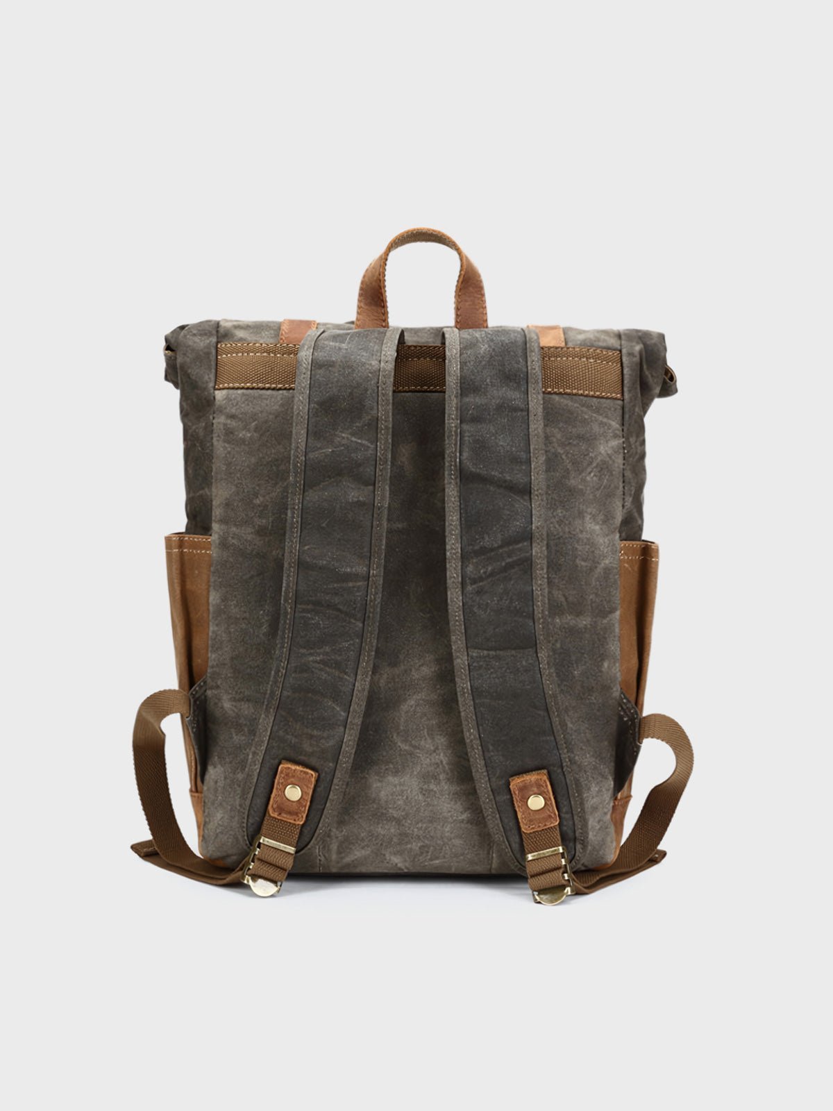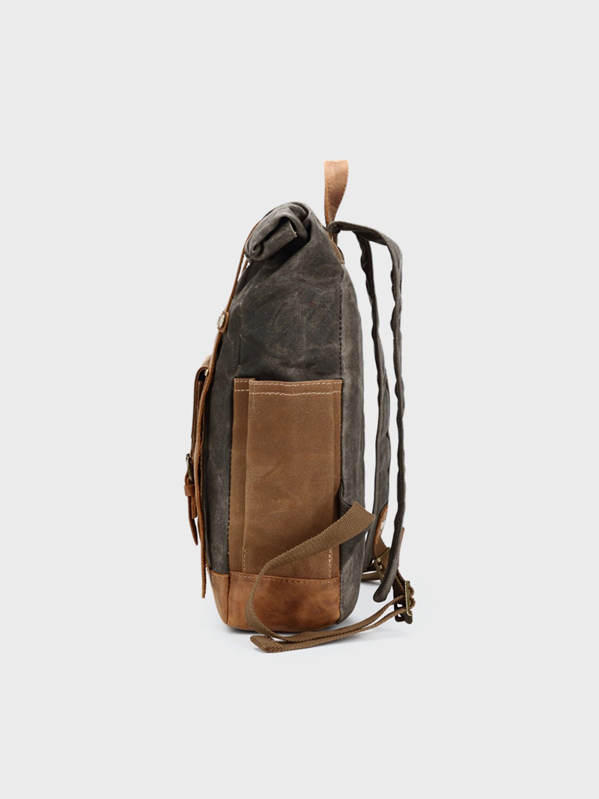 高品質のキャンバス生地に耐水性を持たせ、磨かれたレザーのアクセントが特徴です。緩衝材が施された内部ポケットや、外側に配された複数のポケットが利便性を高めています。このリュックはアウトドアアクティビティにも都市生活にも適しています。カジュアルなジーンズとTシャツに合わせたり、チノパンツとシャツできれいめカジュアルにマッチします。