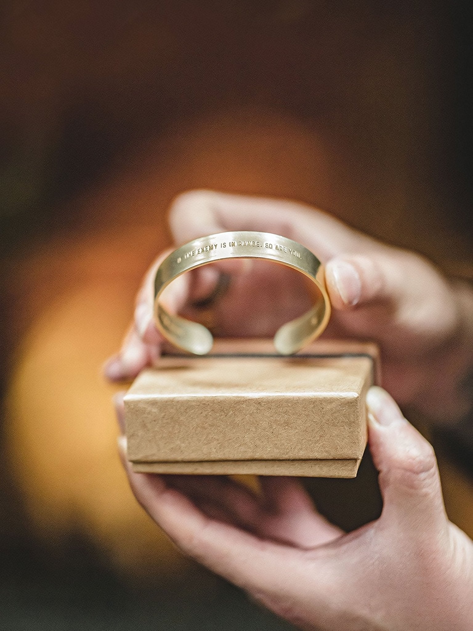 シンプルなデザインでありながら、どんなスタイリングにも合わせられるバングルです。他のブレスレットと重ね付けをしても嫌味な感じが無く、お洒落感を漂わせてくれます。ペアルックやプレゼント、ギフトにも最適です。