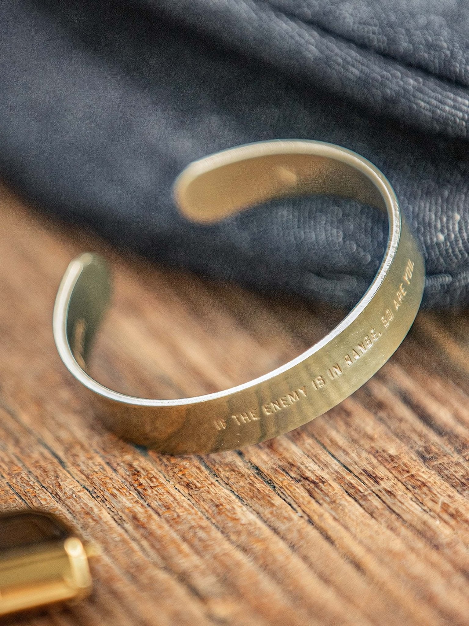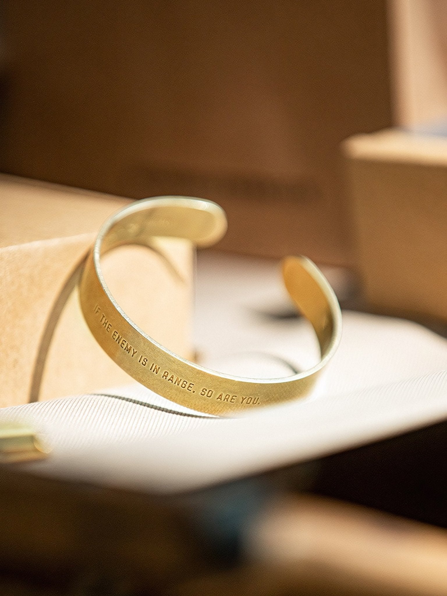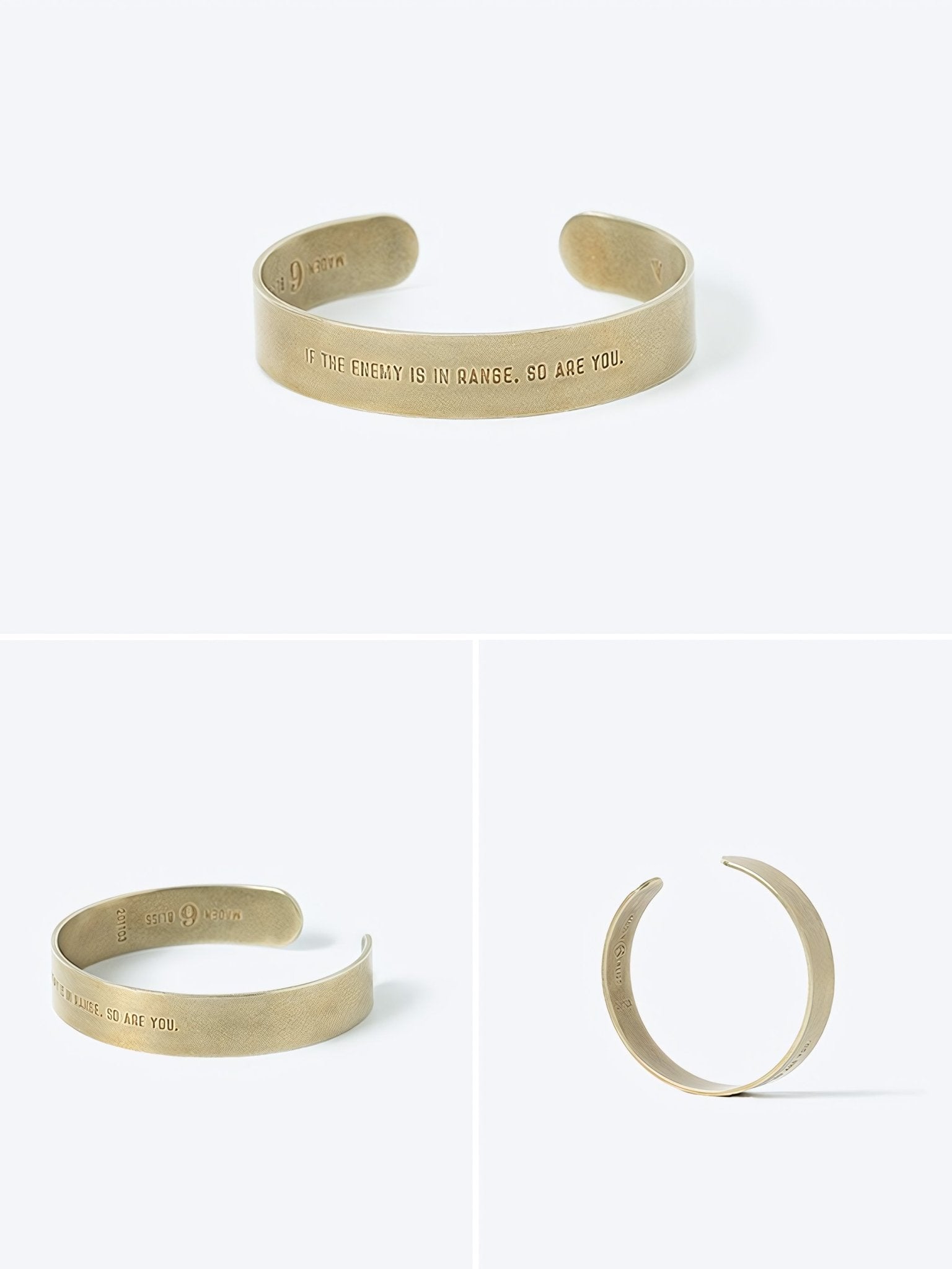 ミリタリースタイルに欠かせない、男らしいフォルムのブレスレットで、付け外しも簡単です。もともと記念ブレスレットとして誕生したミリタリーブレスレットをベースに、文章やマークを刻まれて、人に幸運と勇気をもたらす一点です。【if the enemy is in range,so are you】【Maden 6 Bliss 201103】という刻印が、ヴィンテージ感満載のデザインが特徴です。