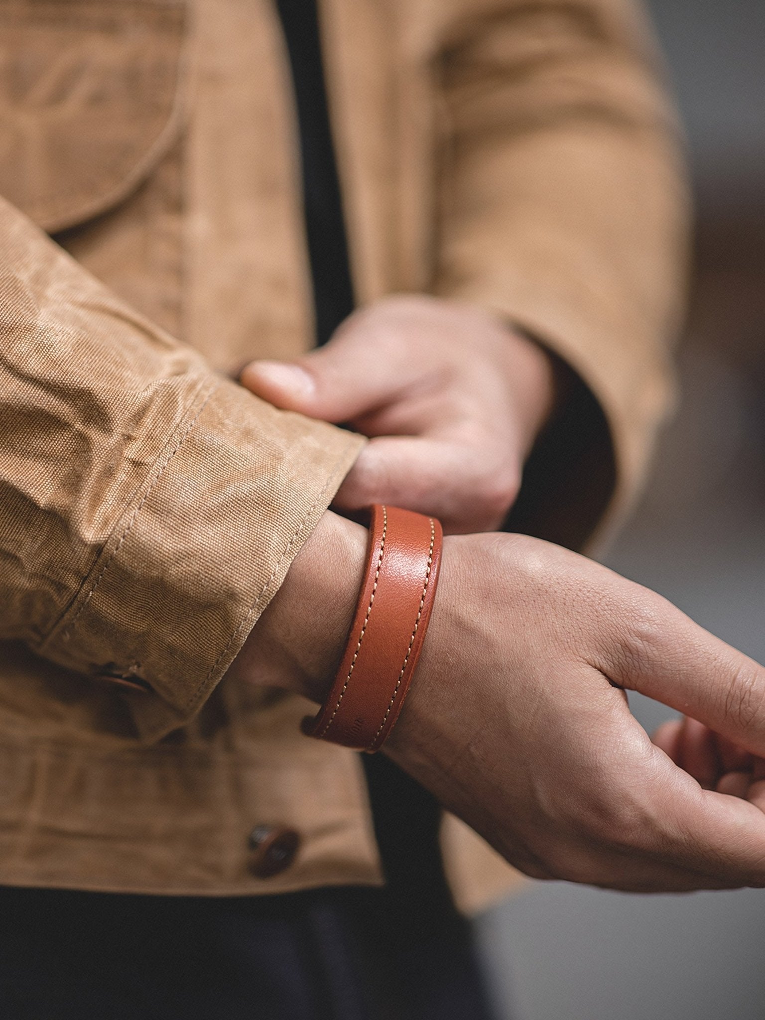 上質なイタリアンレザーを使用し、職人が一つ一つ手作りで作り上げた牛革ブレスレットです。職人によるハンドメイドで作られており、同じモデルでも色味や柄の違いがオンリーワンの愛着を感じさせます。
