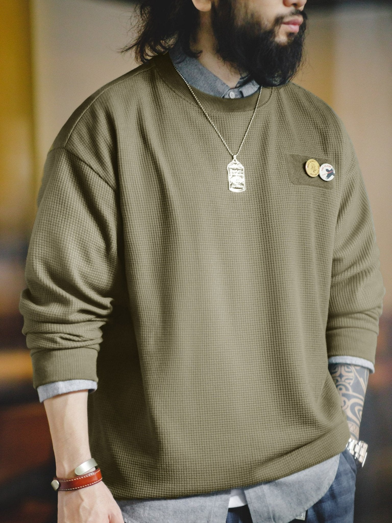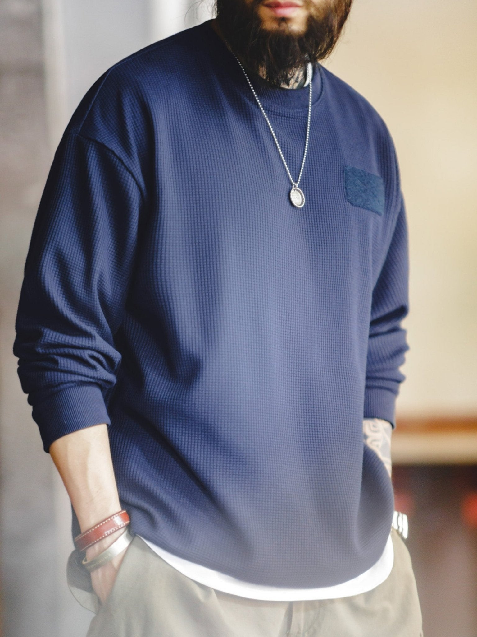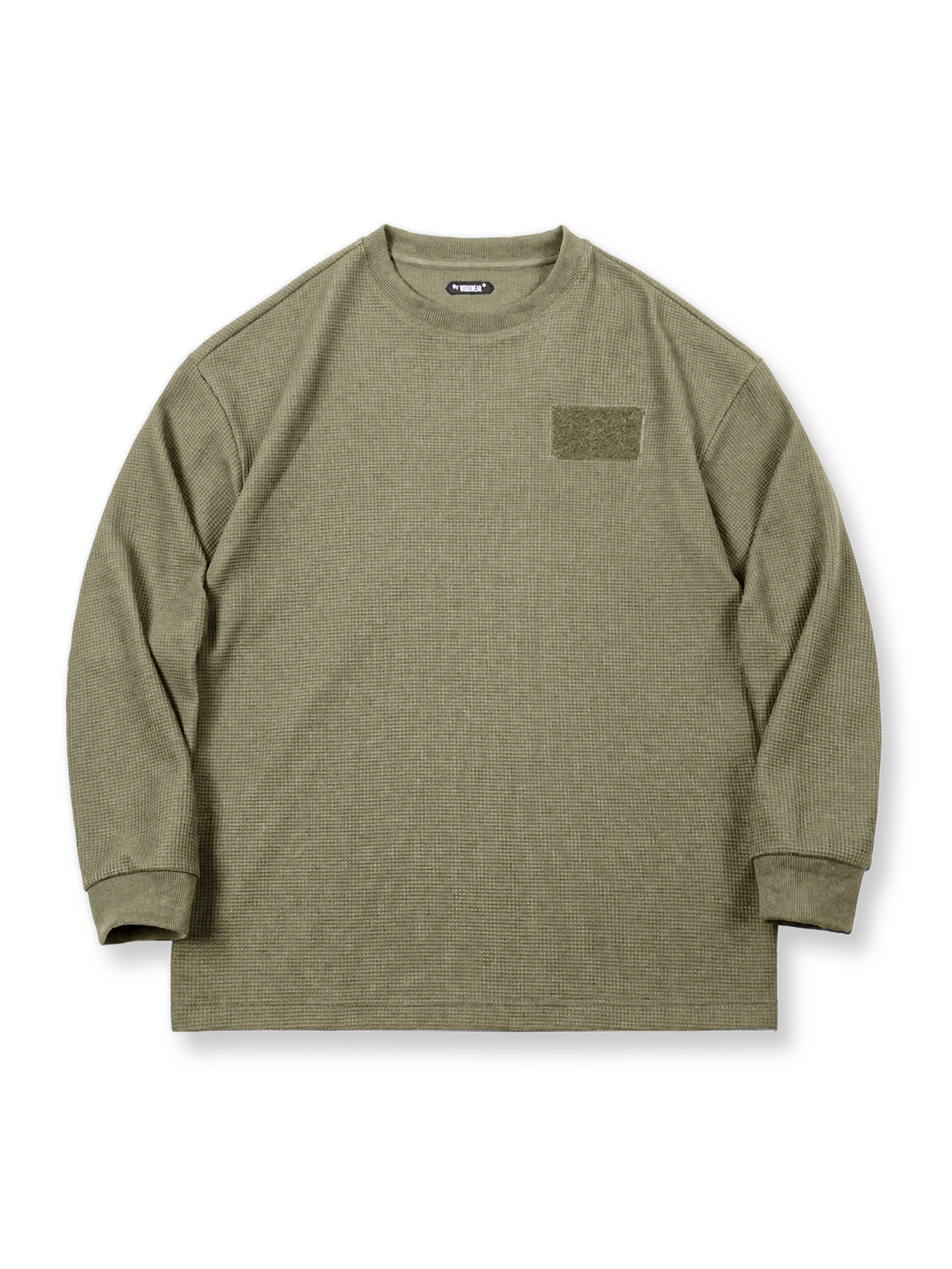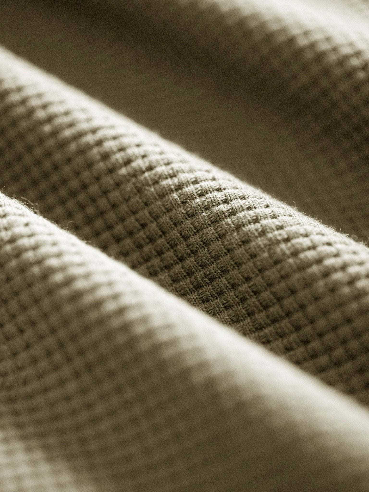 このアイテムはワッフル編みと呼ばれる特殊な編み方で作られて、凹凸のある編み目が特徴で、軽量かつ通気性があります。