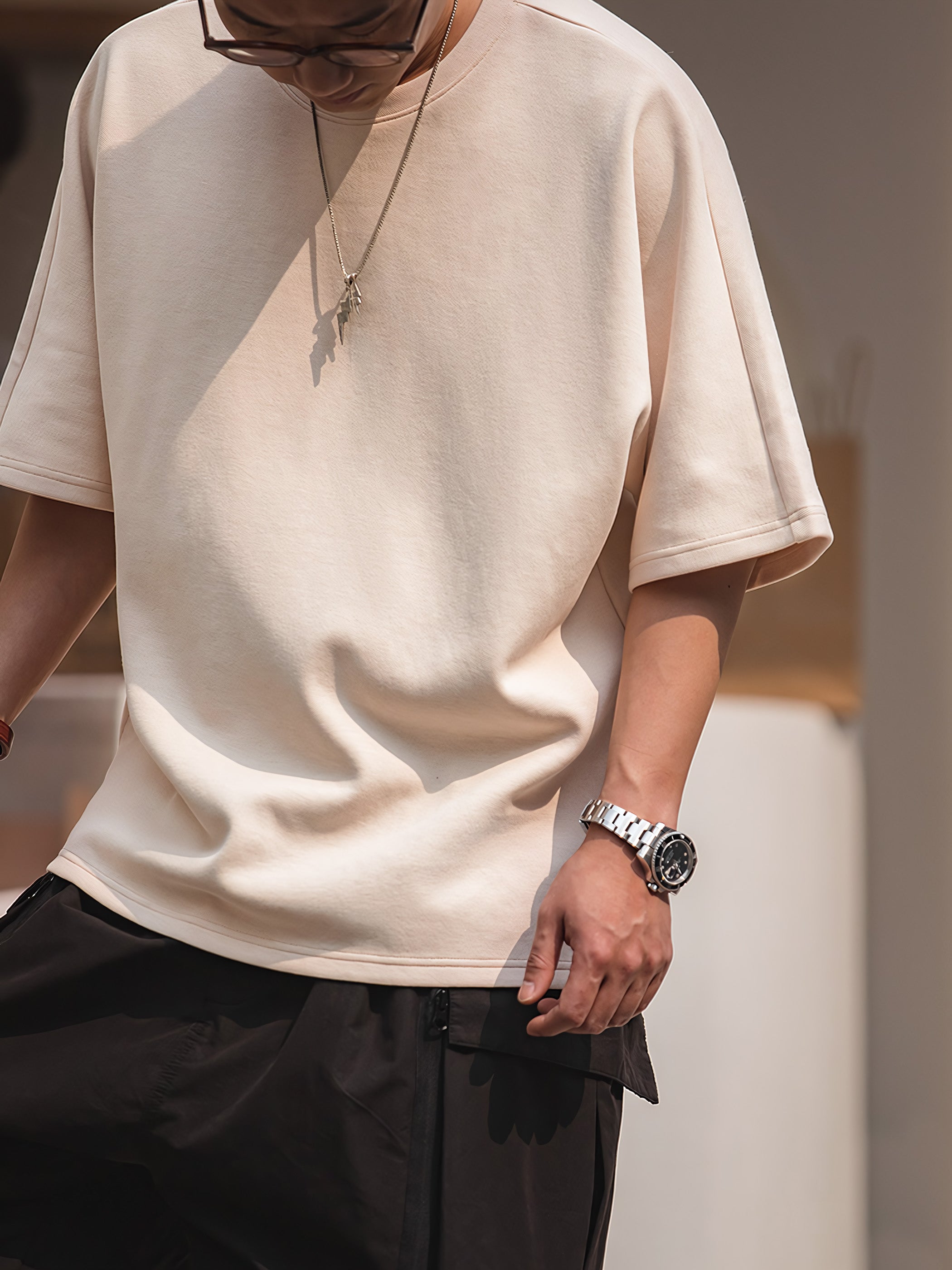 トレンドのビッグシルエットであり、肩をドロップさせた抜け感があるデザインです。ゆったりとしたシルエットで、ユニセックスでの着用も可能です。体型を選ばず、幅広い層の方々にフィットするTシャツです。