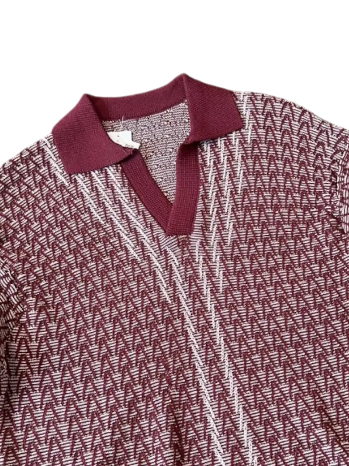 1920年代にスポーツとドレスの要素を融合したポロシャツをベースに、レトロな雰囲気を醸し出すジャカード編みを採用。胸元はVネック仕立てで、襟と袖口に配した配色がさりげないアクセントに。レーヨン45%・ポリエステル55%の“アイスシルク”素材が、汗ばむ季節でもさらりと快適な着心地を実現します。ショートパンツやスラックスとの相性も良く、カジュアルから上品なコーデまで幅広く活躍。