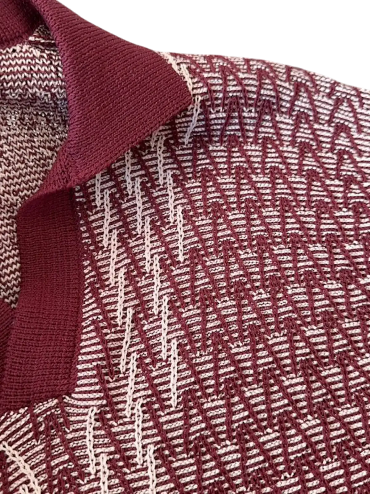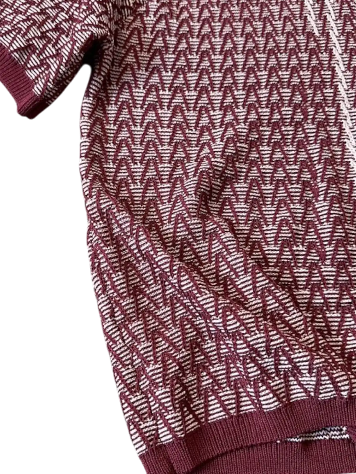 レーヨンとポリエステルをブレンドした涼感素材で、透かし柄が際立つ「Old Money」スタイルの半袖ポロシャツ。