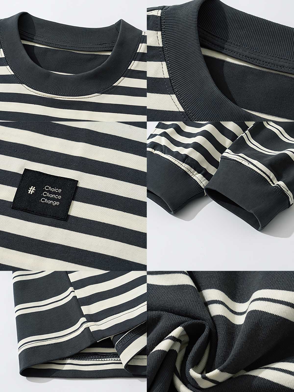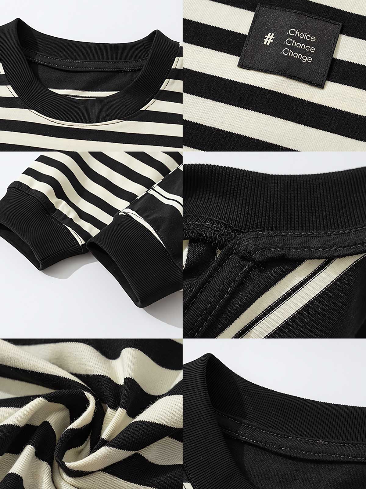 厳選されたコットン素材は、肌触りが良く、通気性に優れ、耐久性があり洗濯が容易です。黒と白のストライプは対照的で、シンプルで鮮明な視覚的印象を与えます。袖口と裾の色を濃くするデザインは、デザインの層を増やし、細部の美しさを加えています。