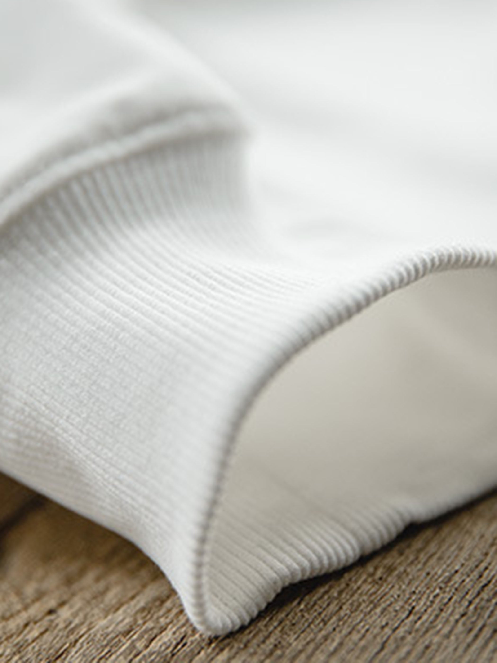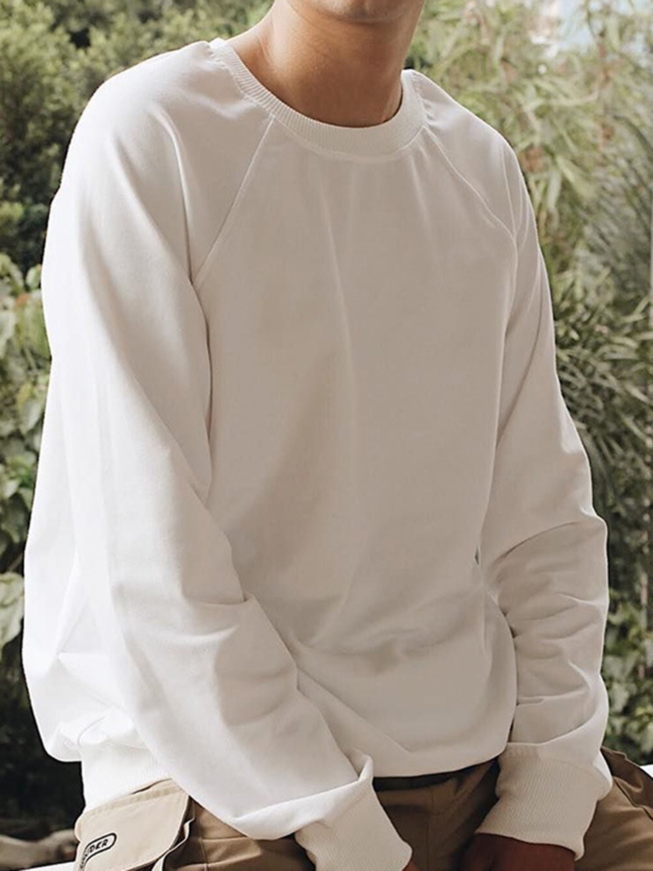 ベーシックな無地デザインながら、ネックラインや袖口のリブ補強でシルエットを美しくキープ。カジュアルながらも上品な印象に仕上げました。