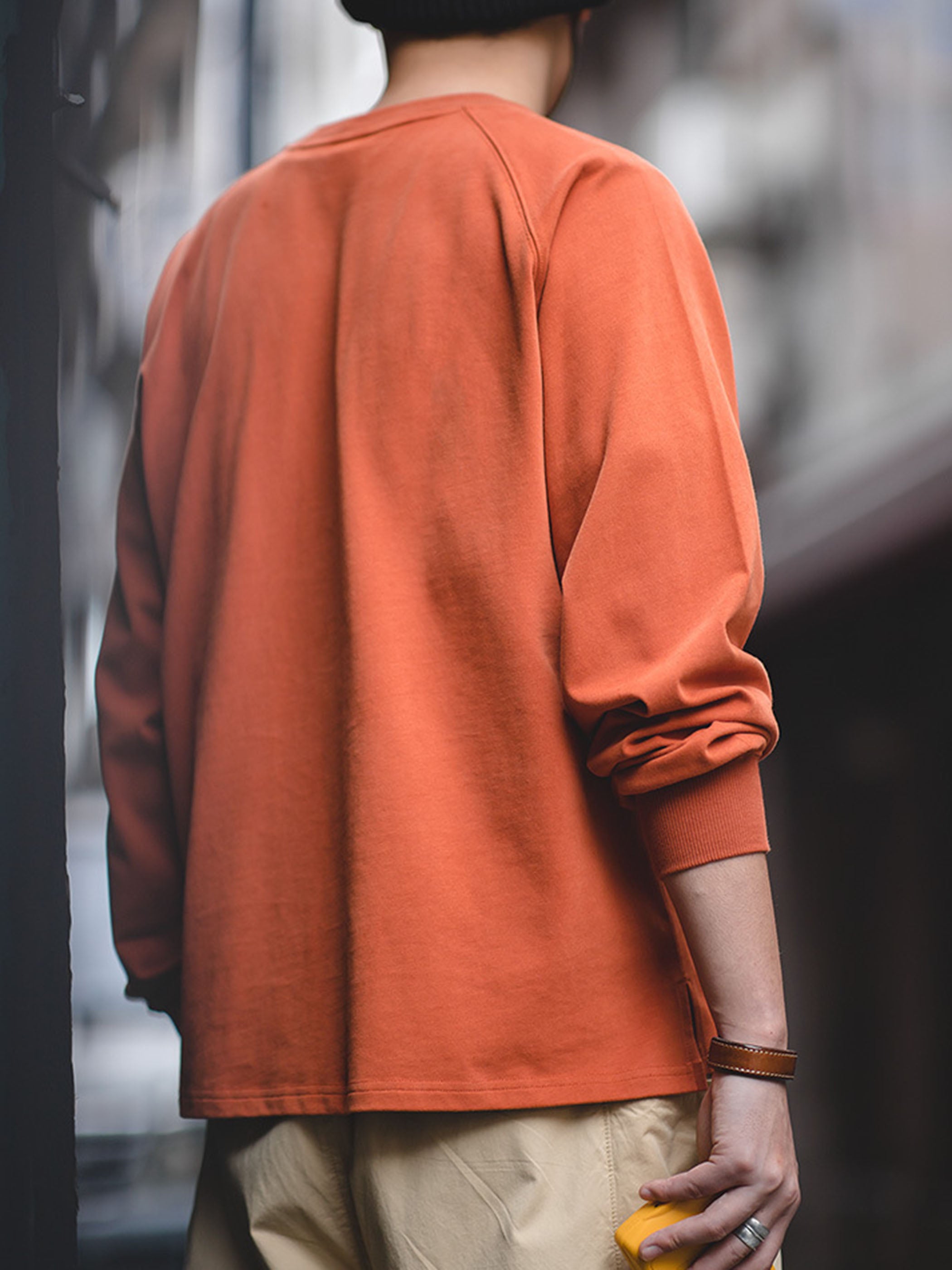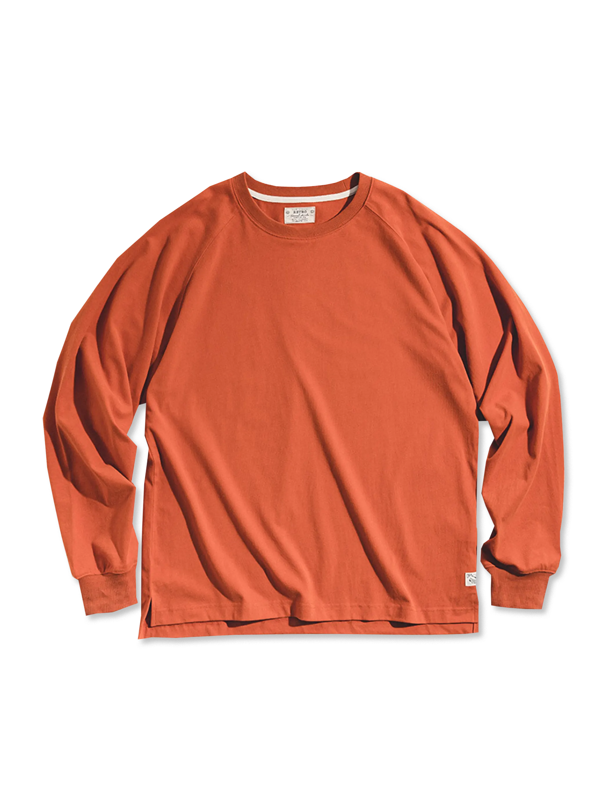 230gのコットンダブルヤーンフリースを使用し、起毛加工で柔らかく快適な着心地。レイヤードにも一枚着にも最適な万能ロンT。
