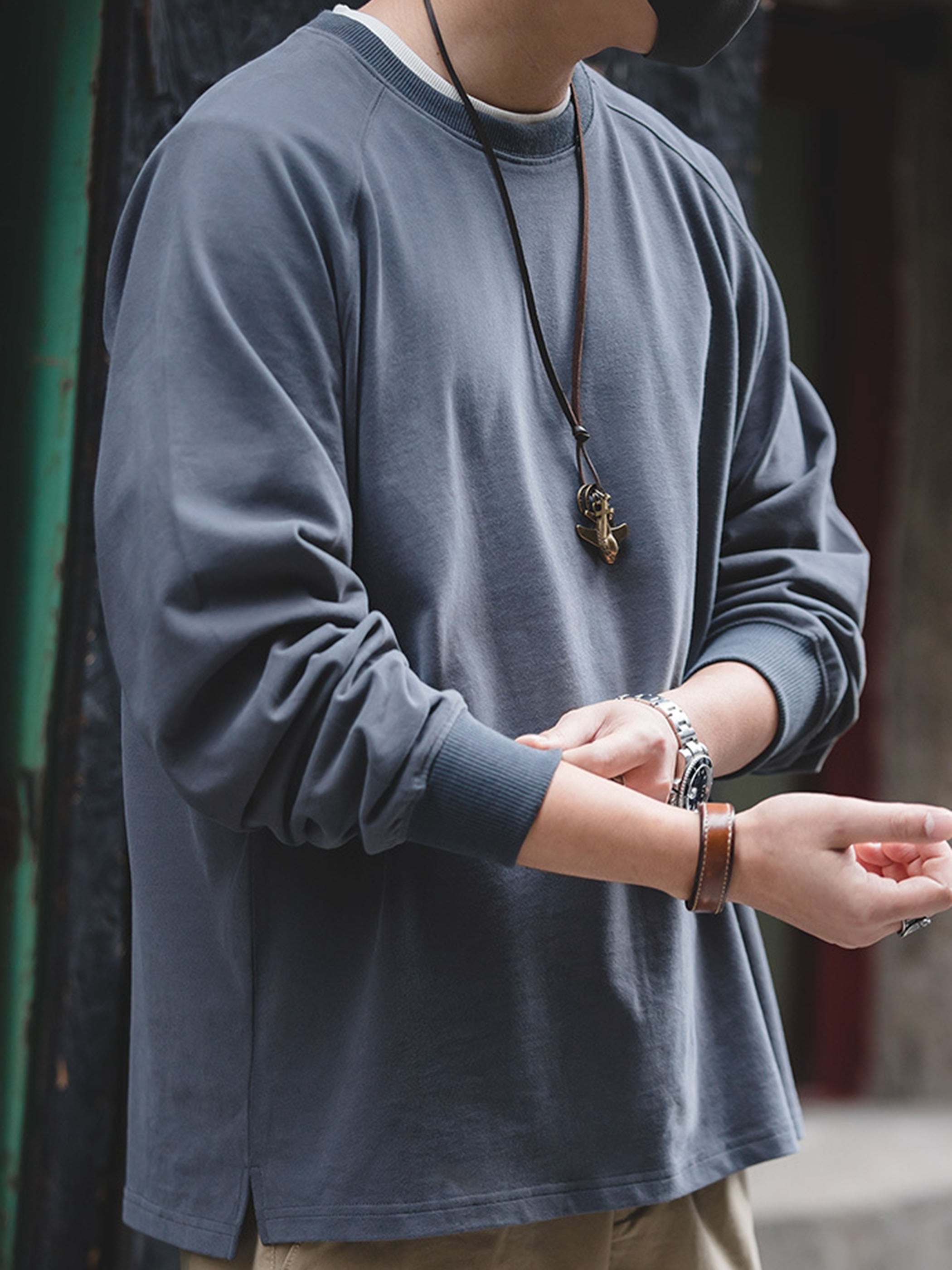 秋は一枚で、冬はインナーとして活躍。ワークジャケット、デニムジャケット、ダウンジャケットなどと相性抜群で、シーズン問わず着回しが可能。