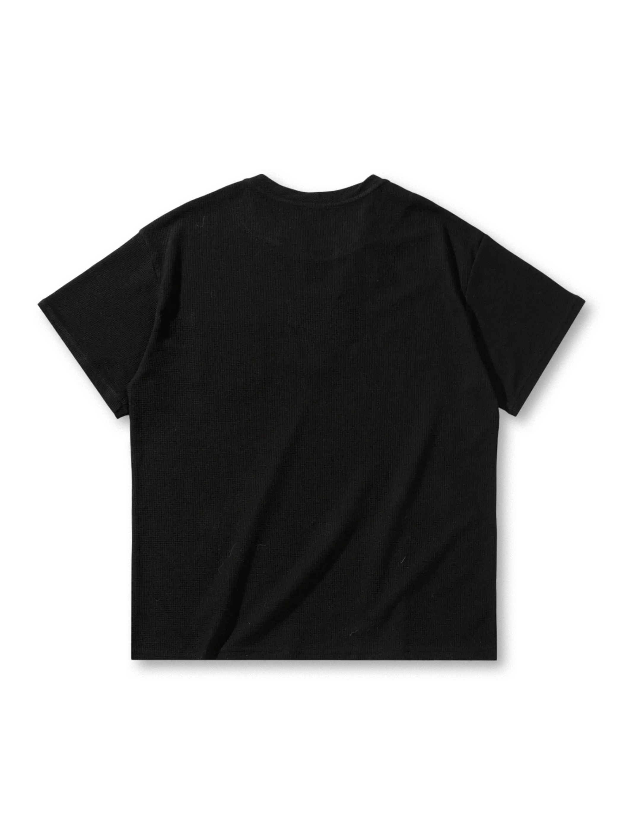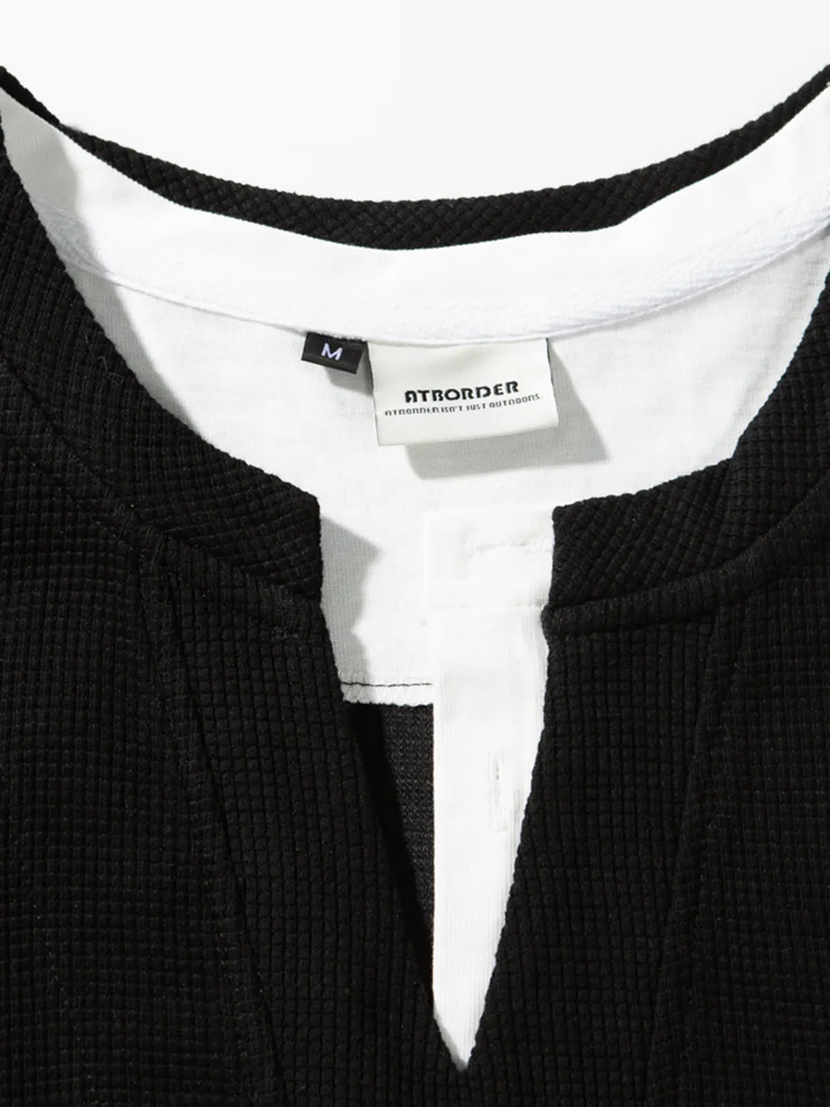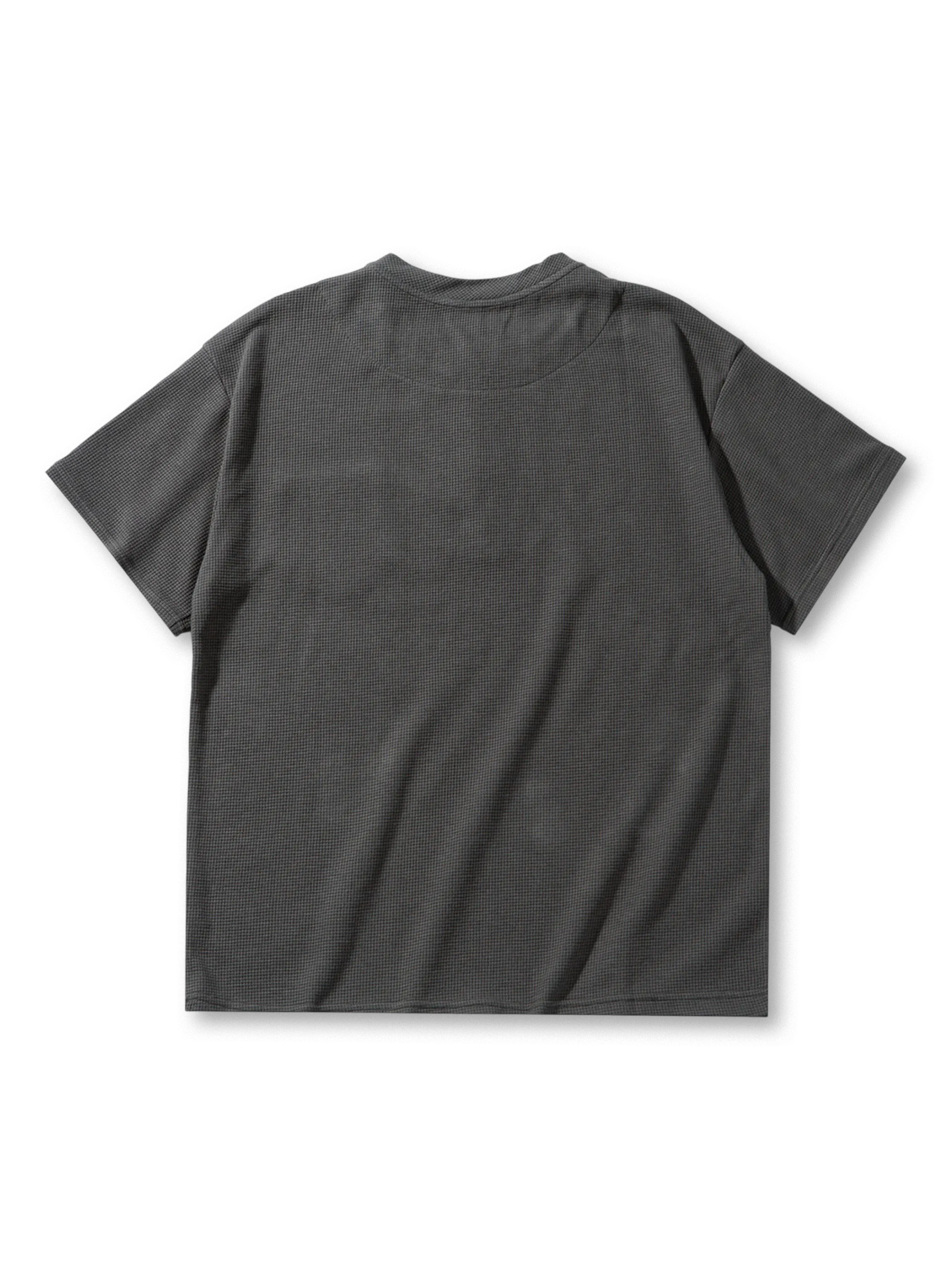 ワッフル生地のパネルデザインを採用したフェイクレイヤードTシャツ。快適な着心地と立体的なデザインが特徴の一着。