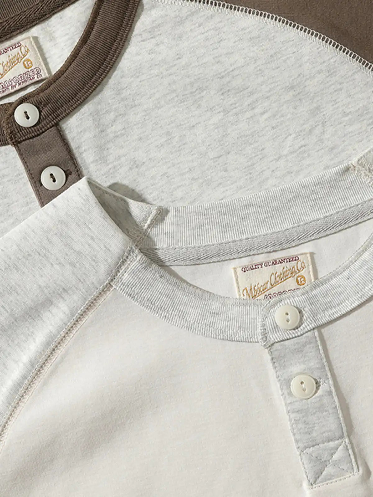 ビンテージヘンリーTの佇まいと現代トレーニングウェアの快適性を融合し、程よいレトロ感と日常の動きやすさを両立する一枚です。