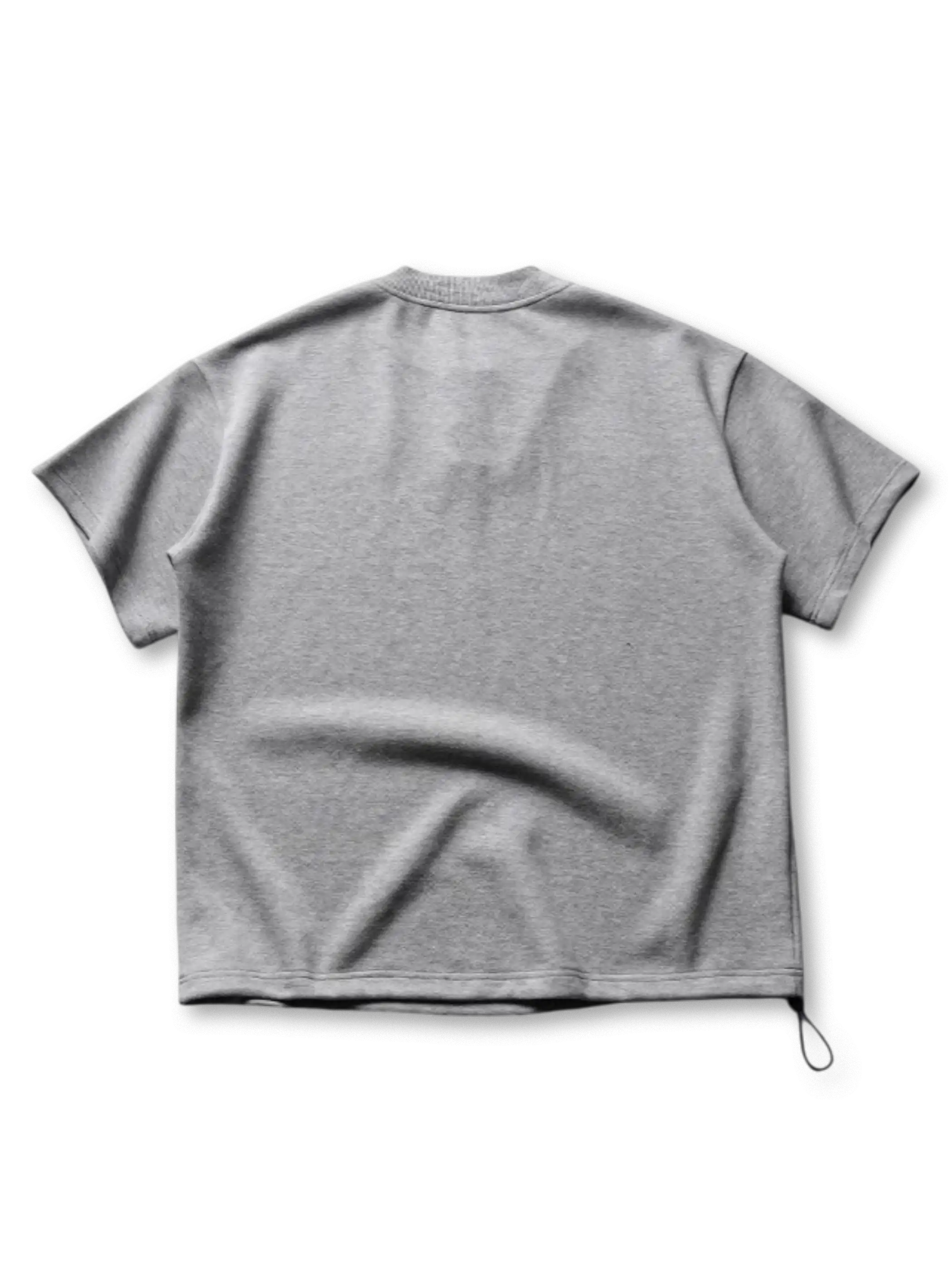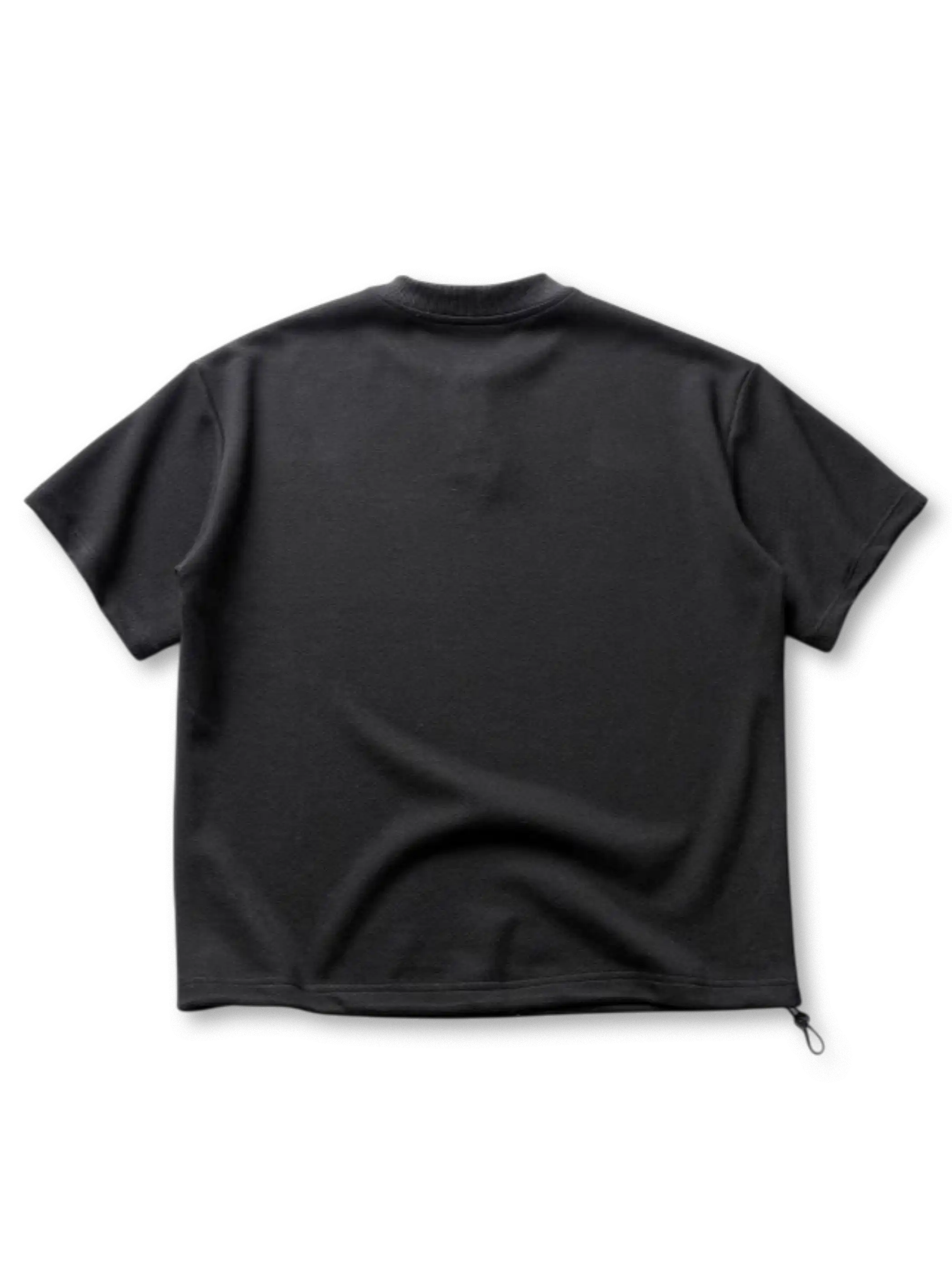 ハイゲージニットのようなエアリーな生地構造が体温を逃がしつつソフトな肌触りを実現し、胸元の三つボタンヘンリーネックが着こなしにさりげないアクセントをプラス。裾のドローコードでシルエットを微調整でき、ミニマルなデザインながらも着る人の個性を引き立てます。ブラックとグレーのモノトーン展開はどんなボトムスとも相性が良く、休日からワークアウト、都市部でのデイリー使いまで幅広いシーンで活躍します。