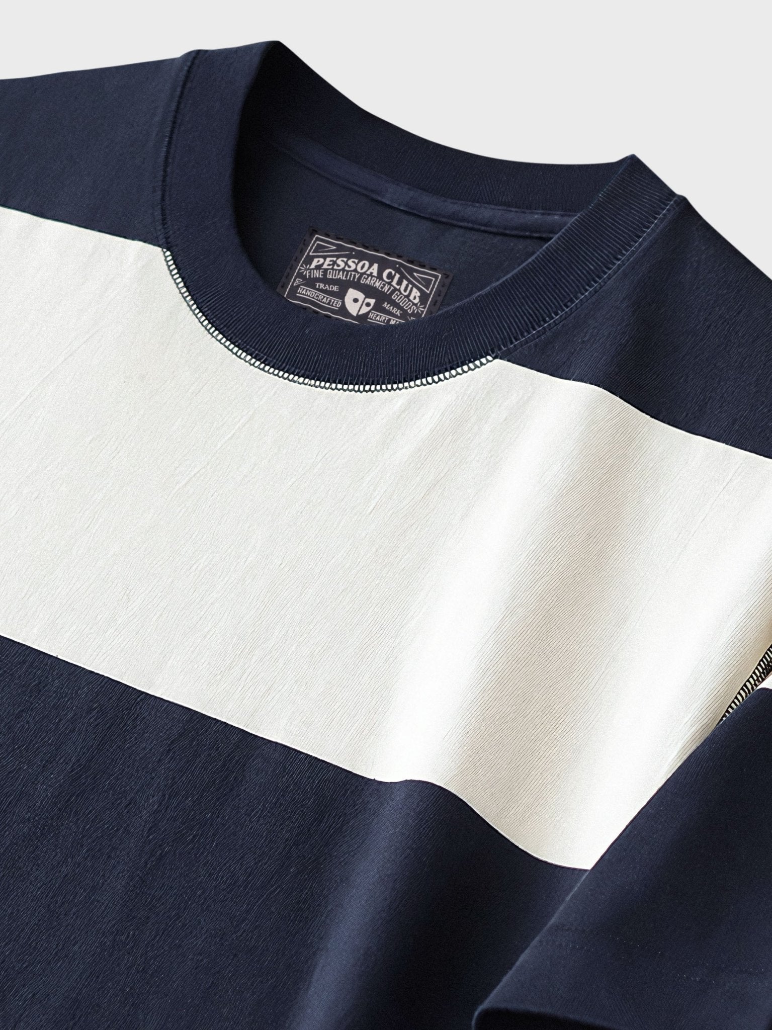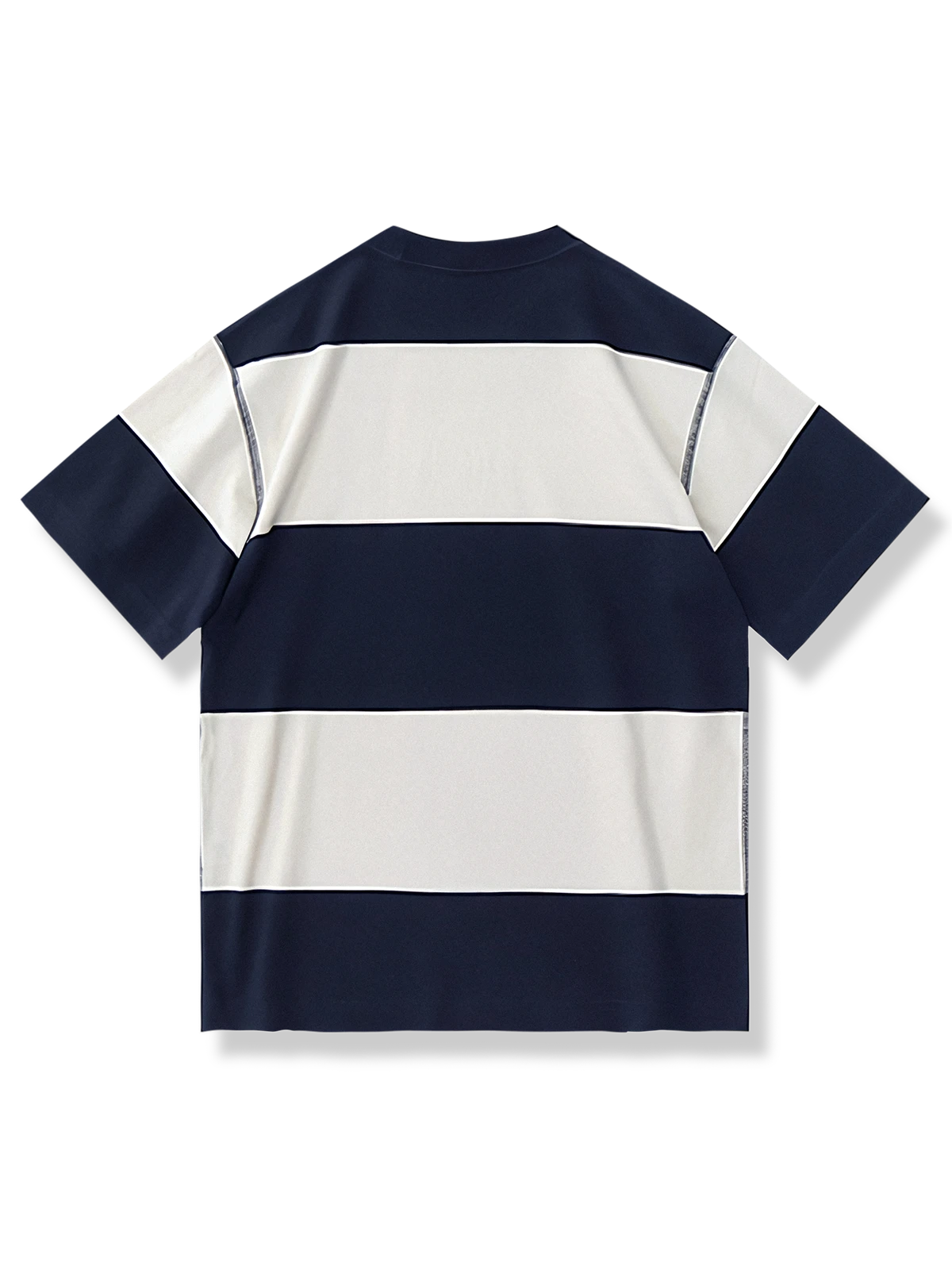 このTシャツは程よいゆとりのあるシルエットデザインで、快適で自由な着用感を提供します。16cmのコントラストカラー太ストライプの復刻デザインは、ファッションと活力が融合した印象を与え、全体のスタイリングにハイライトと個性を加えます。