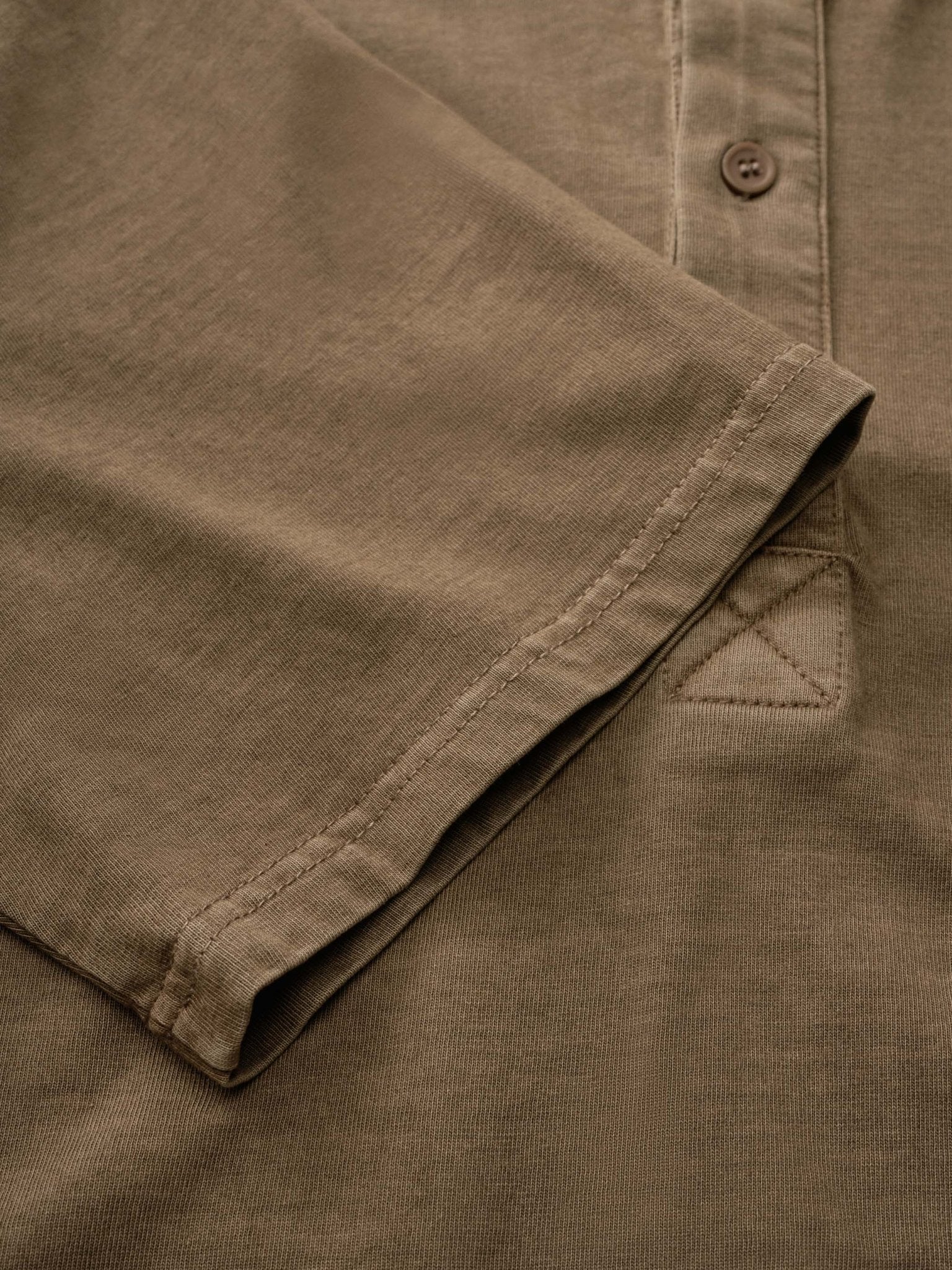 この商品は、人気のあるロングヘンリーTシャツをベースにアップデートされた半袖Tシャツです。調整可能な襟元と快適な質感で、夏のカジュアルな場所に最適です。