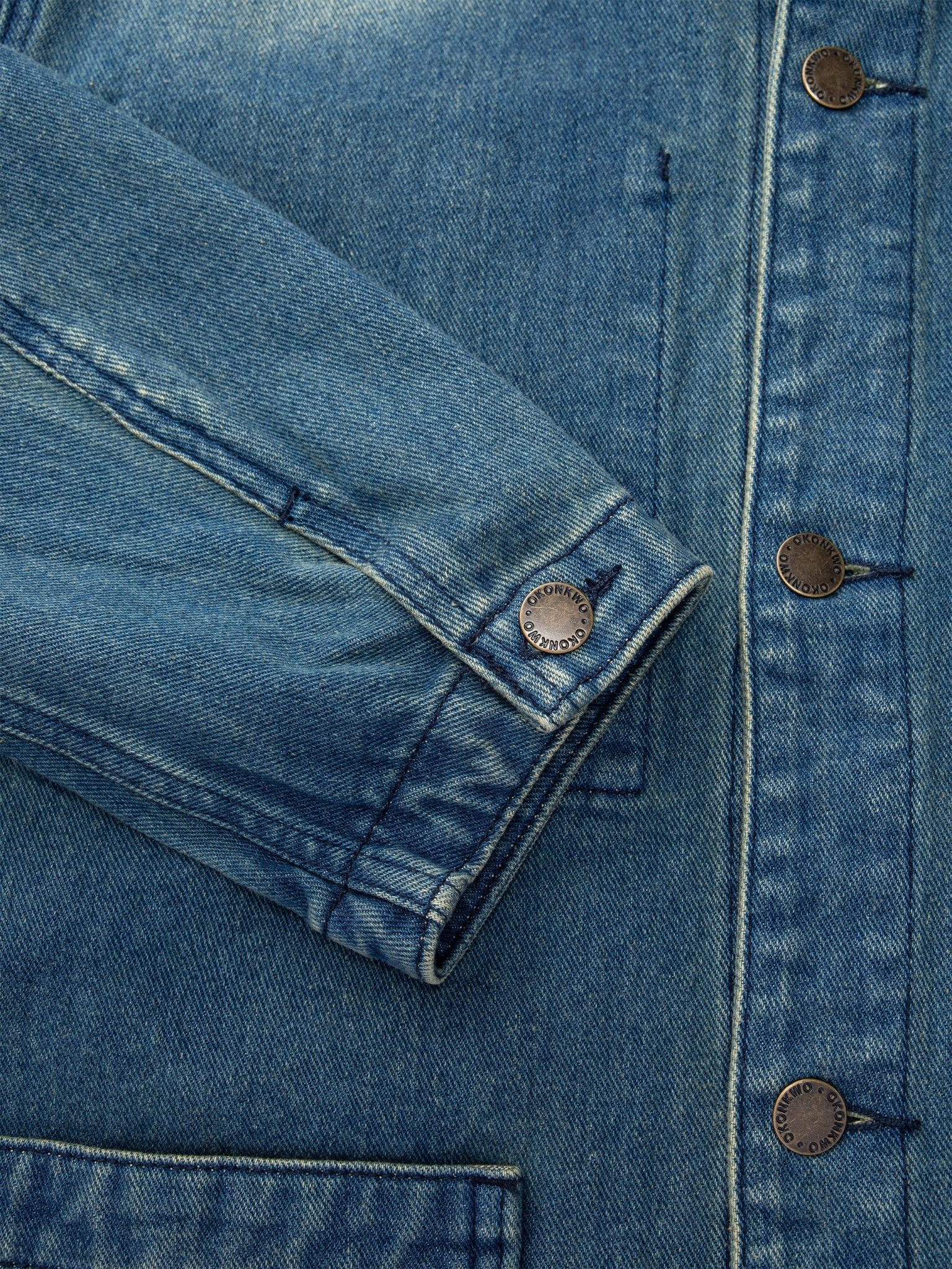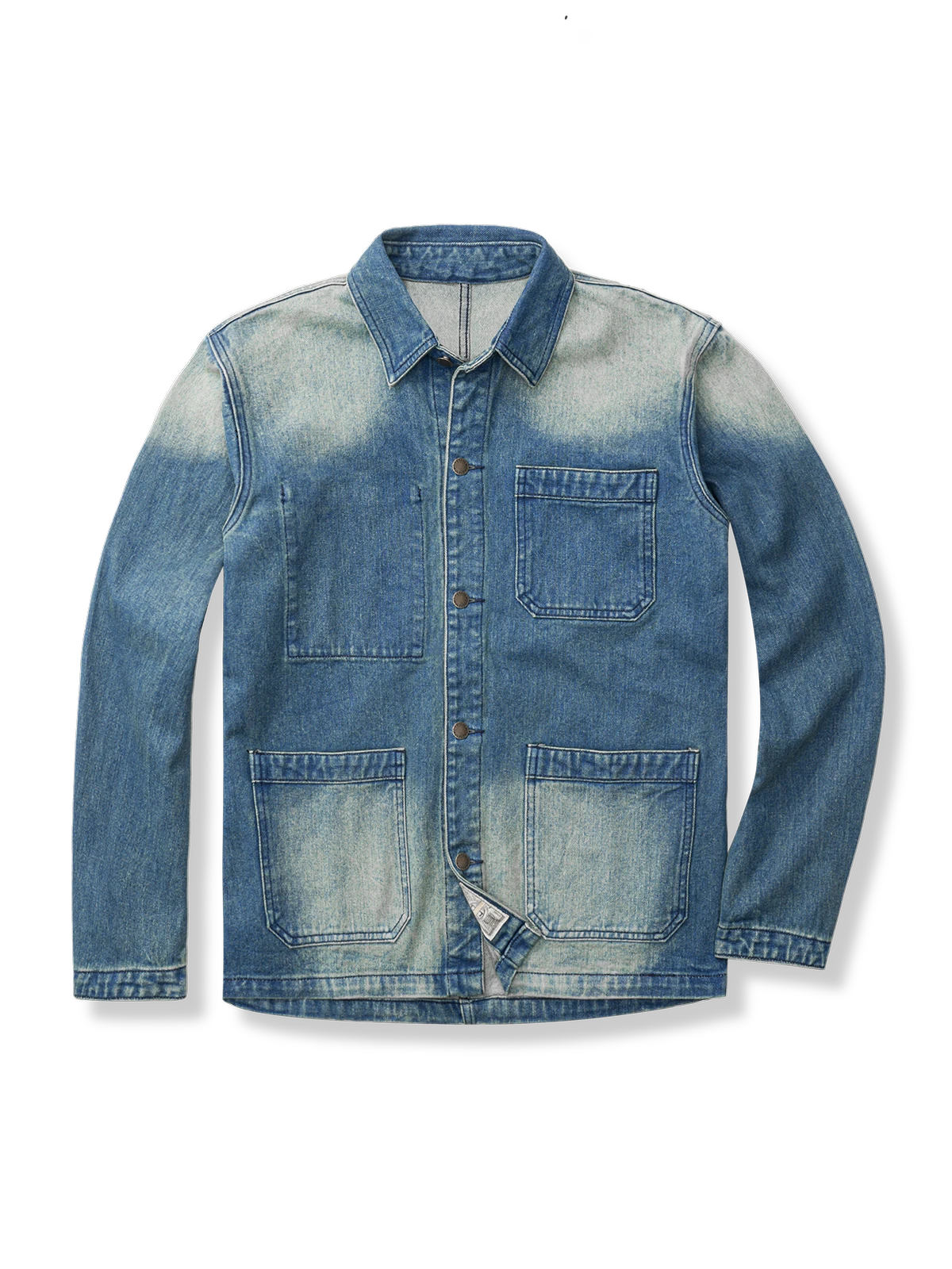 このジーンズジャケットは、耐久性の高いデニム素材を使用しています。ウォッシュ加工により、表面に独特の色合いとシワ感が出る一方、内側は柔らかく着心地が良く、季節を問わず着用できます。