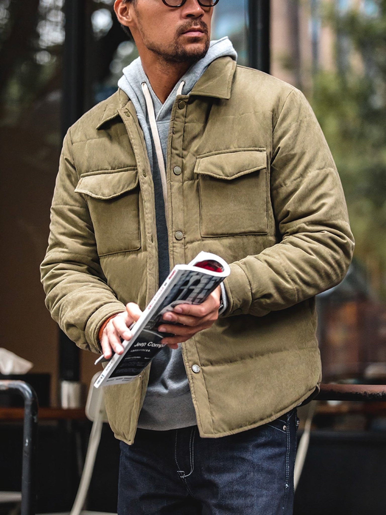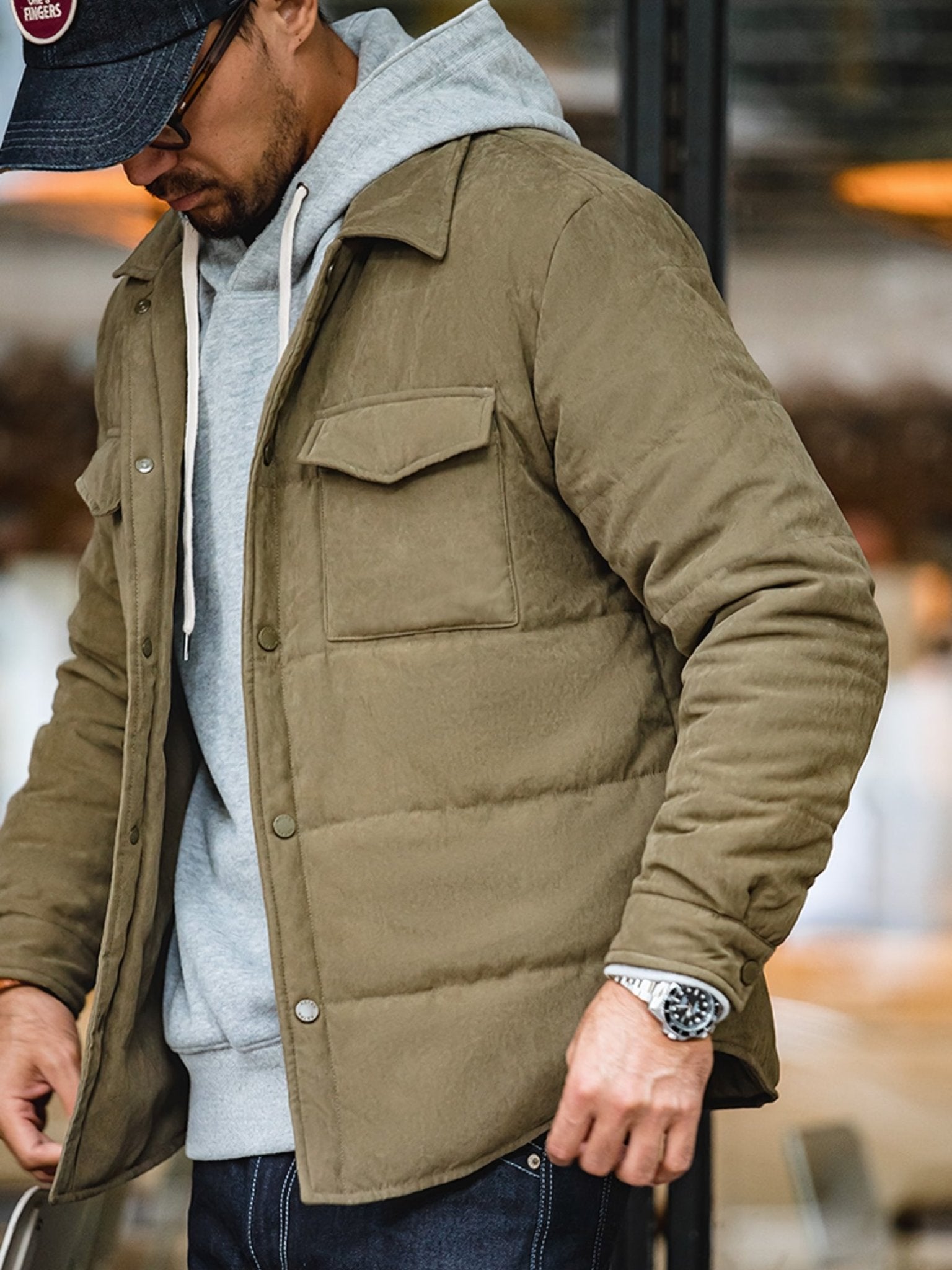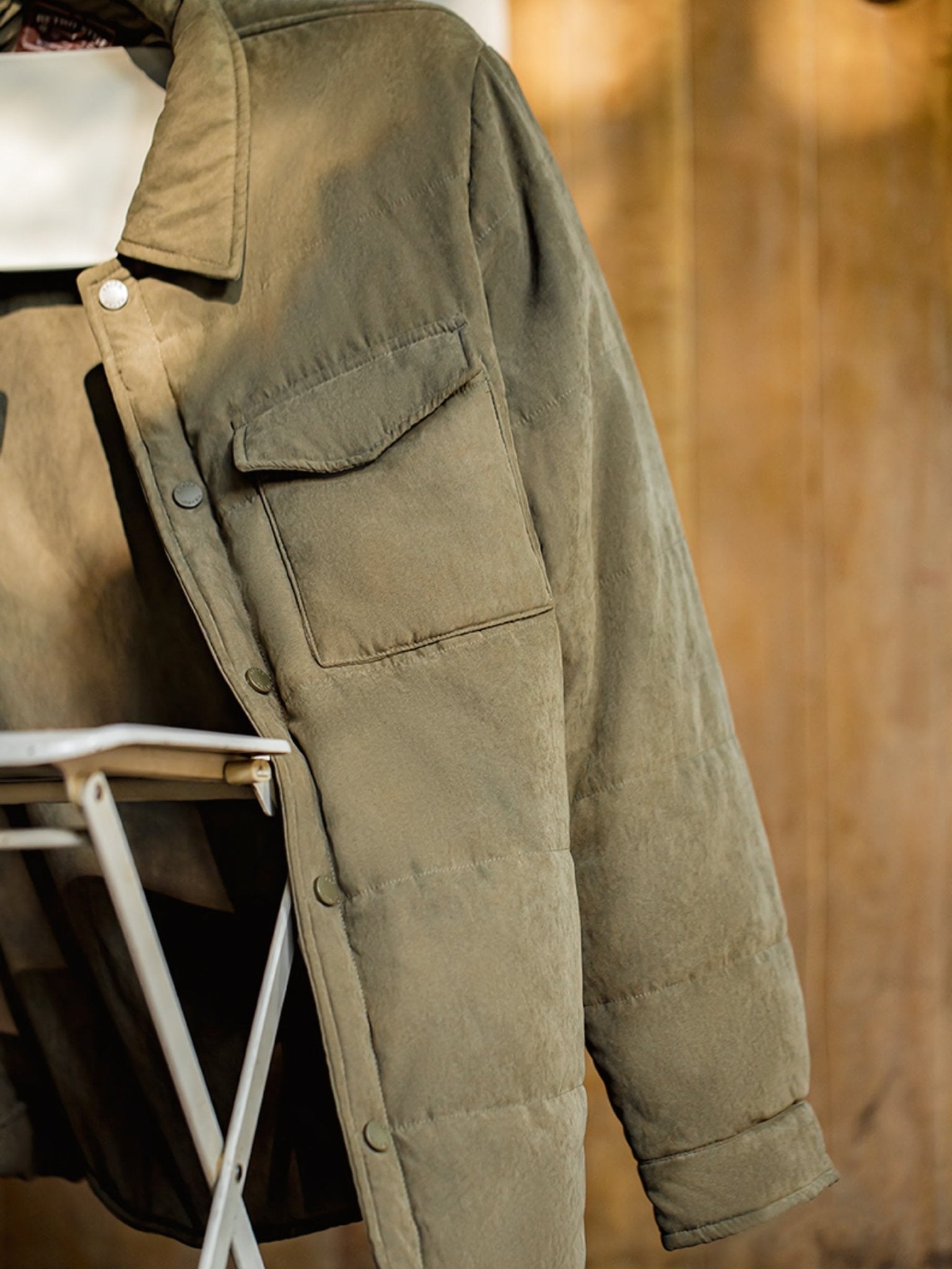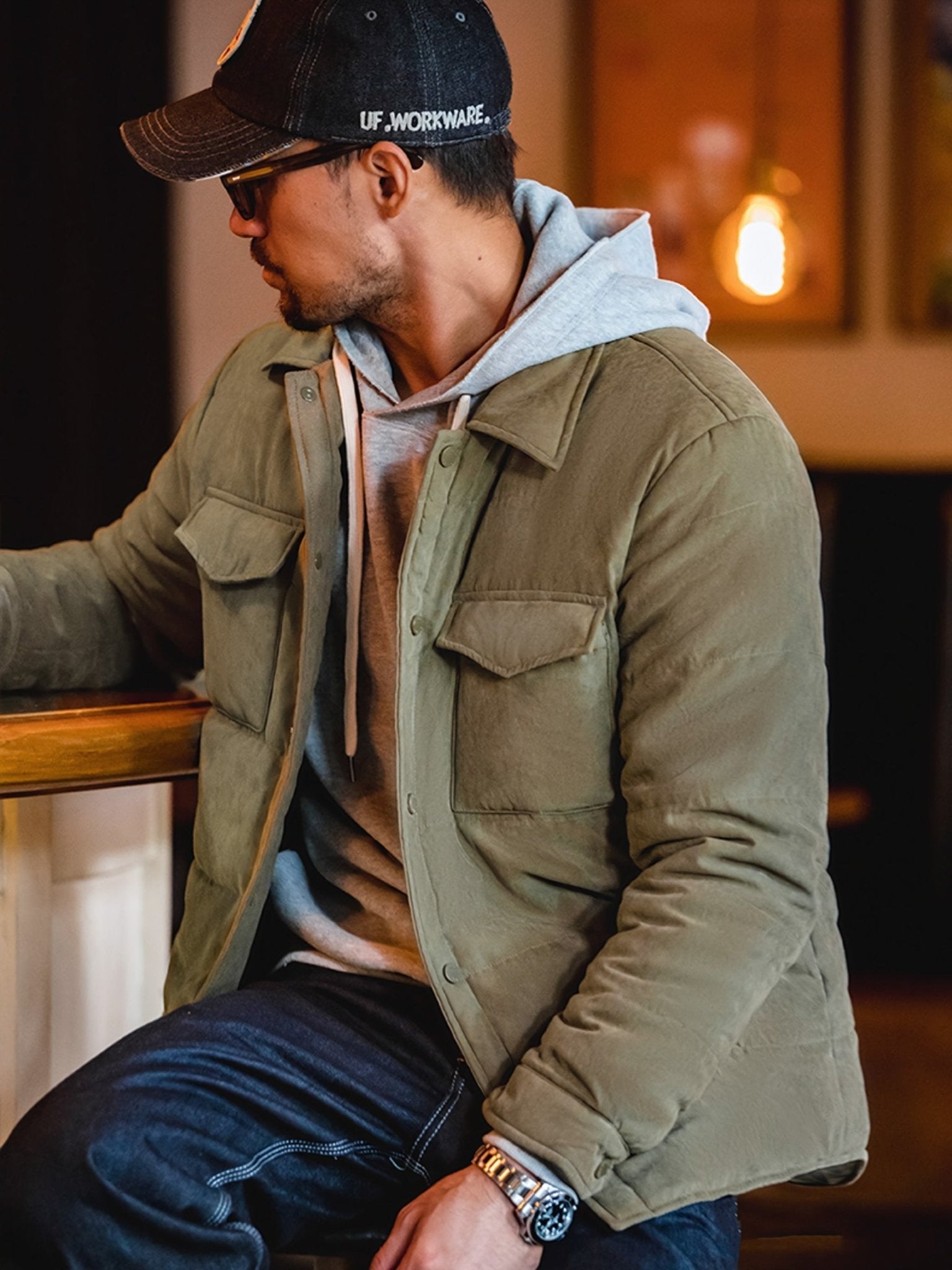 秋冬の季節、繊細で控えめなピーチスキンは、シンプルで直感的な選択肢となっています。このダウンジャケットを2つの異なる色が用意されています。ブルーは包容力が高く、見た目も高級感があり、アーミーグリーンは彩度が低く、目立たないですが、一般的な黒や灰色のスタイリングの中で標準を破ることができ、ユニークなスタイリッシュさを演出します。