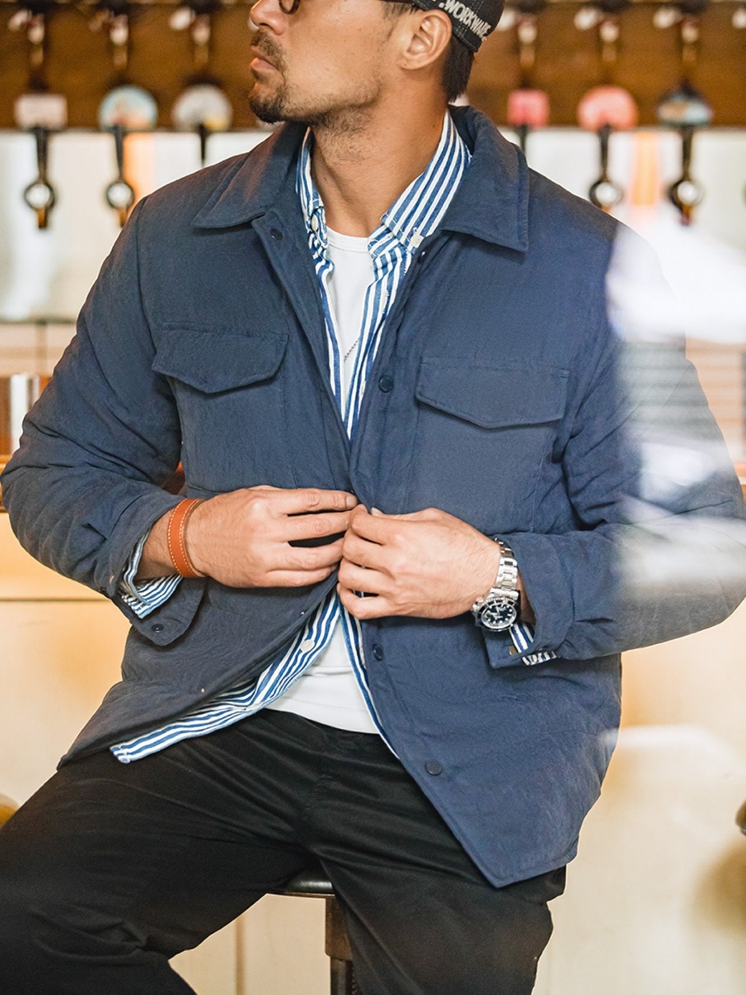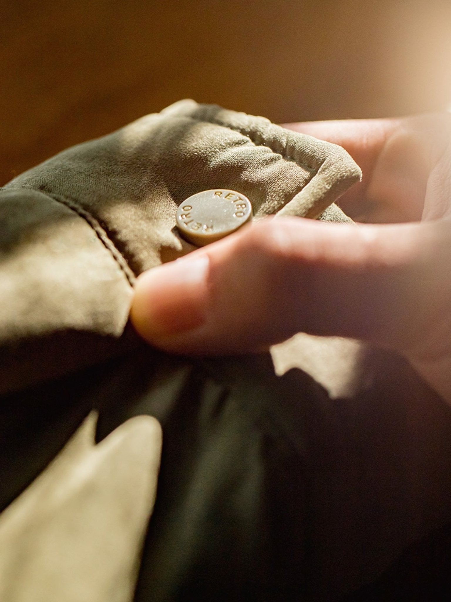 柔らかな素材の特性をバランス良くするために、デザインには一部Trucker Jacketの要素を取り入れ、硬いが短い合身のデザインを採用し、双胸のデザインはハードでありながらもファッショナブルでスタイリッシュな印象を与えます。