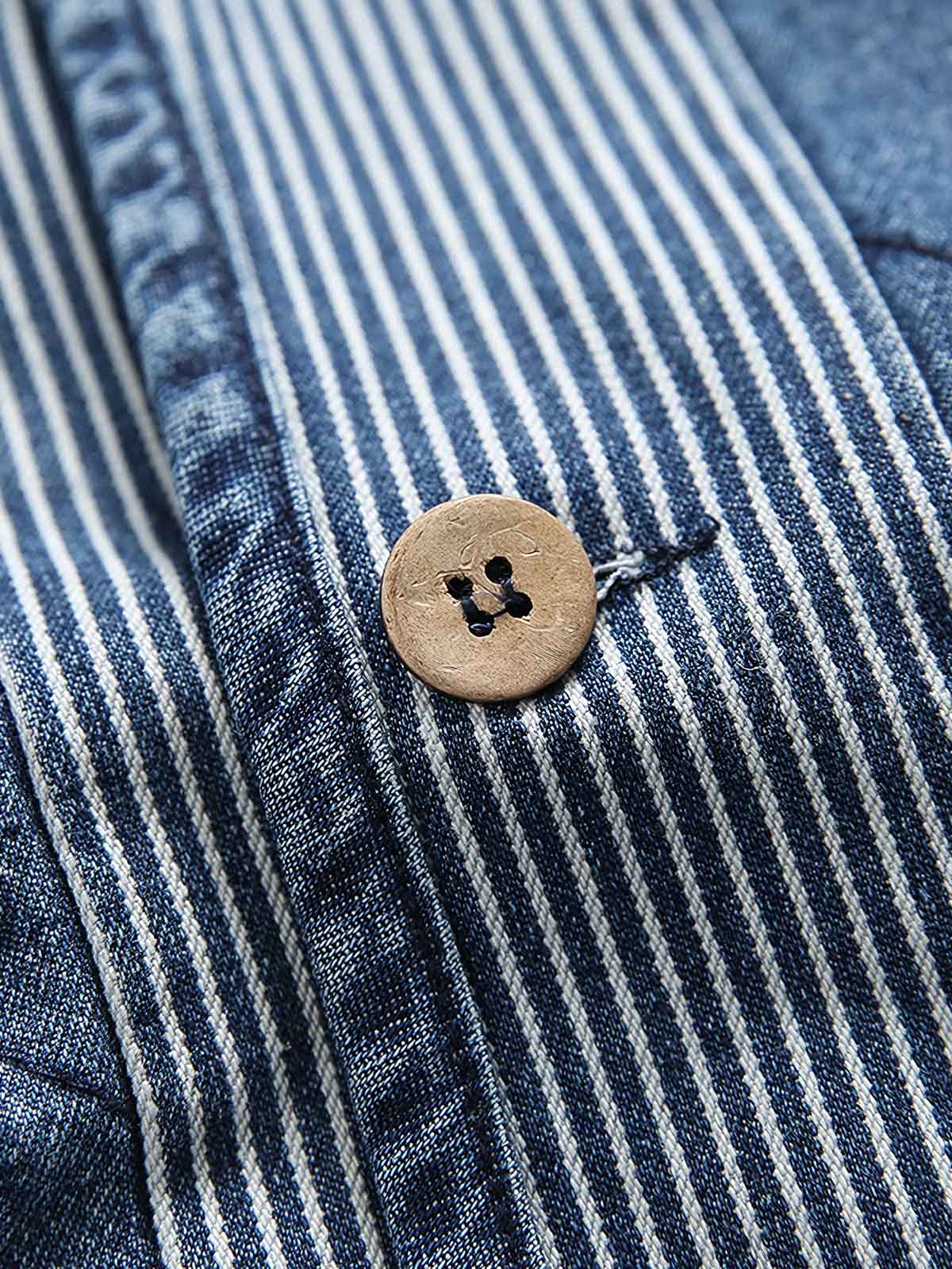 高品質のデニム素材を使用し、衣服には自然な色落ちとグラデーション処理を施しており、それぞれのジャケットにユニークな風合いを与えています。左右に配置された大きなポケットは実用的であり、デザインのアクセントにもなっています。