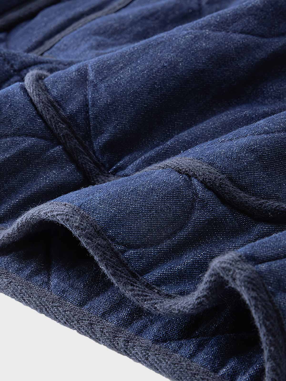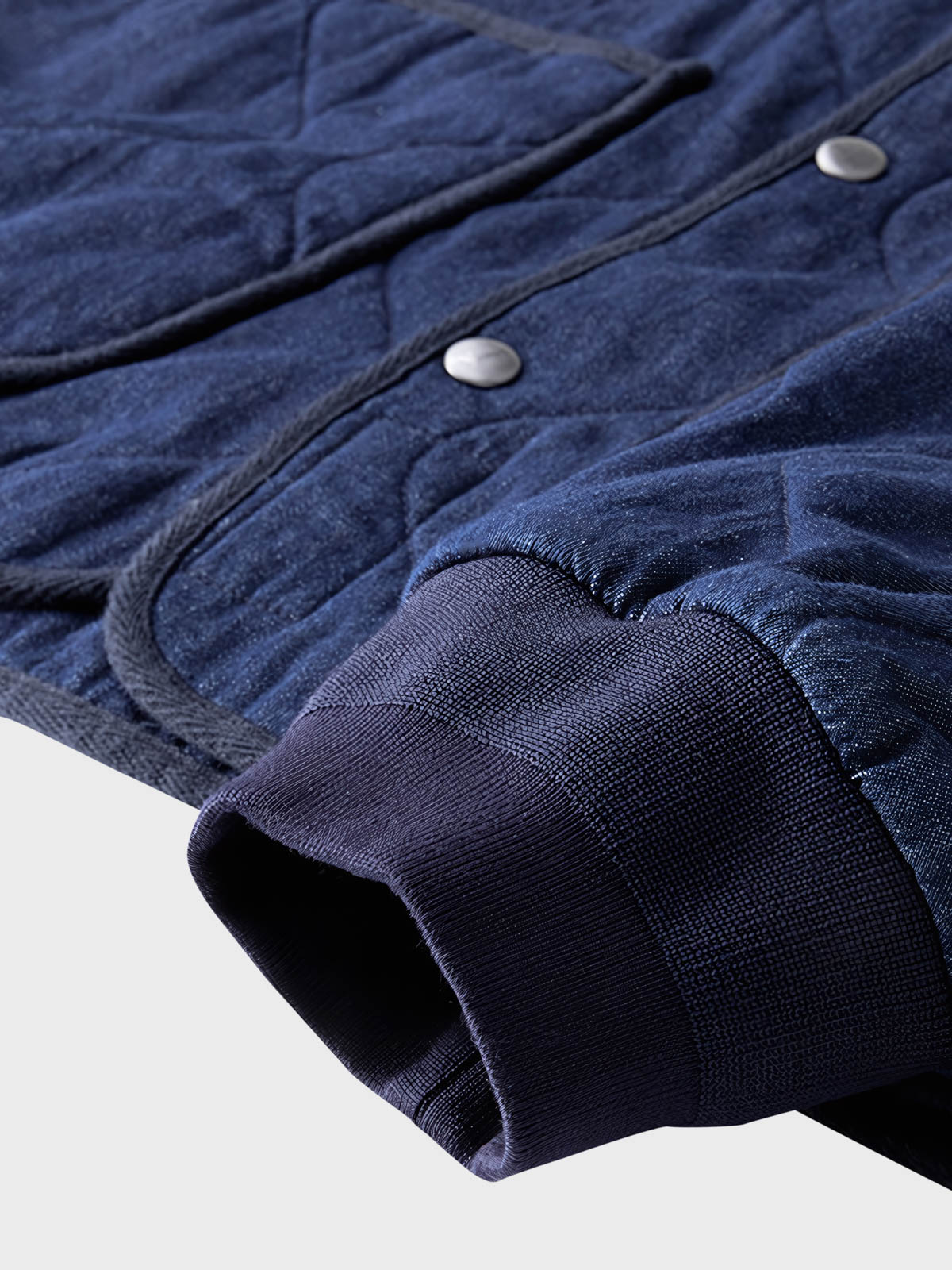 このジャケットはコットン素材のライニングが付いており、優れた保温性を提供します。キルティング加工は外観の美しさを高めるだけでなく、構造の安定性も強化しています。袖口のカスタム防風リブデザインは快適性と保温性を向上させます。
