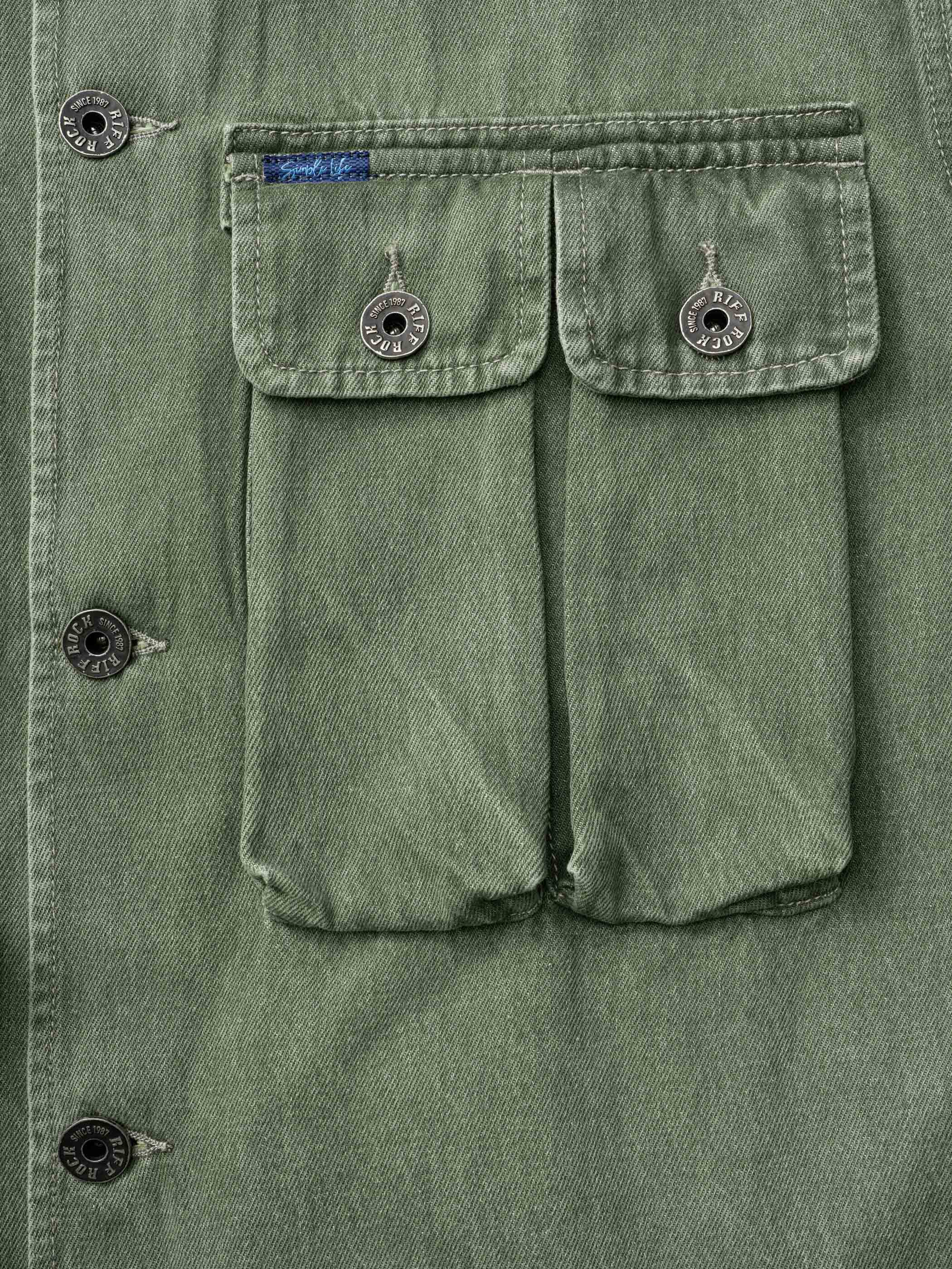 このジャケットは主に肌触りの良いコットン素材を使用しており、デイリーの着用に最適です。洗いざらしの風合いを持っており、着慣れた風合いに仕上げています。
