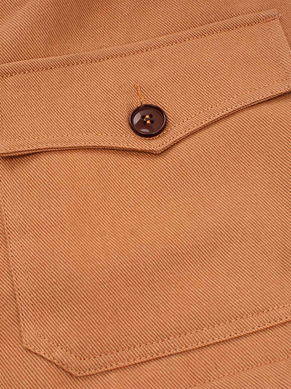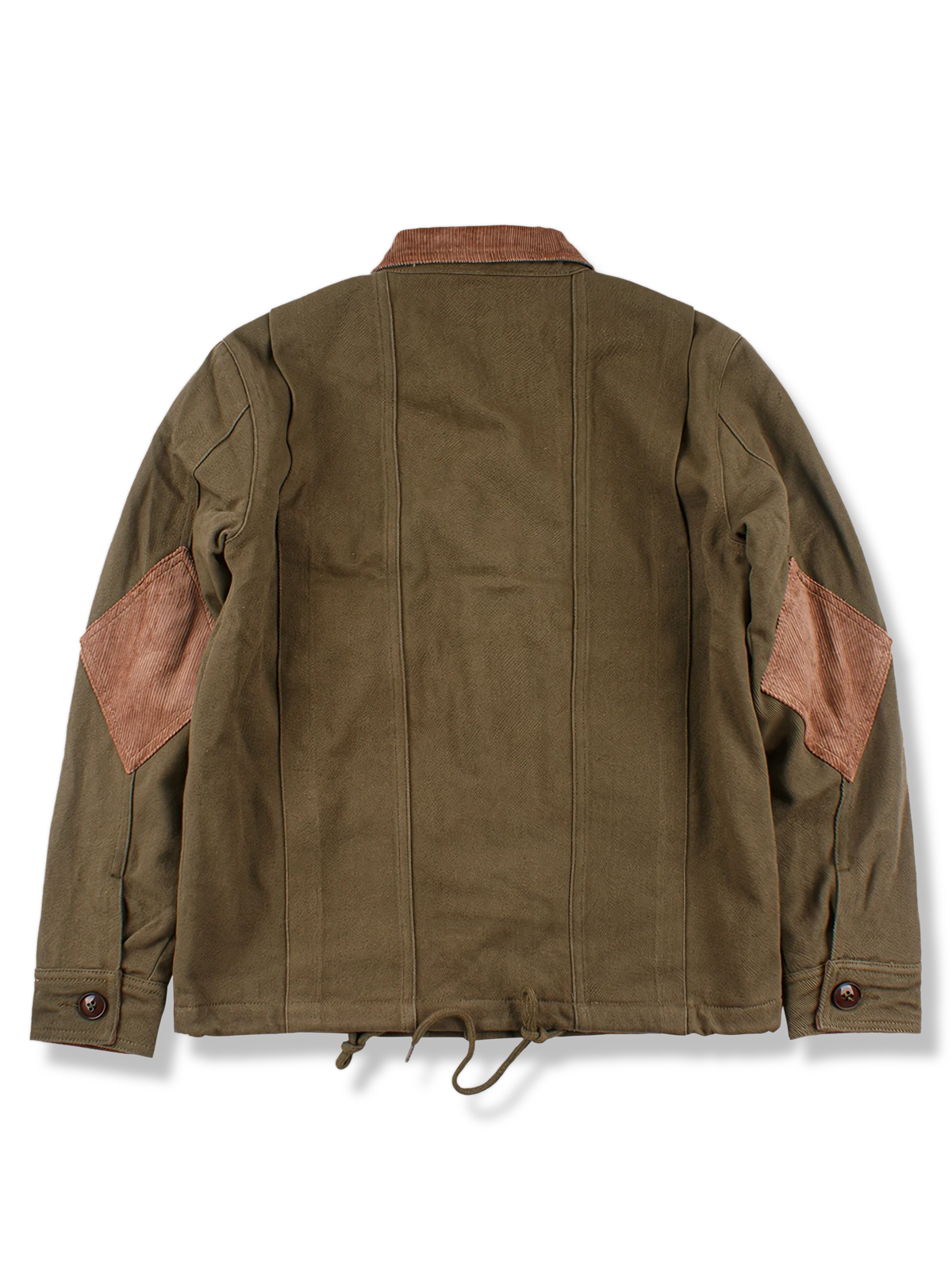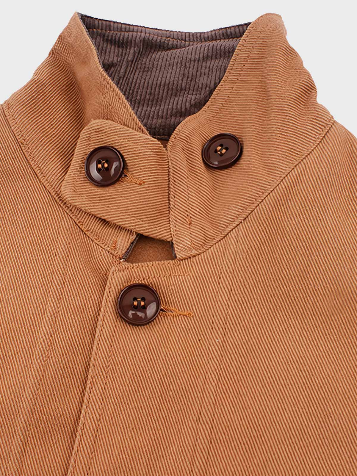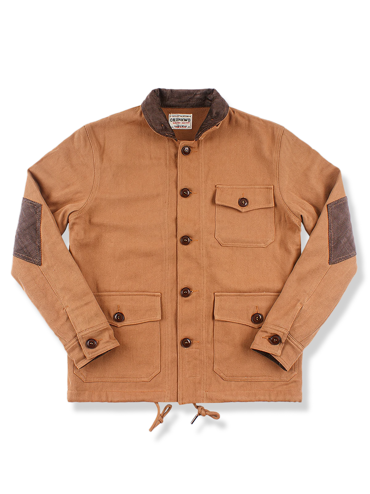 このジャケットは、頑丈で耐久性のあるツイルコットンのアウターレイヤーと、ヘビーウェイトのフリースライニングで優れた保温性を提供します。ジャケットには巧みにコーデュロイパッチが取り入れられており、これは摩耗しやすい部分の耐久性を高めるためだけでなく、ジャケットにレトロな風味を加えています。