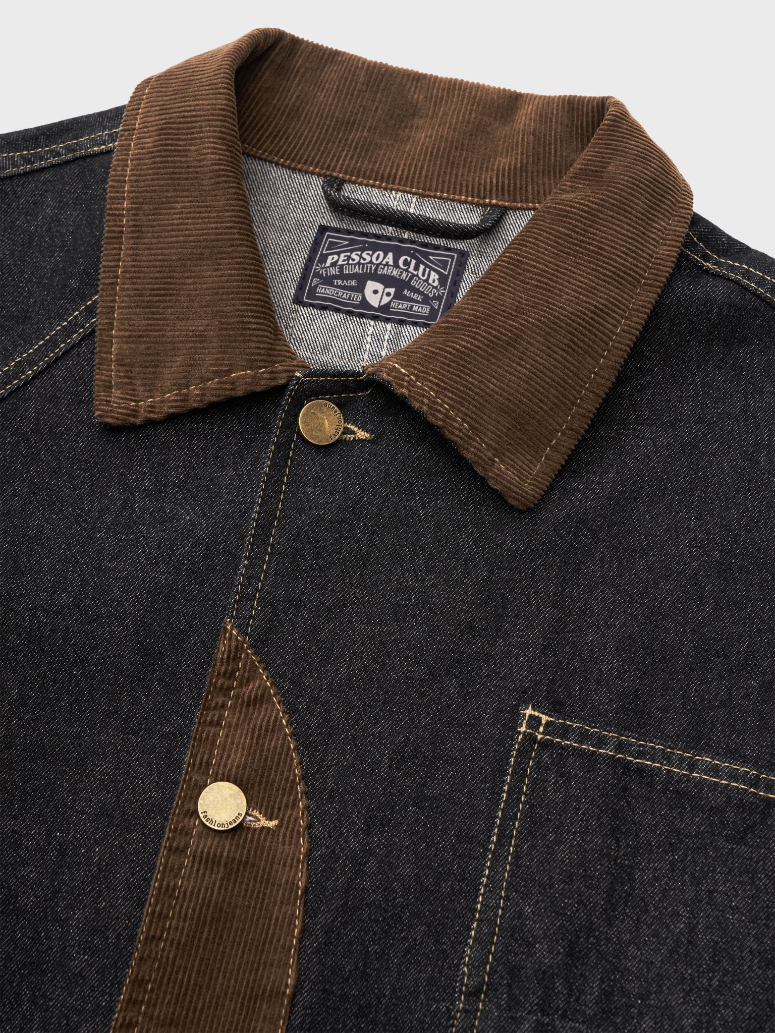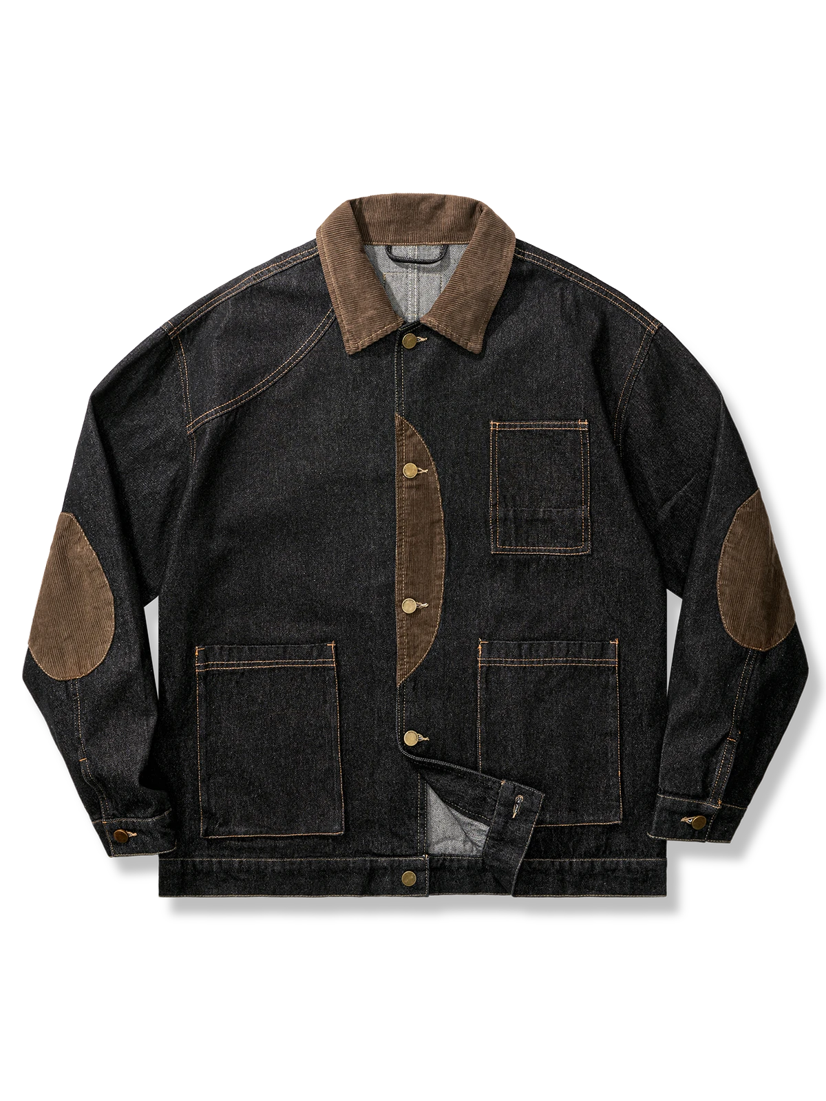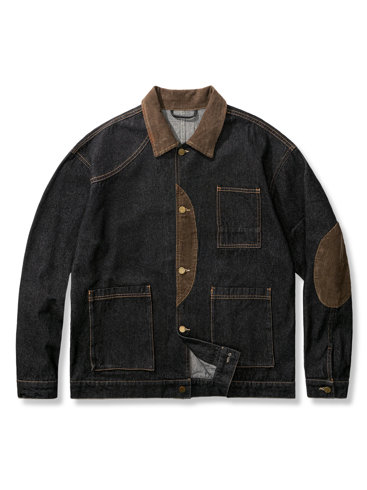 都会的な男性のライフスタイルに合わせたスタイリッシュなデザインです。コーデュロイ素材の襟とフロント部分と、コットンのデニム生地のボディを組み合わせており、アクセントディテールを施した遊びゴコロある一枚です。