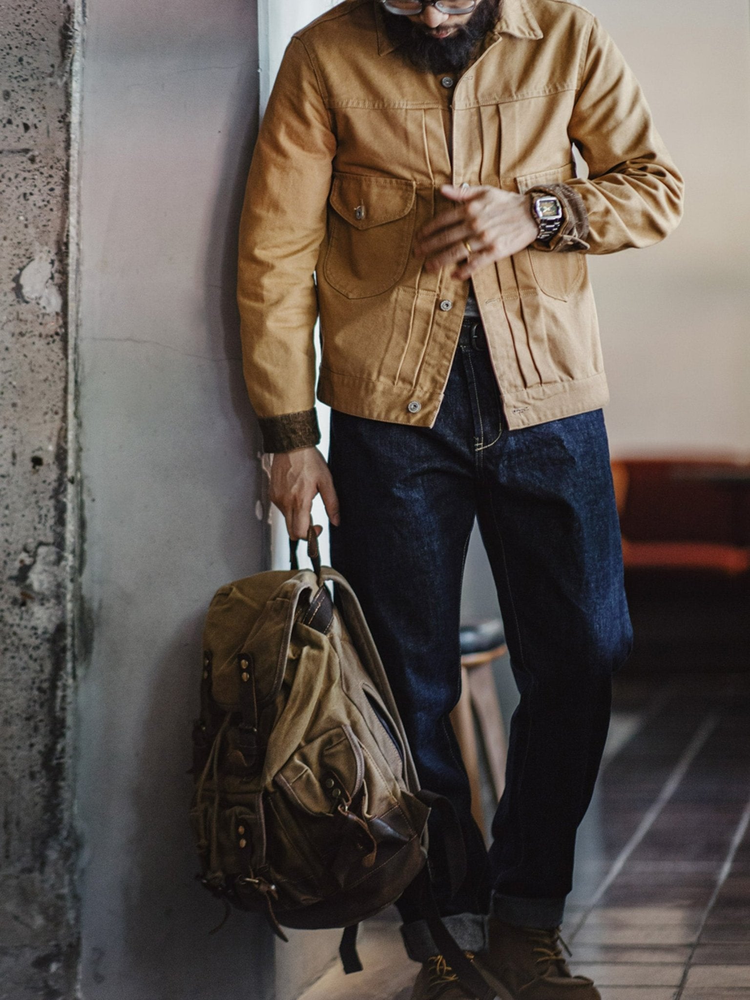 ランチャー ジャケットは常にデニムジャケットの中でクラシックと見なされていますが、このデザインは変更されたバージョンの中でもめったに見られない荒野のカラートーンを取り入れています。