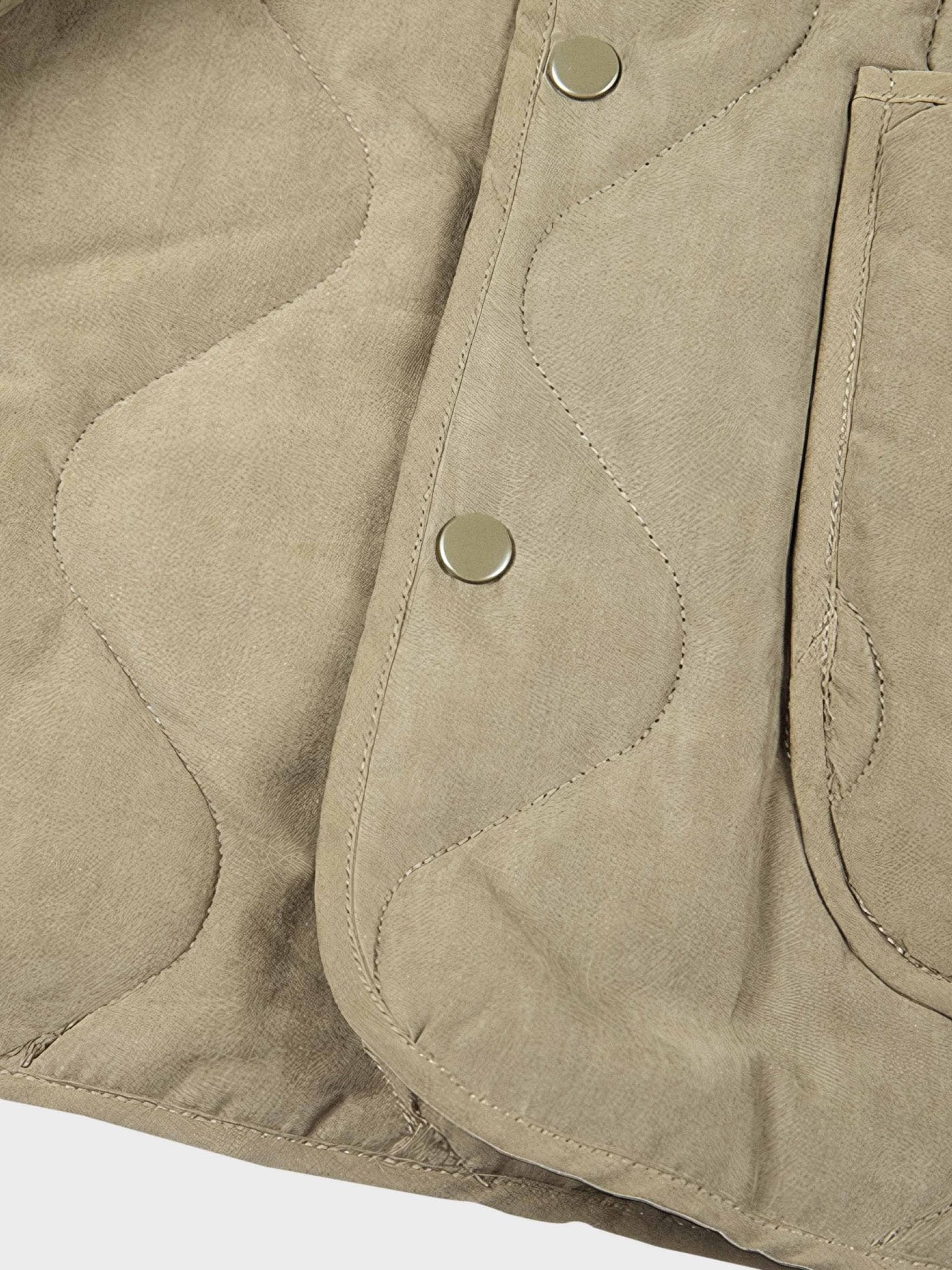 従来のキルティングライナーの魅力はそのままに、細部に大小のアップデートが施されています。素材やパッチポケットの配置など、単体としての着用がよりしやすいデザインになっています。