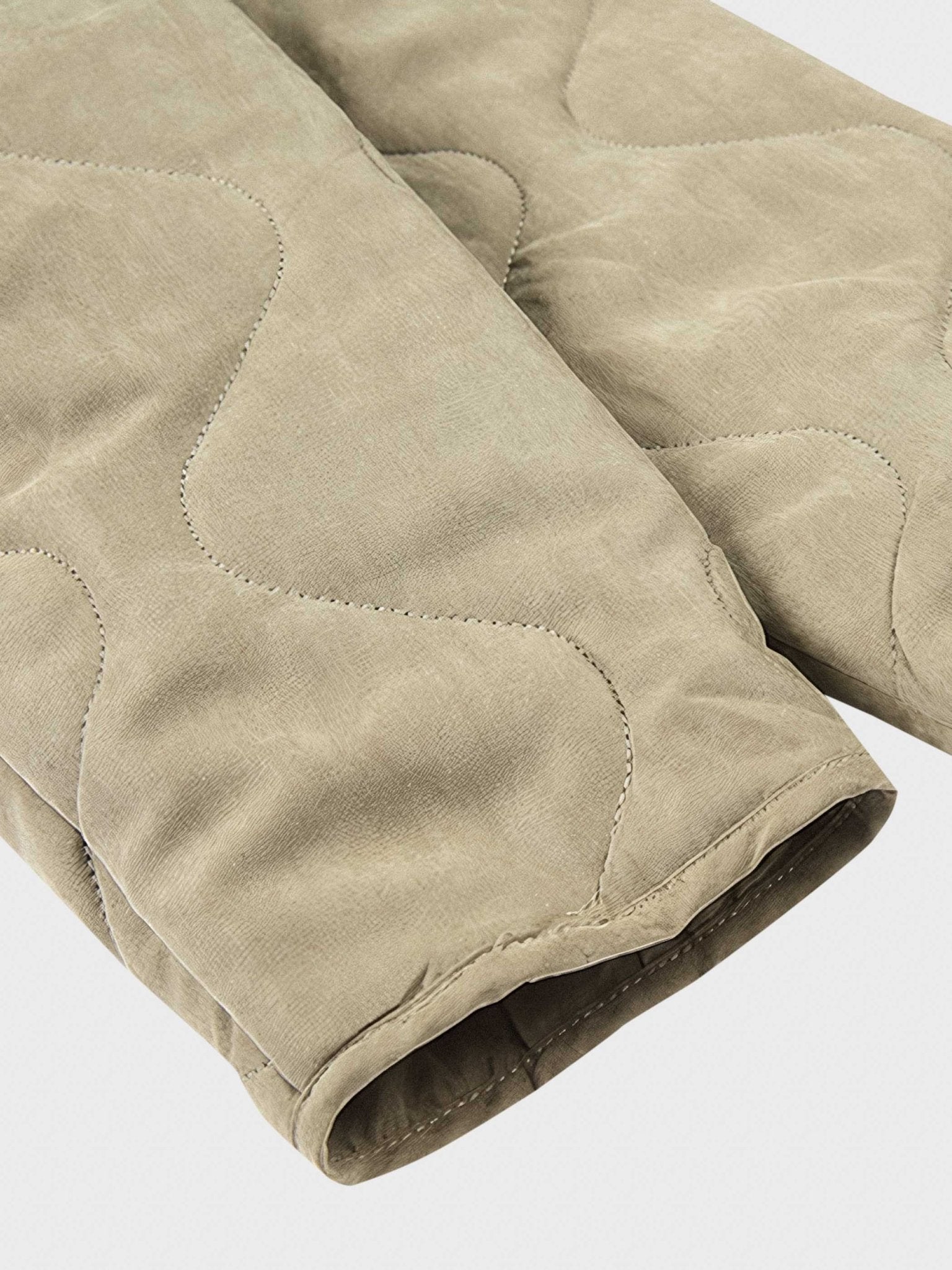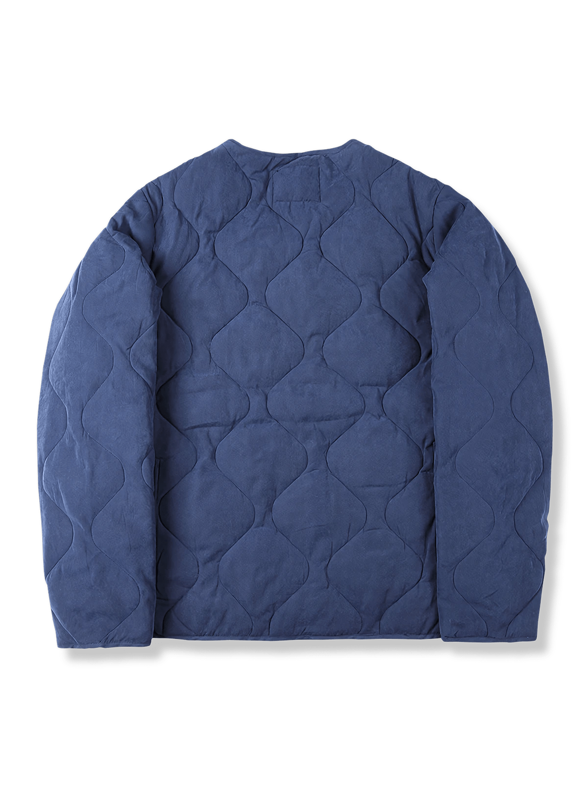 高い耐久性を誇るポリエステルと中綿のコットン素材を使用し、しっかりとした手触りと暖かさを提供します。インナーダウンのような着回しやすさがあり、1着あれば秋冬の様々なシーンで重宝するアイテムです。