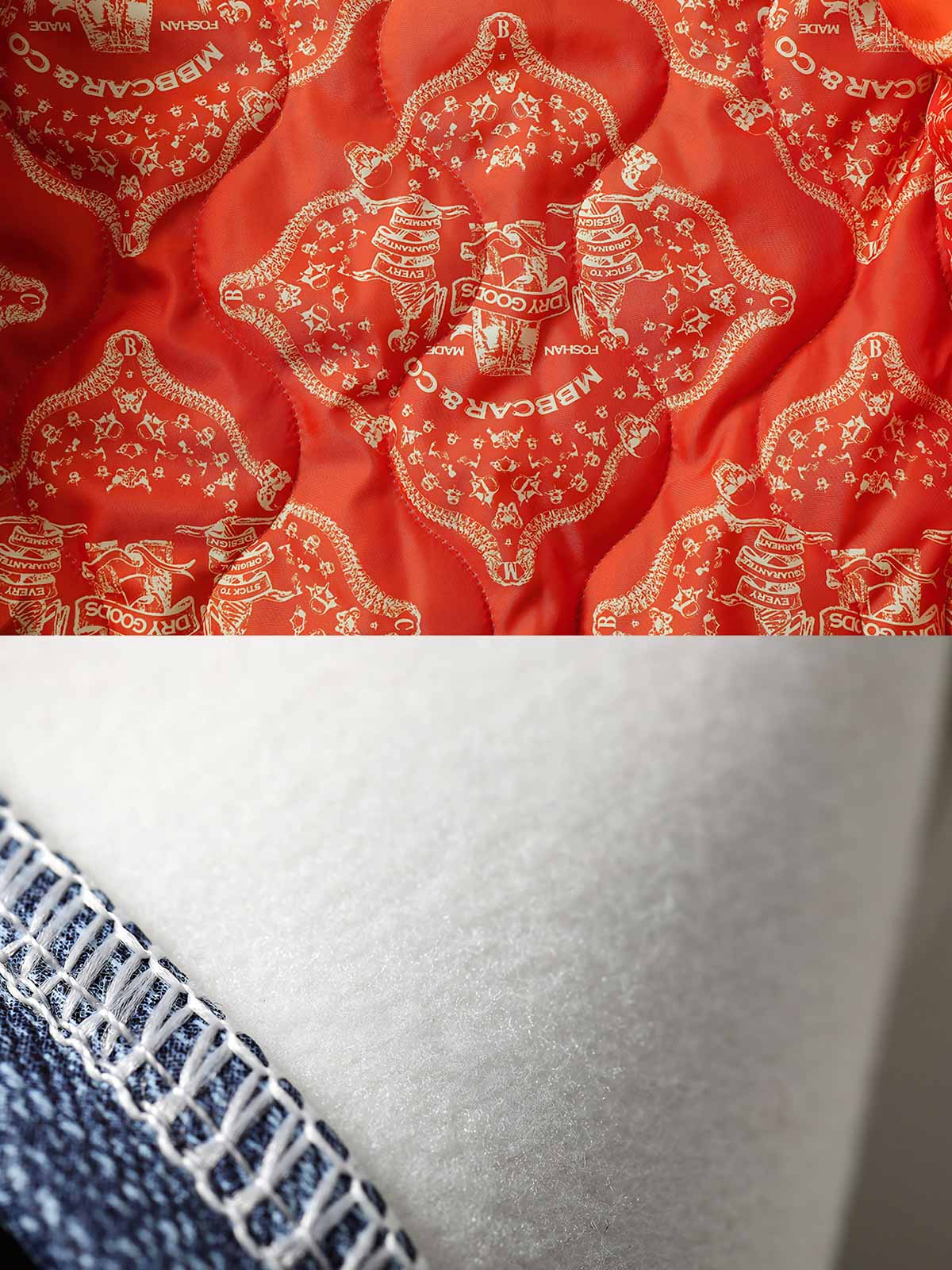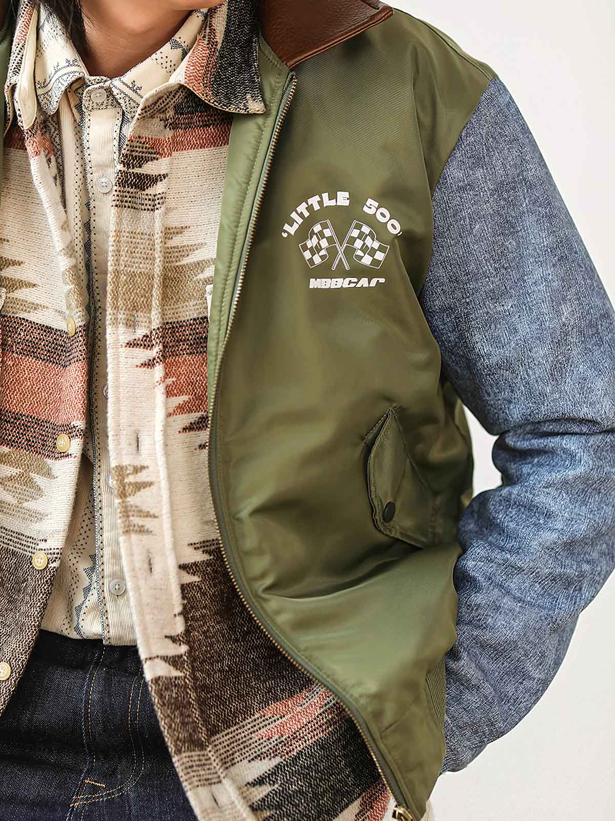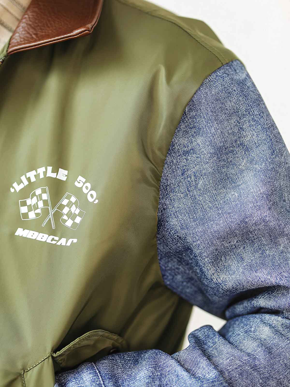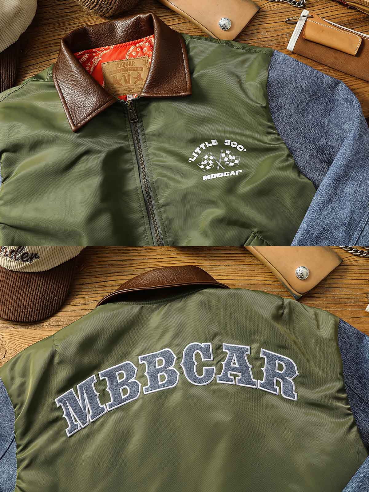 このジャケットは、MA-1フライトジャケットのクラシックなデザインとデニムジャケットの要素を融合させています。このジャケットはMA-1の基本デザインを維持し、重い密度の斜め織りナイロン生地など、滑らかでしっかりとした質感を実現しています。同時に、デニム風の人工皮革の袖は、レトロな雰囲気を演出し、デニムジャケットの袖のカットを反映しています。