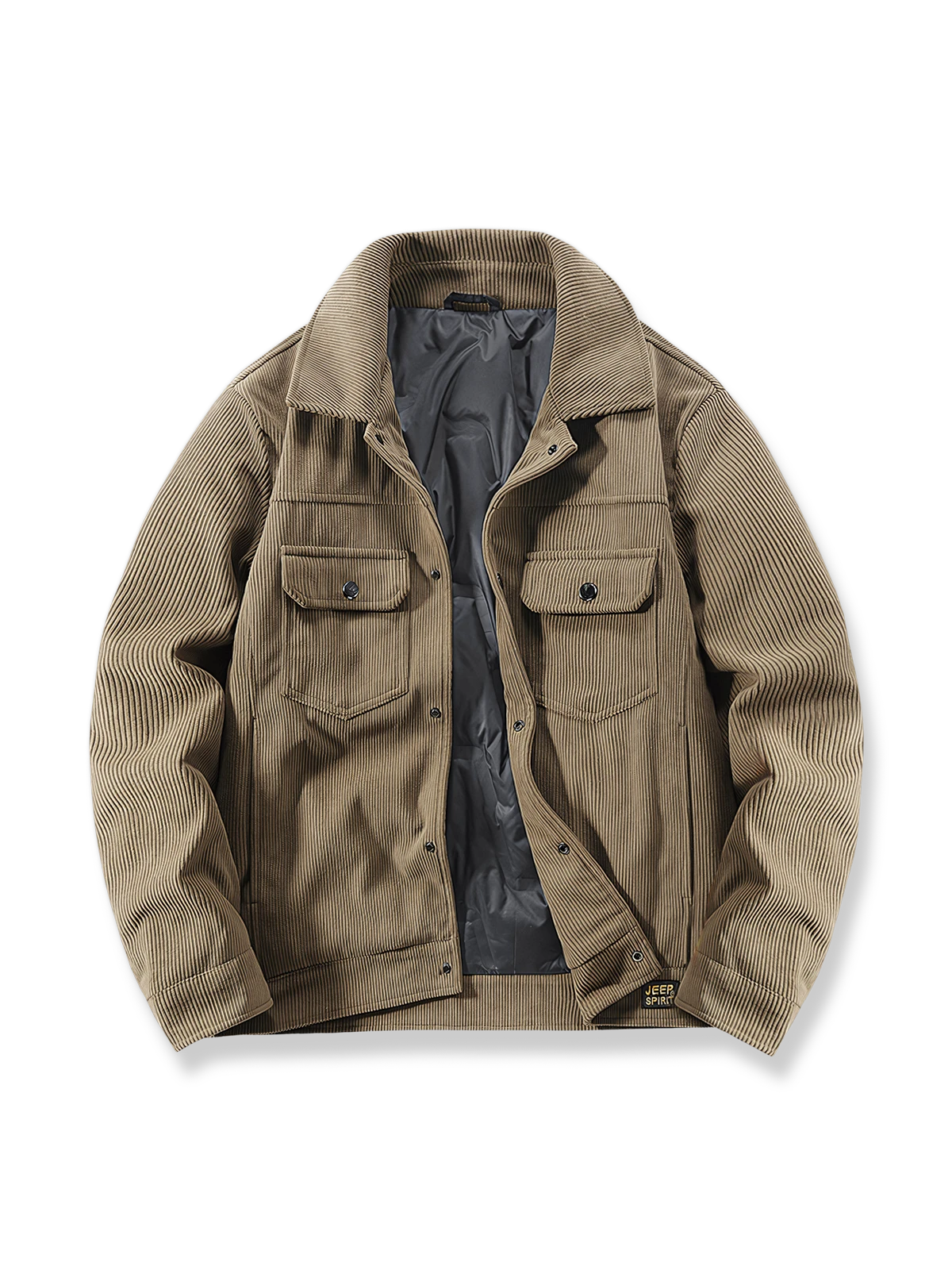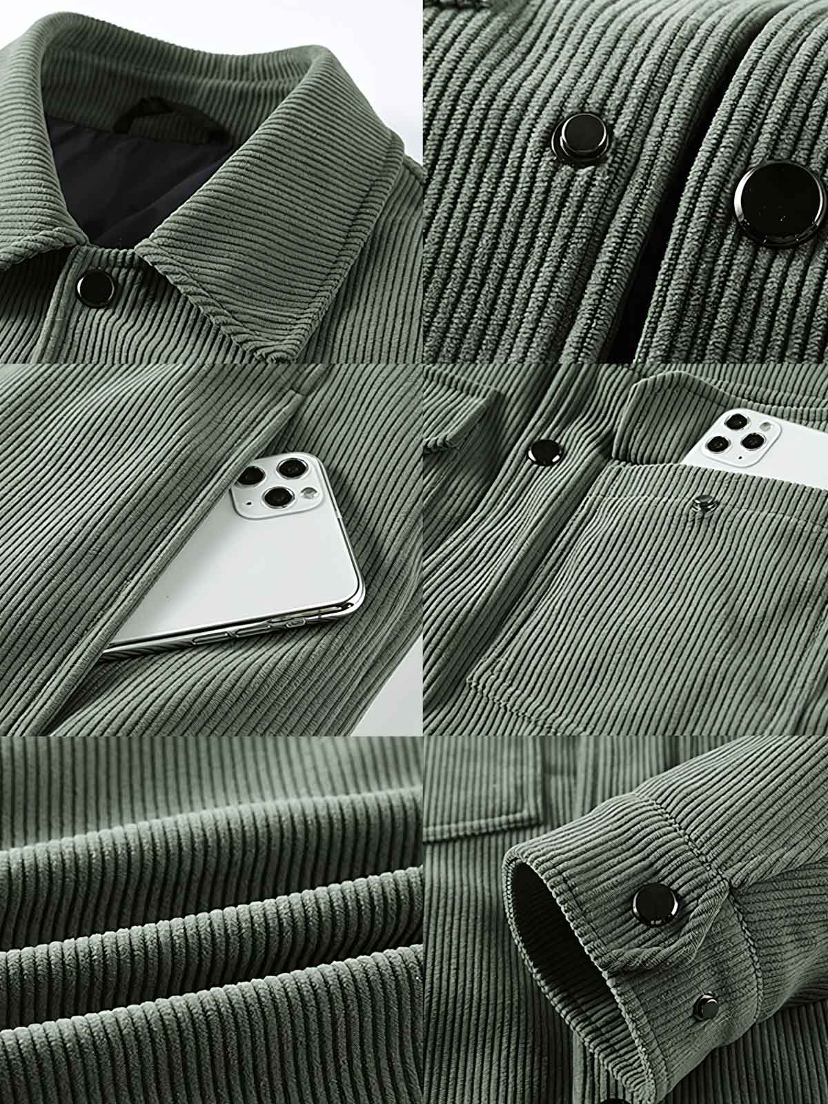 高品質のコーデュロイ素材を選択し、ダウンの保温機能と組み合わせています。耐摩耗性があり、お手入れが簡単で、長期間の着用でも質感と構造を維持します。