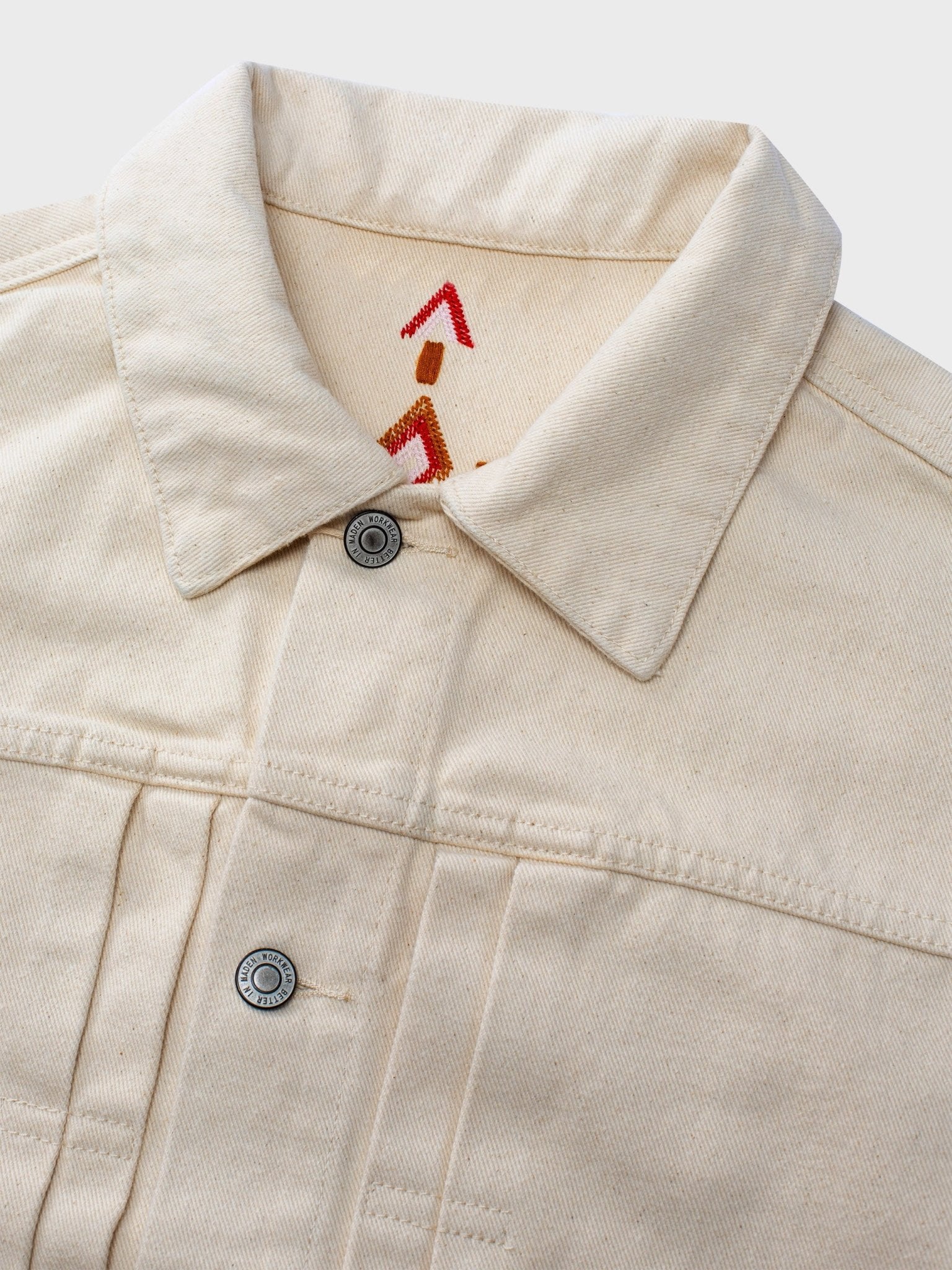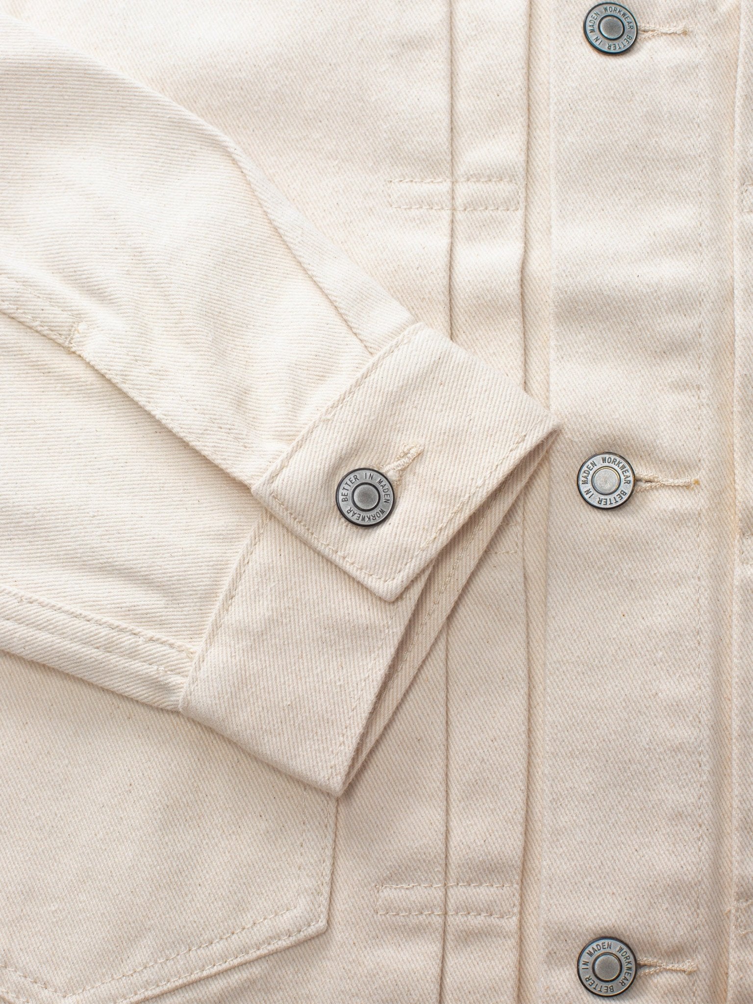特別な白デニム素材を使用しており、繊細な手触りと通気性を備え、ジャケットの全体的な品質感を高めています。同時に、白いデニム素材はジャケットに爽やかな感覚をもたらしています。