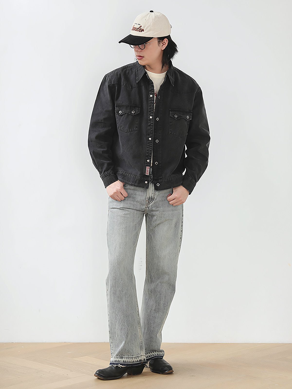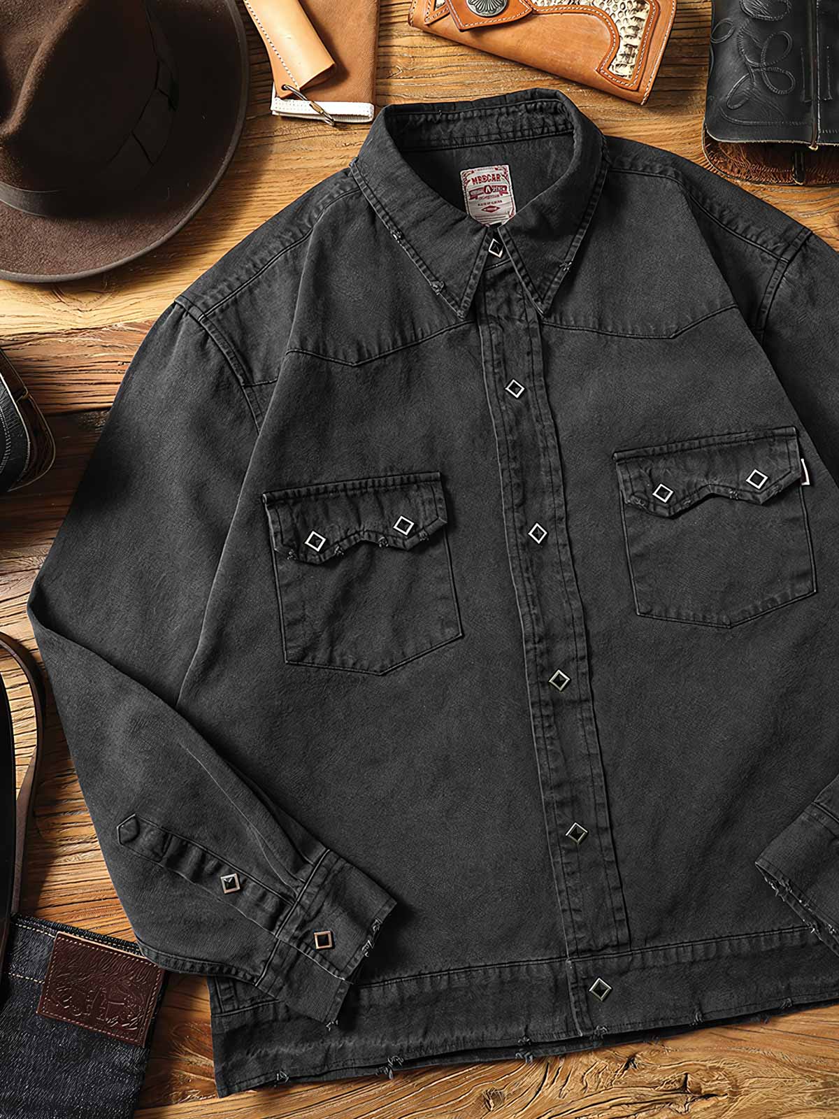 ウェスタンシャツ(Western Shirt)、または「カウボーイシャツ」とも呼ばれるこの服は、アメリカ西部文化の象徴的な衣服です。最初にカウボーイ、農場労働者、そして辺境地域の住民によって着用され、実用性で人気を博しました。これらのシャツジャケットは、厳しい辺境生活に耐えうる頑丈な生地で作られていました。