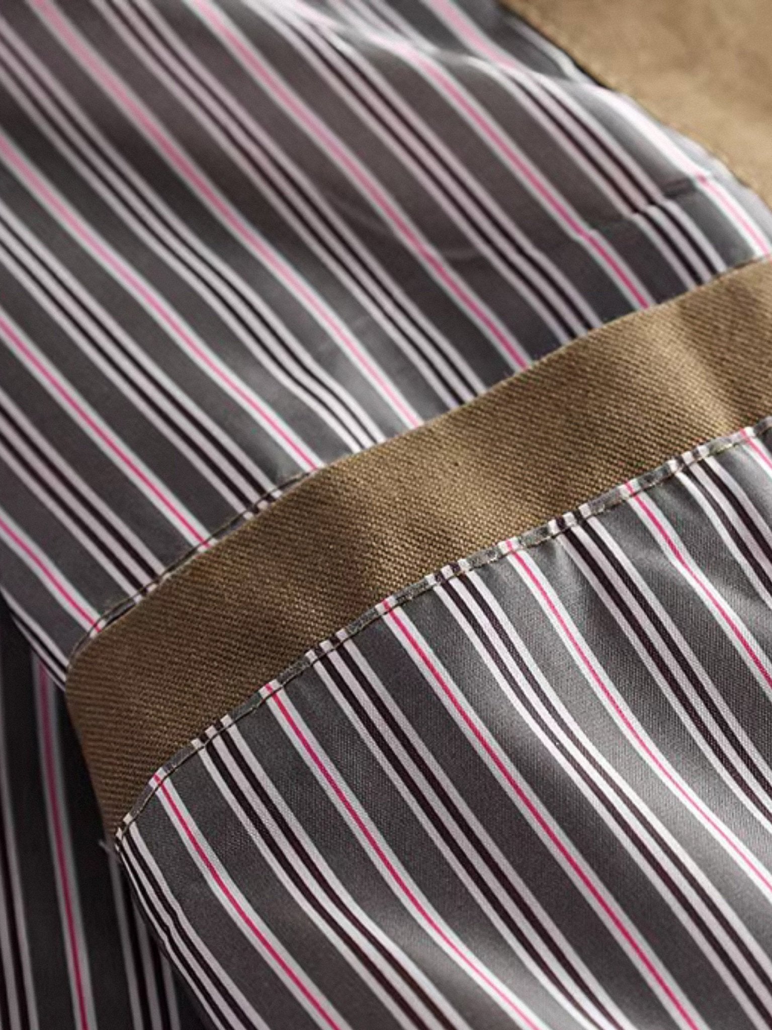 樹脂ボタンの選択は品質と洗練されたデザインを体現しています。縦のストライプの内側の生地パターンは、服の内部にデザイン感を追加するだけでなく、ユニークな視覚効果をもたらします。