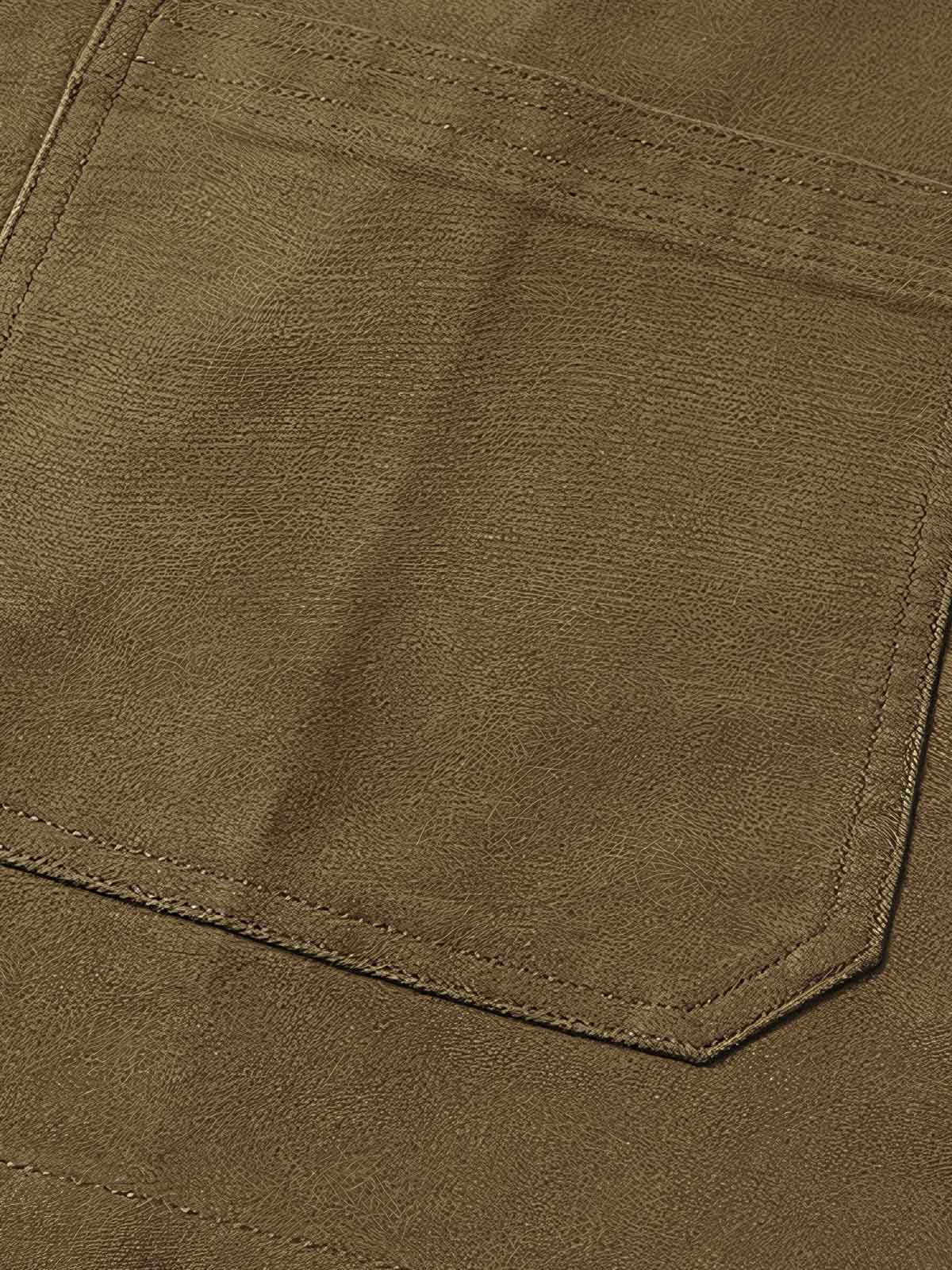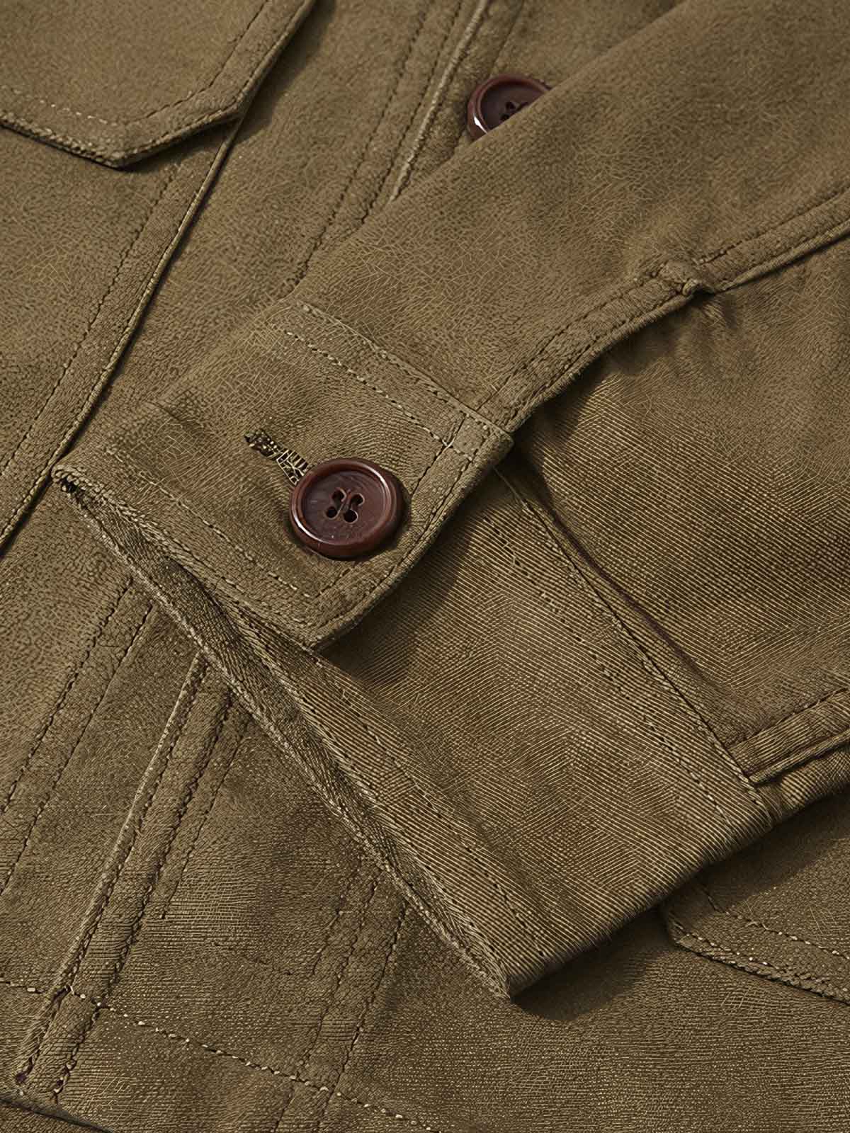 ジャケットのモールスキン素材は、比較的重いサテン織りで、全綿や混紡のタイプがあります。そのユニークなテクスチャはモグラの皮のような感触に近く、その名前の由来となっています。この素材は耐久性を提供するだけでなく、ジャケットにレトロでタフな美的感覚をもたらします。