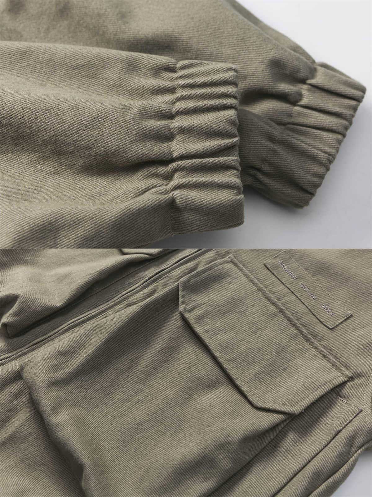 カジュアルスタイルで王道のハンティングジャケットをあえてツイル素材にすることできれいな印象もプラスできる他にはないブルゾン。襟元のコーデュロイがワンポイントでデザインになるのが特徴。また首元にはチンストラップとスナップボタンを取り付けているため閉めてスタンドカラーとしてもご利用いただけます。袖口、裾には風が入らないようにゴム配置、フロントに大容量ポケット、シガレットポケットなど色々細部までこだわっています。